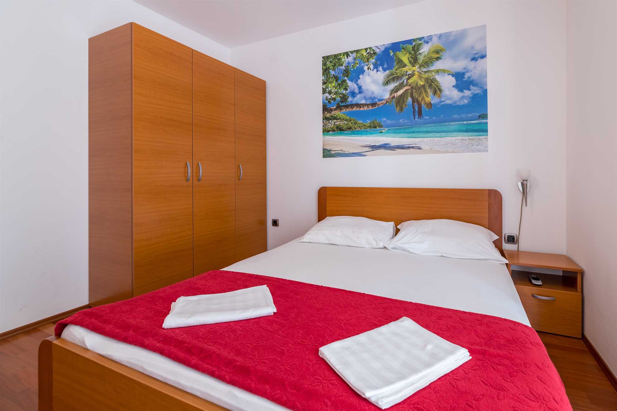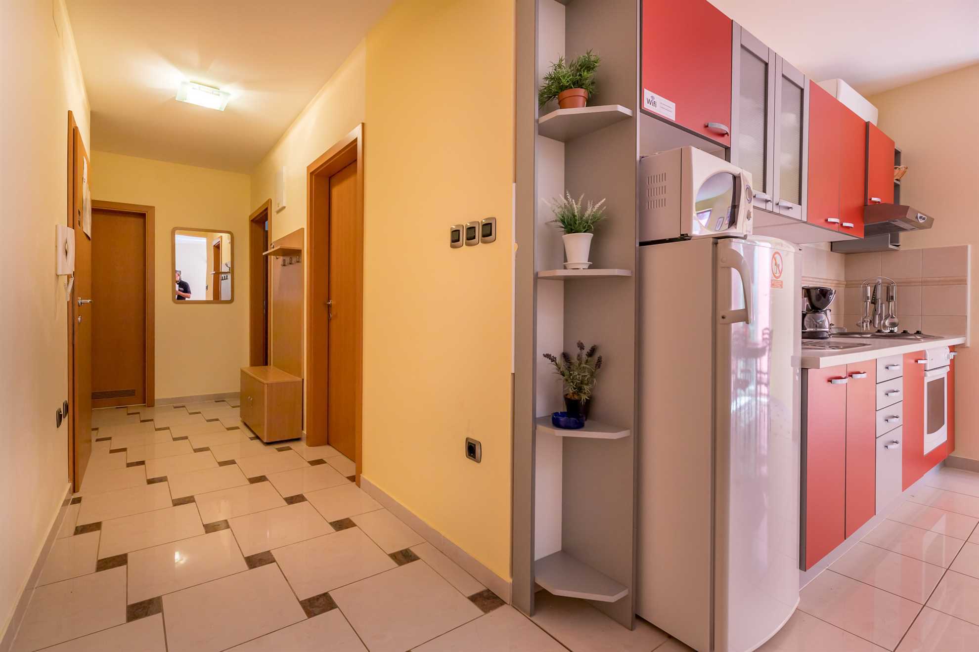The apartment features two comfortable bedrooms, a bright living room with a fully equipped kitchen, and a modern bathroom with a shower. A small private balcony provides a lovely spot to enjoy your morning coffee or unwind after a day at the beach. Guests also benefit from private parking, ensuring a carefree stay.