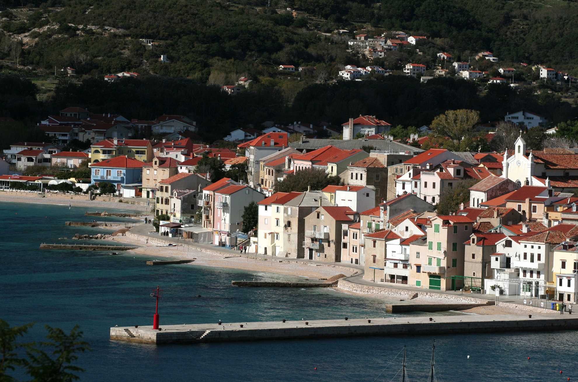 One of the region's most attractive locations is undoubtedly the beach of Vela Plaža, the most popular with those who come to swim in the area. One of Baška's symbols, and a key element in its landscape, it is 1,800 metres (1.1. mi) long and faces a crystal-clear sea. Since 1999 it has been the proud recipieng of the European Blue Flag award, which testifies to its high-quality standards.Many activities and entertainments await visitors there: restaurants and cafes are present all around it, and pedal boats, windsurf boards, beach umbrellas, and sun loungers are available for rent.Besides Vela Plaža, Baška is also home to more than thirty beaches; the most famous of these are the ones near the bays of Vela Luka and Mala Luka, the FKK beach near the Bunculuka camp, and the beaches of Konjska, Vrženica, Jablanovo, Storišće, and Dubna.