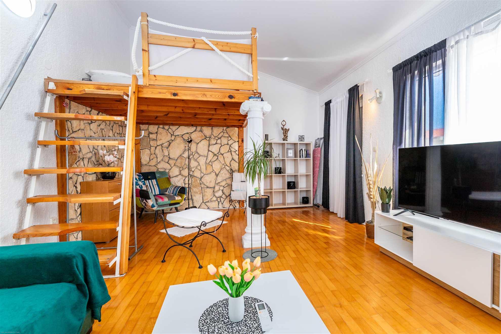 Martina A2 is a well-appointed one-bedroom retreat - a harmonious fusion of local style and modern comfort. The living room is designed as a space for relaxation and enjoyment, with a warm, inviting ambiance for socializing, reading or simply enjoying the peace and quiet after an adventurous day. The triple bedroom offers a peaceful haven to rest and recharge your batteries, ensuring a blissful night's sleep. In case of more than 3 people, there is another lovely bed in the living room on the raised gallery.
