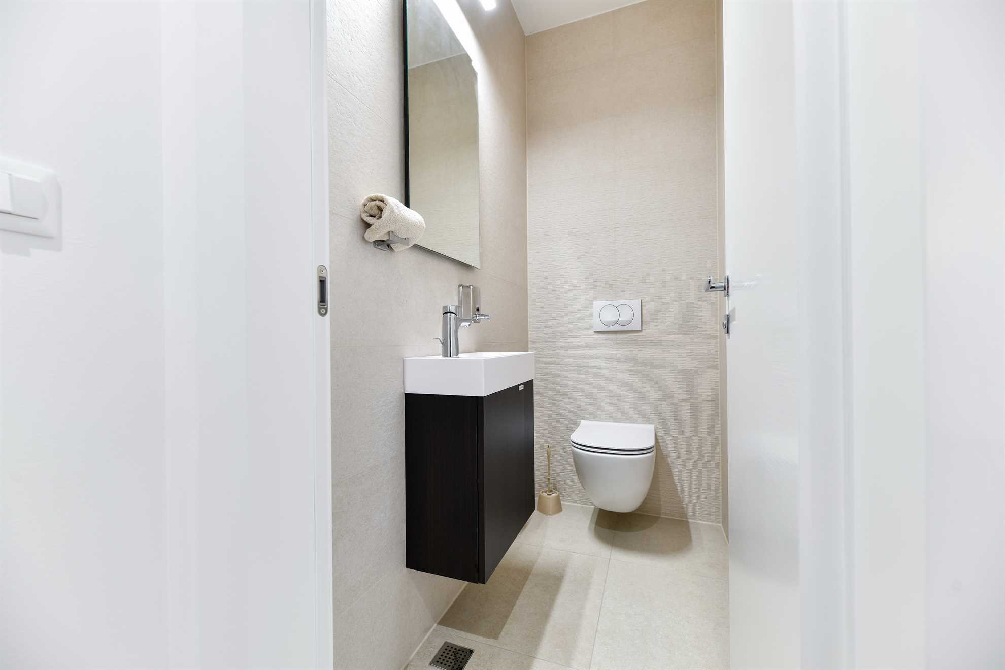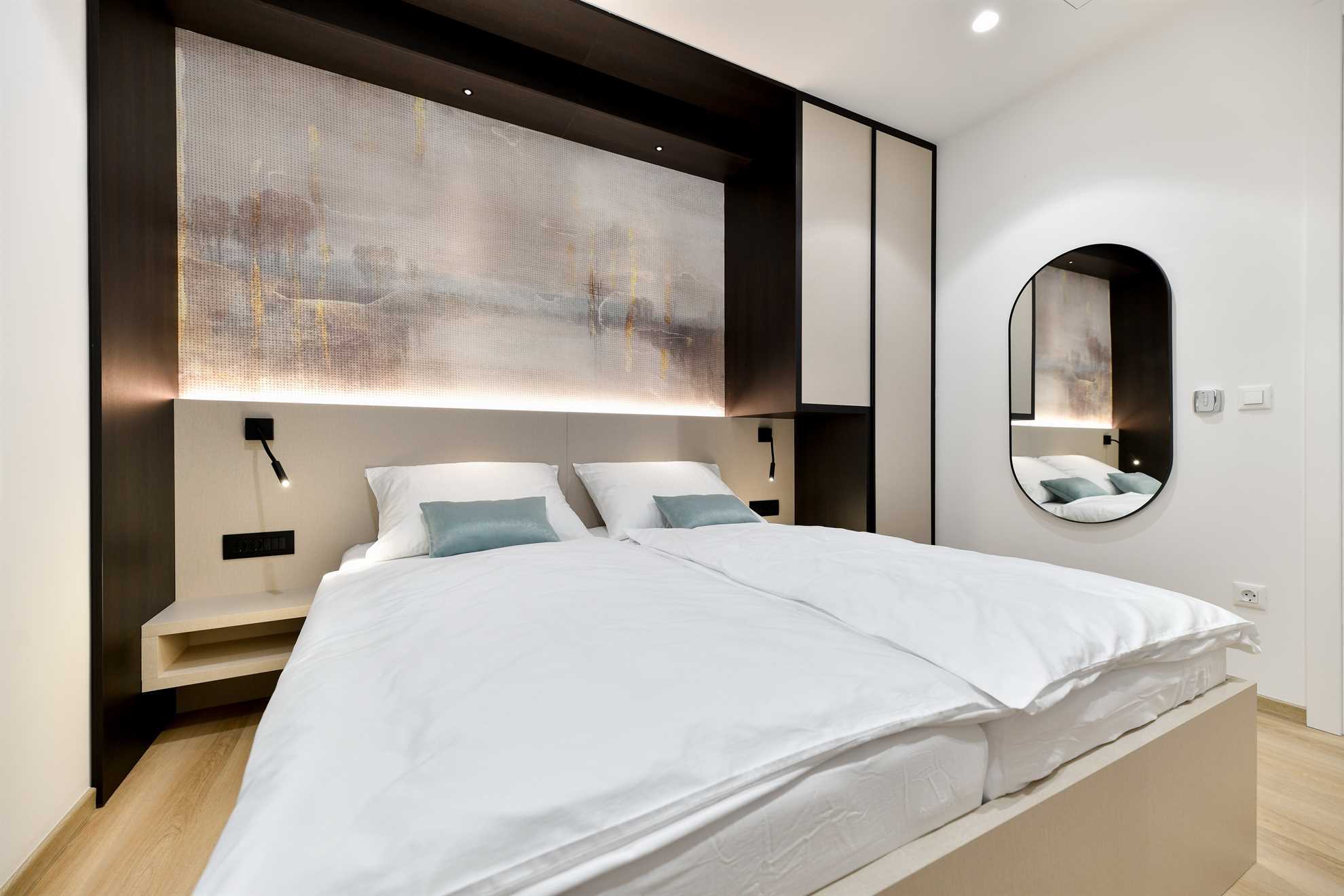 On the area of 47m2, there is an air-conditioned living room with a dining area and fully equipped kitchen, 1 bedroom, 1 bathroom and an additional guest toilet.