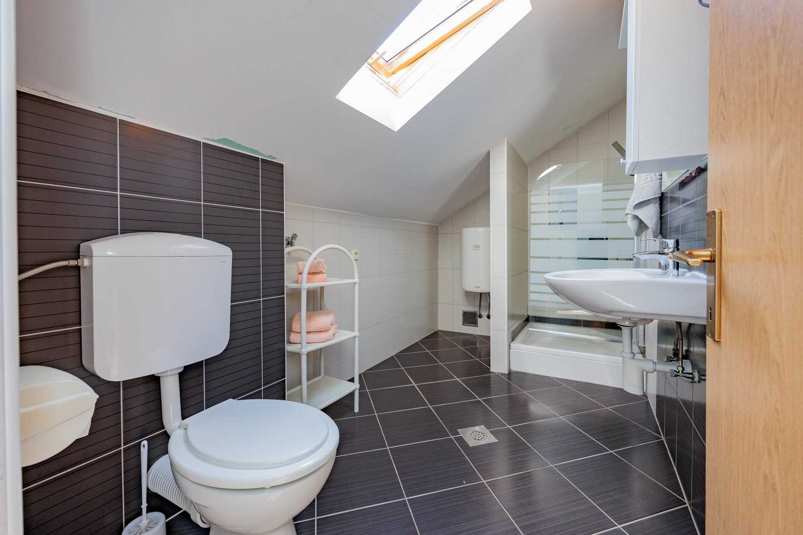 Crowonder Lucky Apartment A5 is in the attic at the top of the building. Guests have 3 bedrooms with double beds, an air-conditioned living room with a sofa and TV, a fully equipped kitchen, and a bathroom with a shower. Detailed information about the equipment and available equipment can be found in the Facility Features section under the property description. The apartment also has a balcony overlooking the Adriatic Sea.