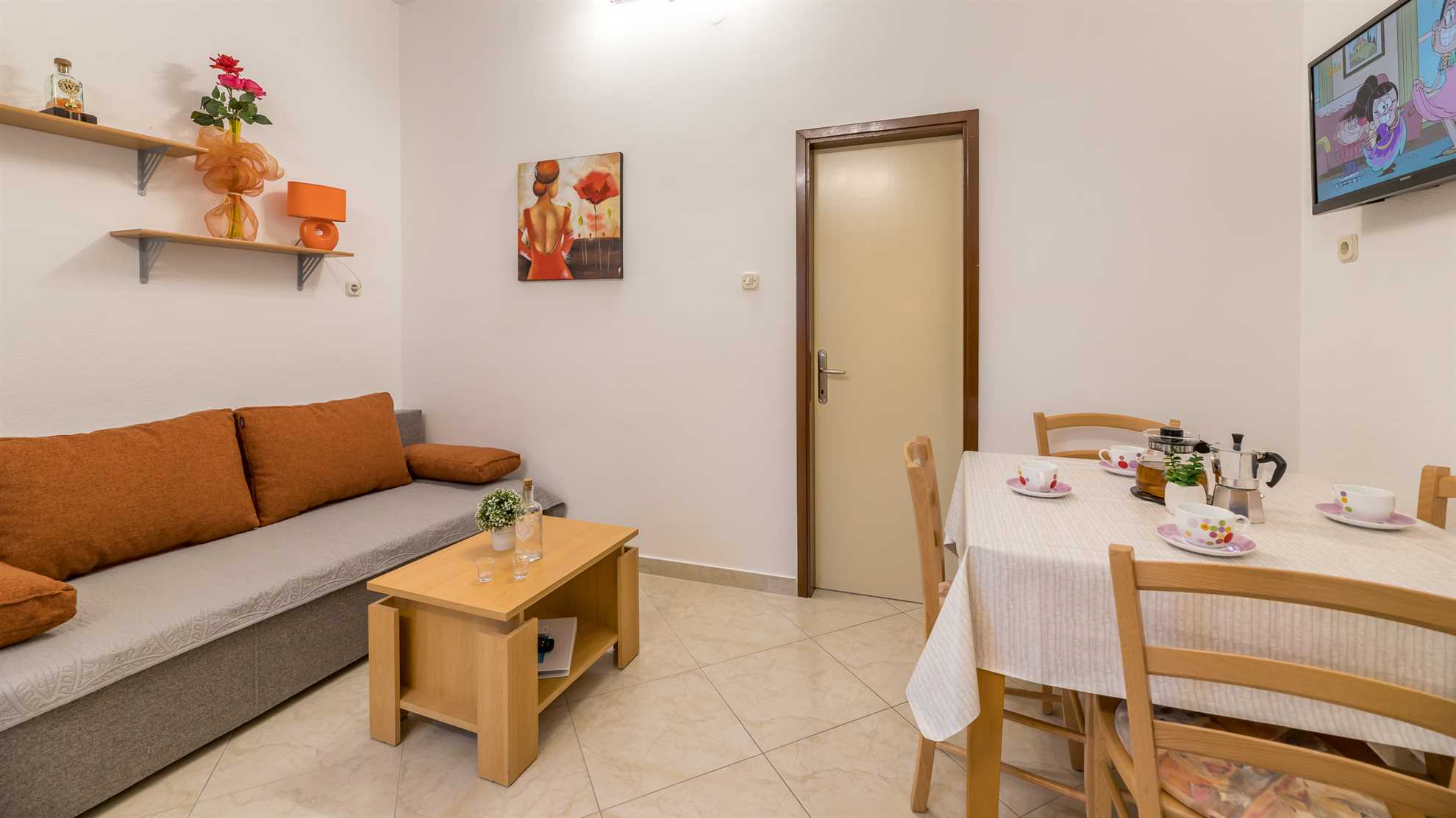 Encased within this apartment is 1 clean and spacious bathroom outfitted with well-thought-out bath essentials to cater to your needs. Complementing the stylishly appointed bedroom is a cozy living room, where you can unwind after exploring the delightful Baška. However, please note, in order to maintain the serene atmosphere, no pets are allowed in this property.
