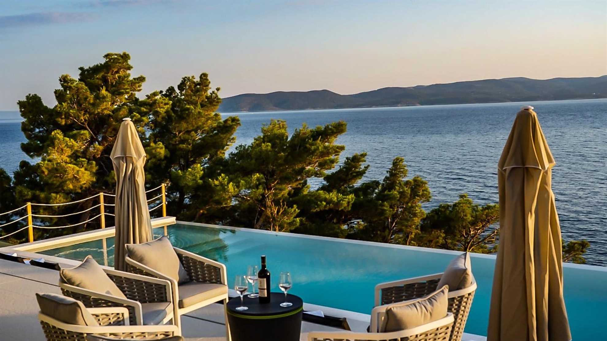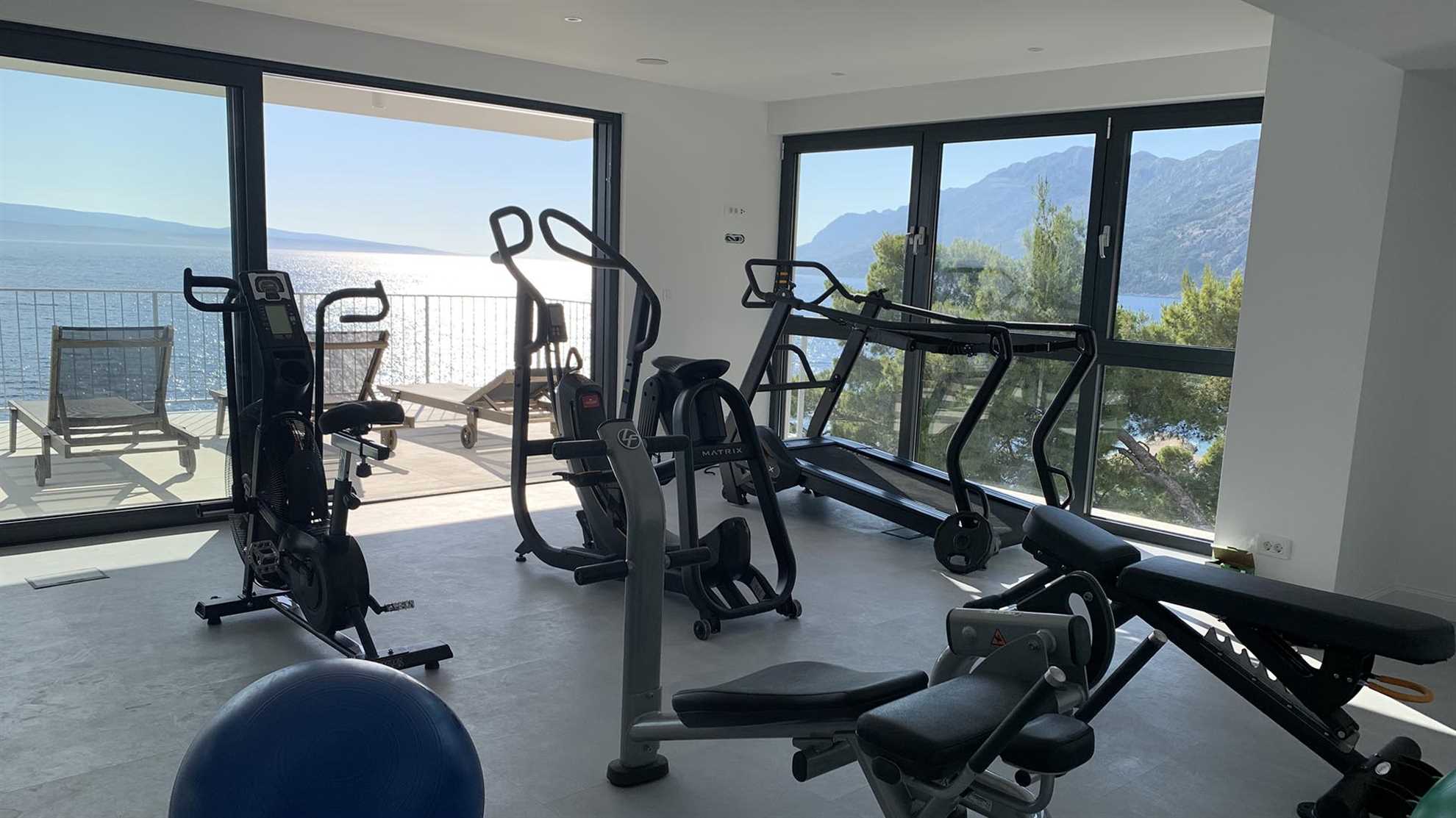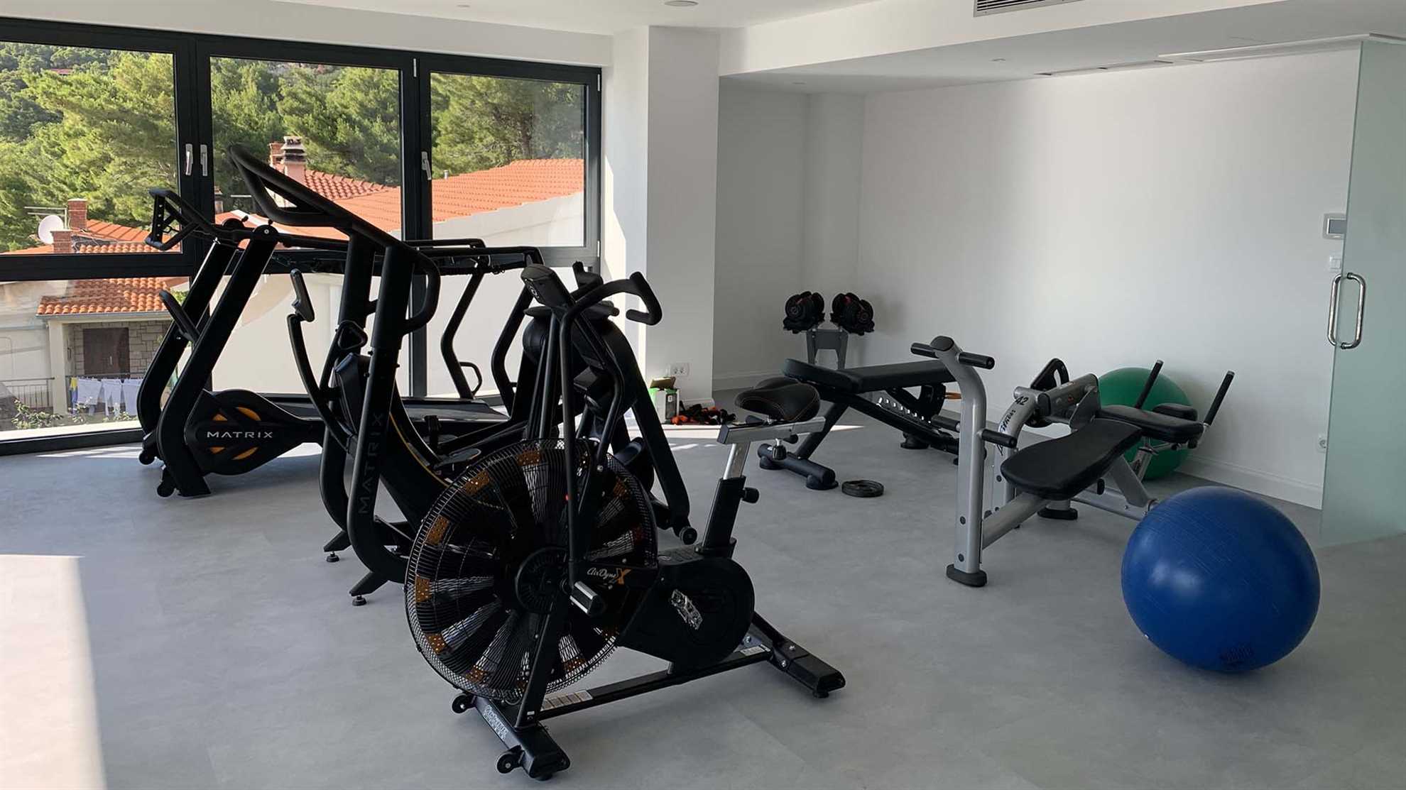 This gorgeous villa will welcome its visitors on four floors, with nine bedrooms and ten bathrooms. A total of 18 persons will be able to enjoy the complete luxury, pets are allowed and all of the floors are connected by an elevator. The third floor is the place where you can indulge yourselves in the gym and the sauna, all the while taking in the view of the beautiful Adriatic coast. The second floor is also equipped with a sauna wellness and an outdoor jacuzzi as well as a gym. The ground floor of the villa is reserved for an elegant and modern living room with a kitchen appointed in a similar style. It is a place where you can use the dedicated wine cooler to keep the wines from the wine cellar at just the right temperature. When you step out of the villa on the ground floor you will find yourself on the large terrace leading to a heated pool with the so-called 'infinity' edge, which provides an unforgettable view of the sea, and with ample room for everyone on one of the 20 available deck chairs. For the little ones, entertainment is provided in the form of table tennis, a Playstation game console and much more.