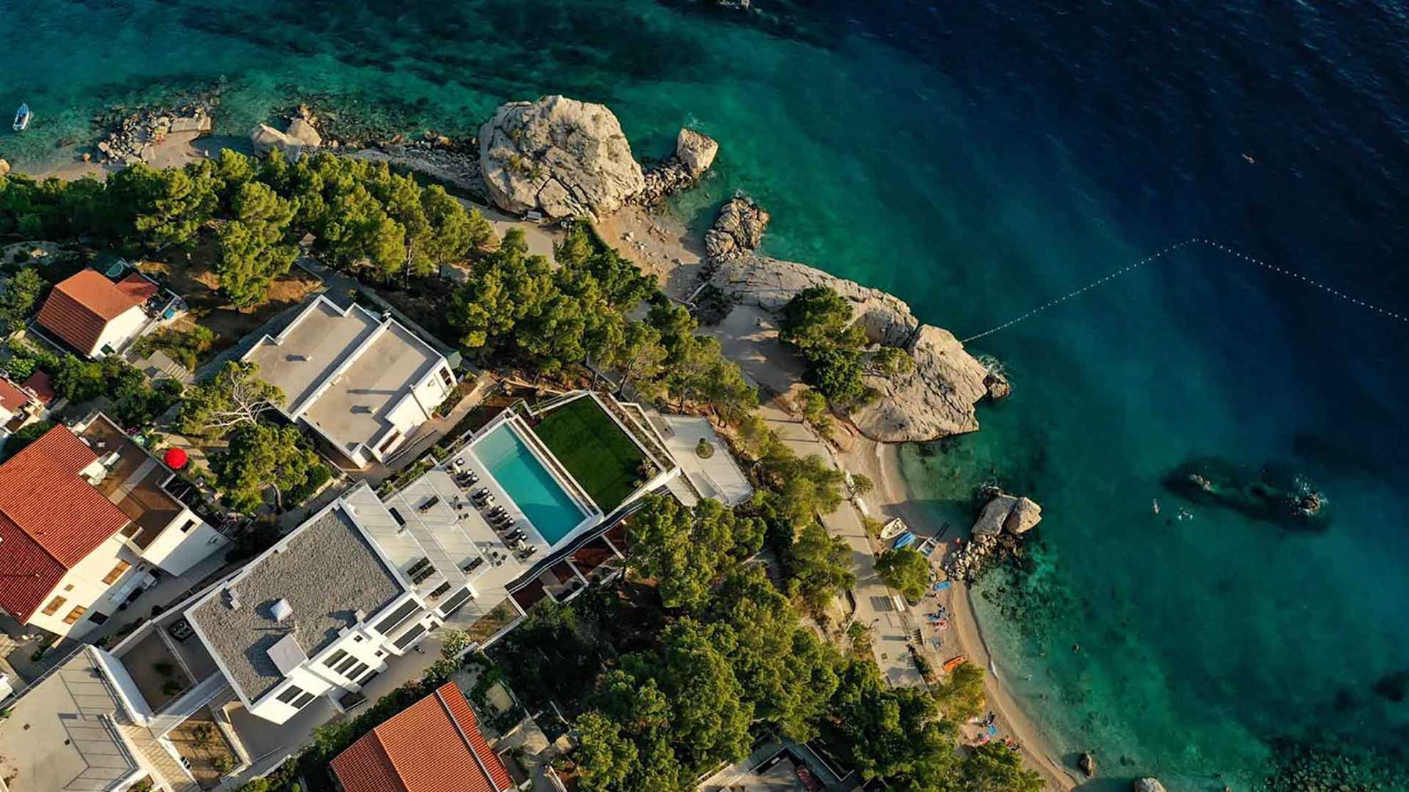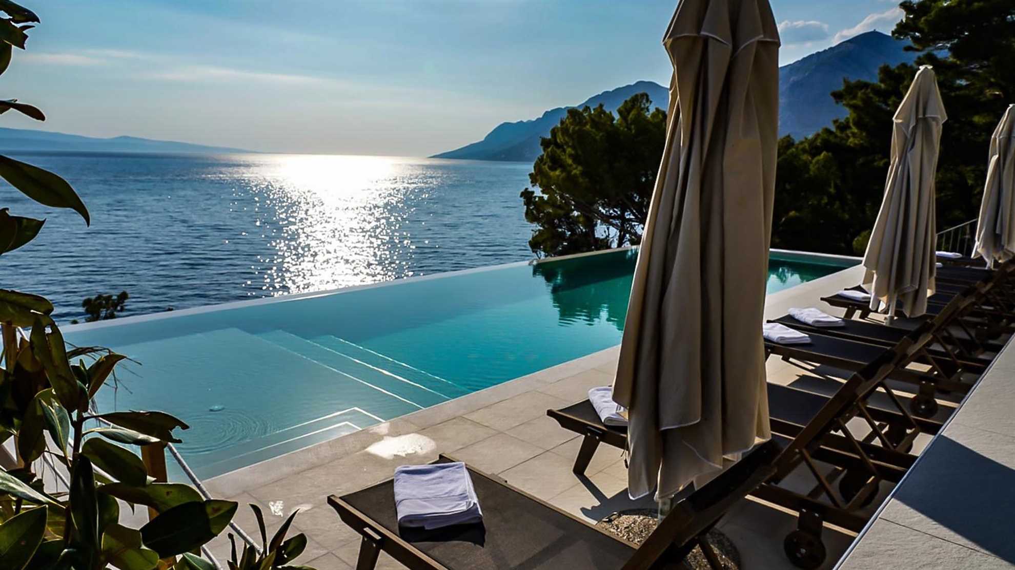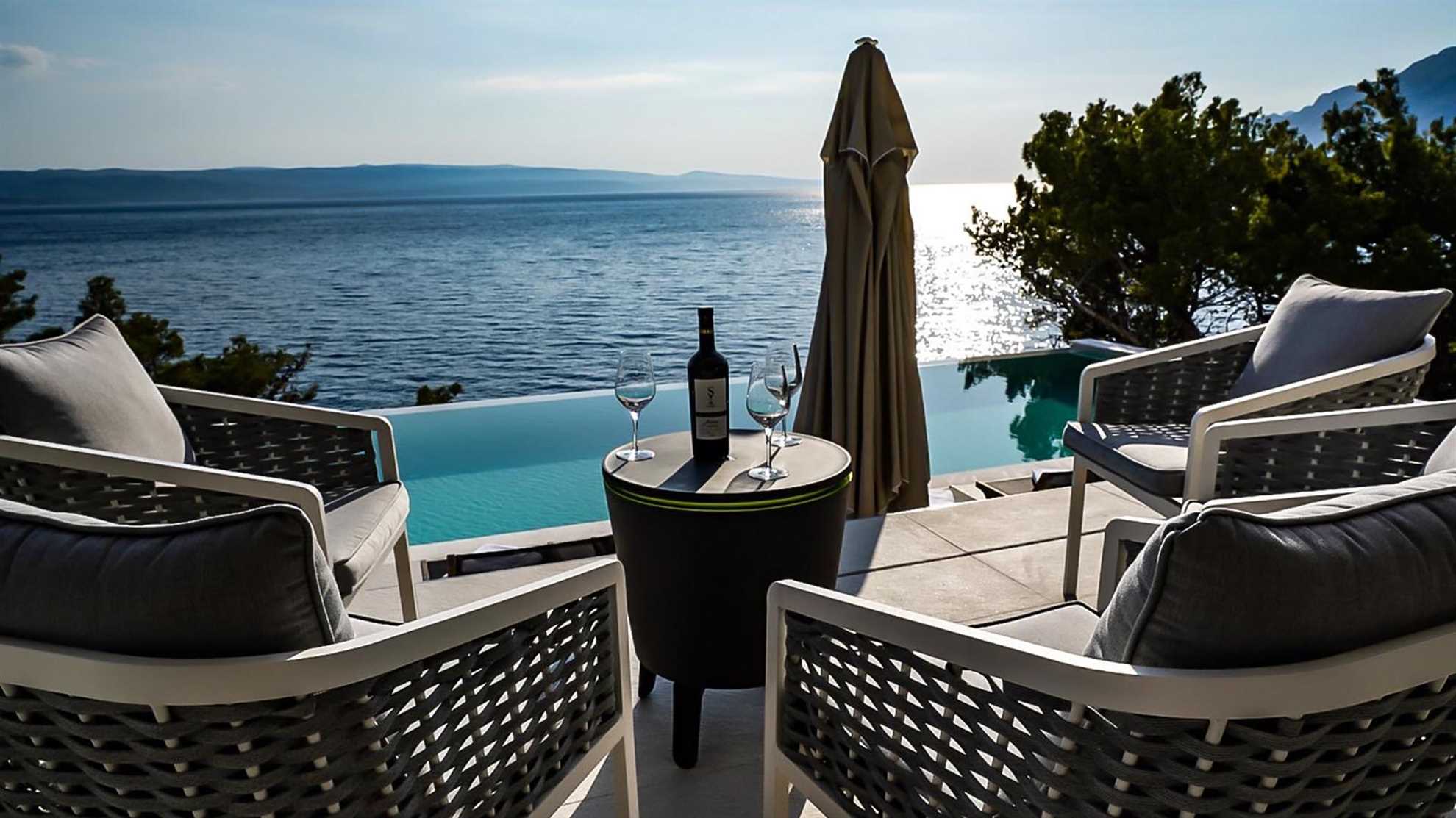 This gorgeous villa will welcome its visitors on four floors, with nine bedrooms and ten bathrooms. A total of 18 persons will be able to enjoy the complete luxury, pets are allowed and all of the floors are connected by an elevator. The third floor is the place where you can indulge yourselves in the gym and the sauna, all the while taking in the view of the beautiful Adriatic coast. The second floor is also equipped with a sauna wellness and an outdoor jacuzzi as well as a gym. The ground floor of the villa is reserved for an elegant and modern living room with a kitchen appointed in a similar style. It is a place where you can use the dedicated wine cooler to keep the wines from the wine cellar at just the right temperature. When you step out of the villa on the ground floor you will find yourself on the large terrace leading to a heated pool with the so-called 'infinity' edge, which provides an unforgettable view of the sea, and with ample room for everyone on one of the 20 available deck chairs. For the little ones, entertainment is provided in the form of table tennis, a Playstation game console and much more.