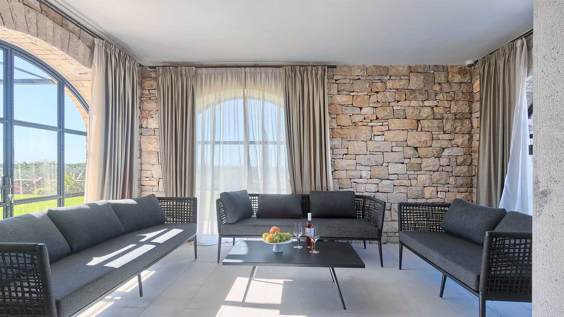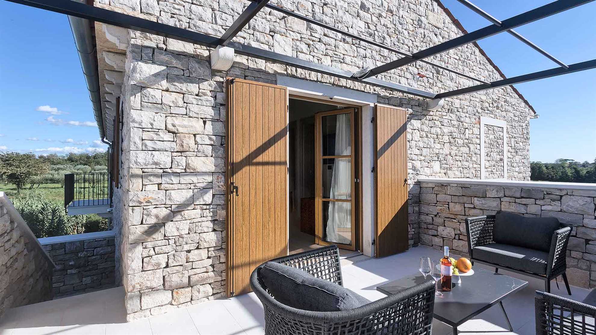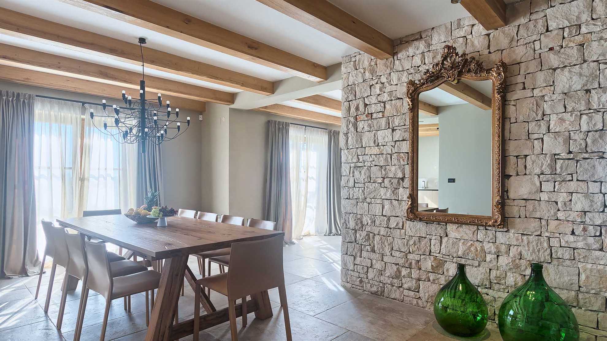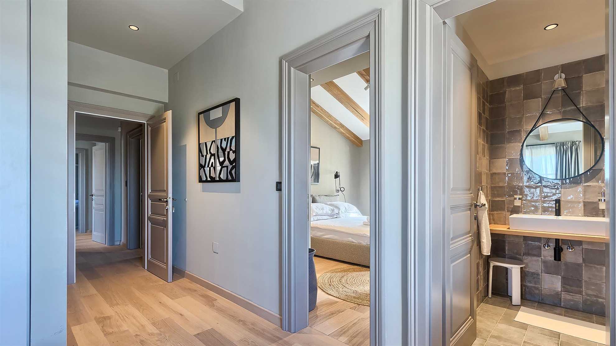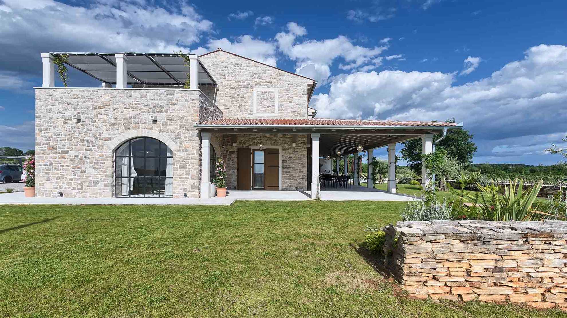 This luxurious villa was built following architectural traditions of the Mediterranean. It is ideal for all guests seeking a relaxing refuge from the everyday bustle of urban areas. It can accommodate up to 8 people in its very comfortable 3 bedrooms with their own bathrooms. The interior is richly appointed and there you can find a living room with a fireplace, a modern kitchen with a dining area, a winter garden and so much more. The exterior has an outdoor pool and a fire burning grill with a covered area ideal for family meals. However, the main treasure of the villa can be found in the basement where you will encounter a wellness with 2 saunas, a jacuzzi and a gym. Let the relaxing begin!