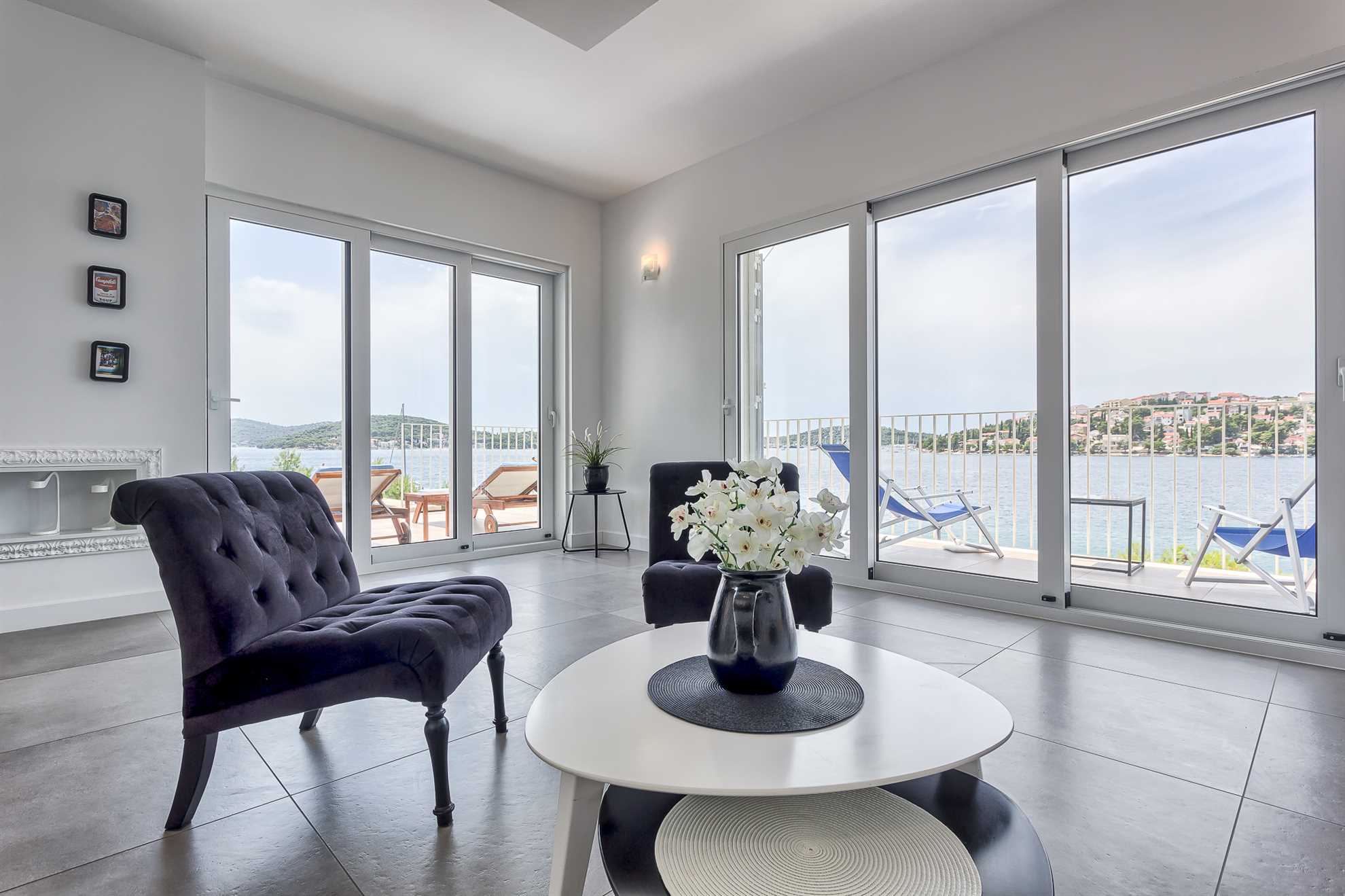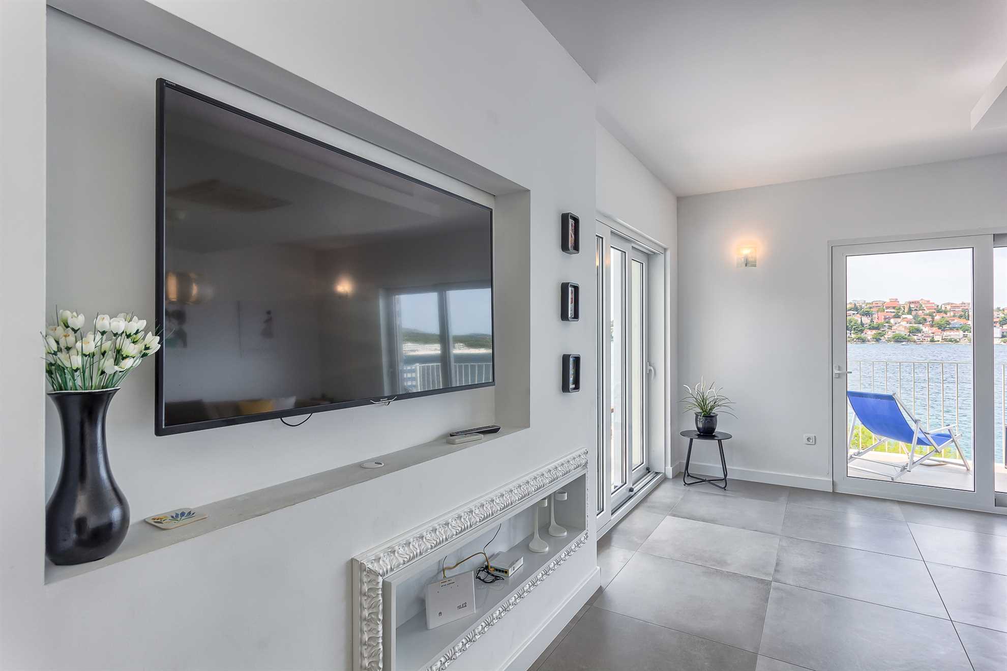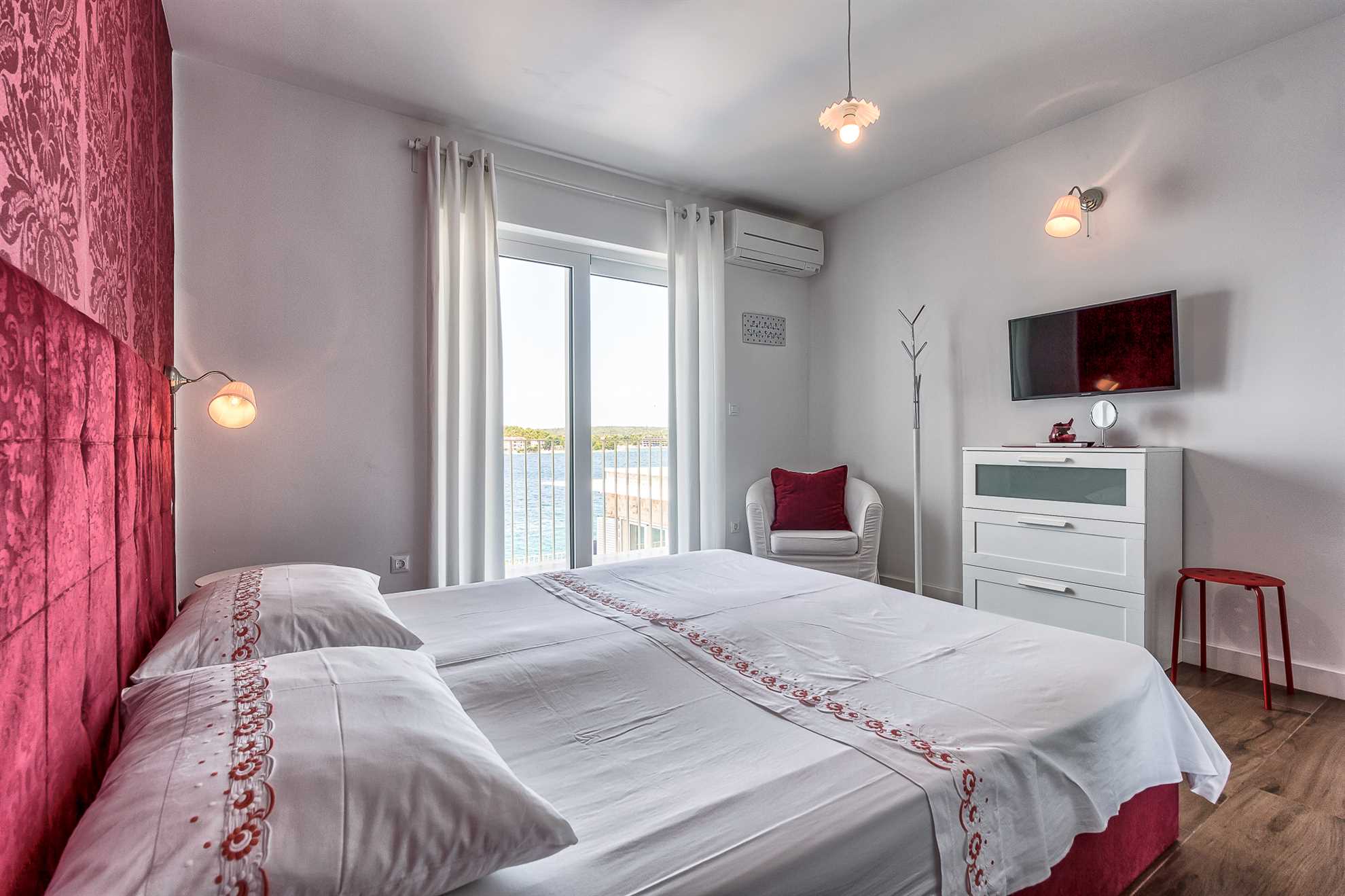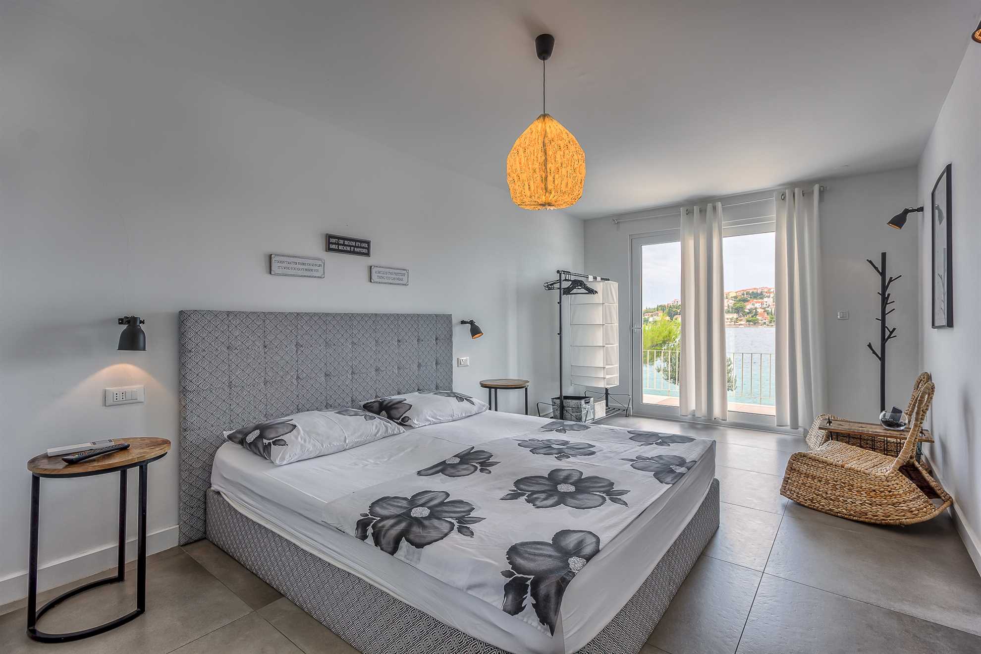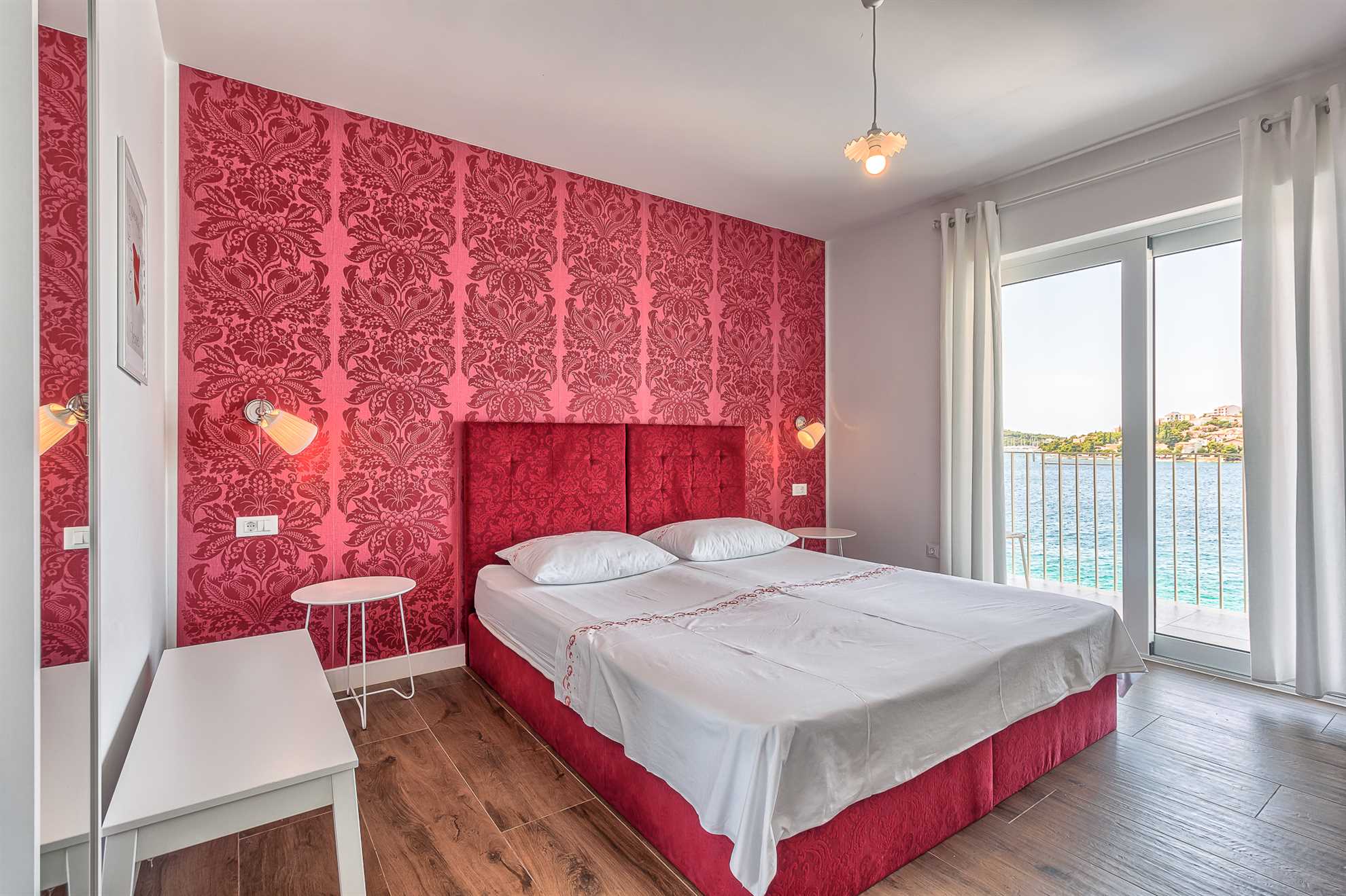 Villa La Perla is a modern and specious yet cozy and inviting holiday villa only steps away to the crystal blue Adriatic with spectacular views offered from each angle. It occupies 300m² spread over three levels and offers a roomy lounge with floor to ceiling windows, a fully equipped kitchen with a central island and a bright dining room, all with access to the balcony. Specious bedrooms decorated in color themes each have their own private bathroom, seating area, flatscreen TV, including access to the balcony or terrace with magnificent views of the sheltered bay. For your entertainment you will also find a pool table room adjacent to the balcony equipped with table football. Once outside the aromas of sea and pines will delight your senses. Enjoy this area setup for leisurely activities, whether that means taking a dip in the heated pool, lighting up a BBQ, sharing al fresco meal with your loved ones, relaxing in a shaded seating lounge or taking a swim in the sea...the choice is yours. Life seldom gets better than this.