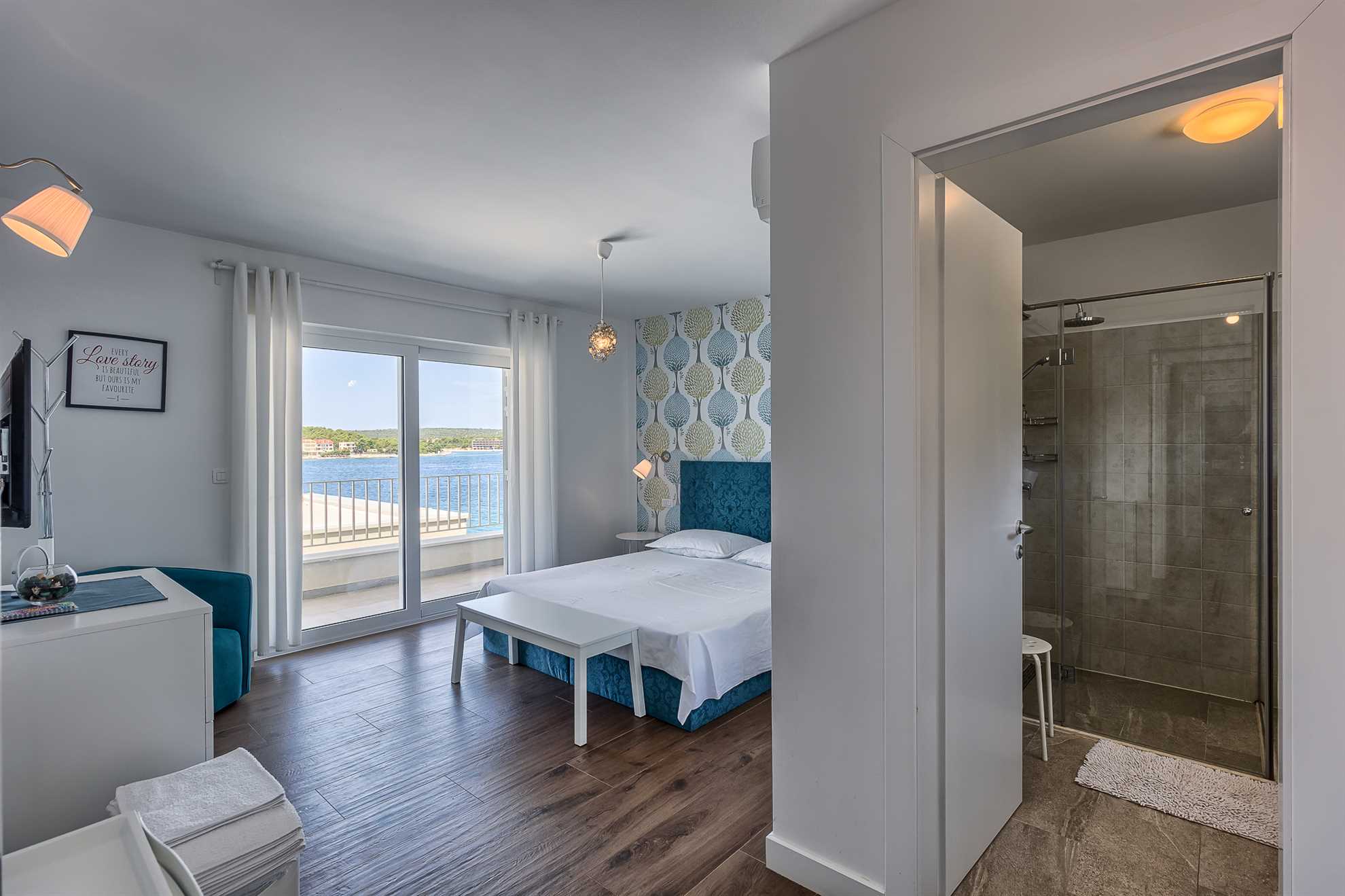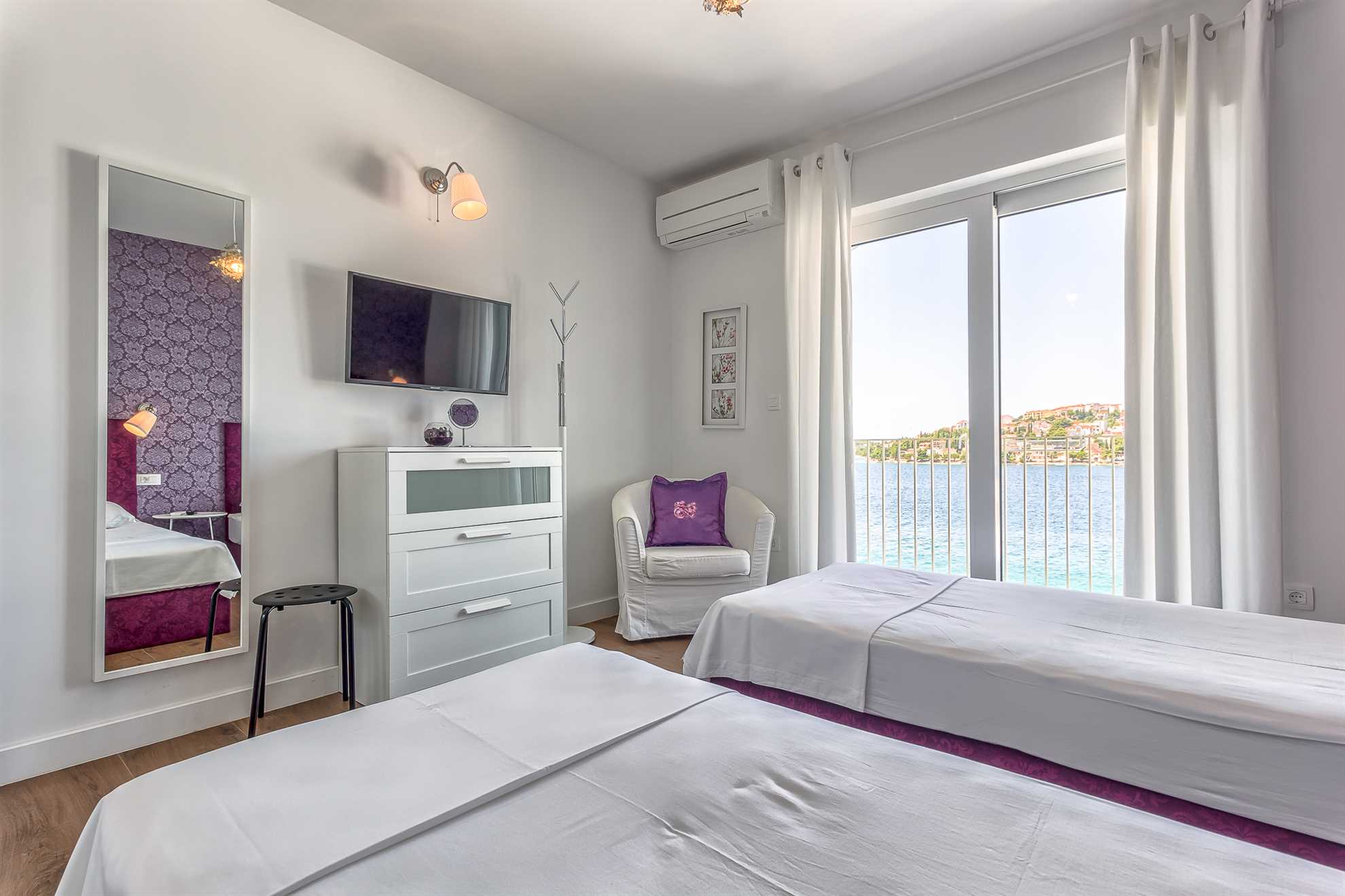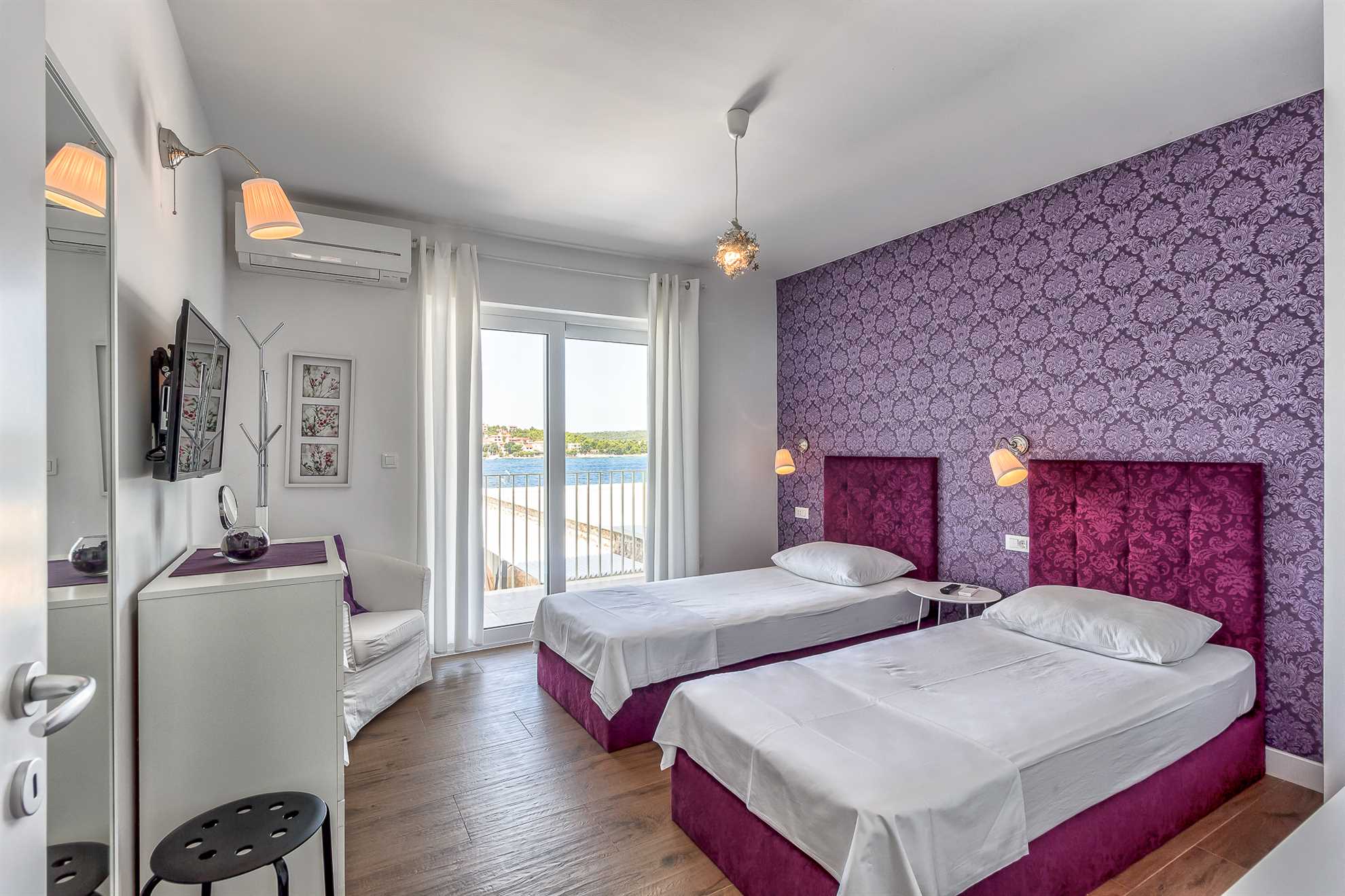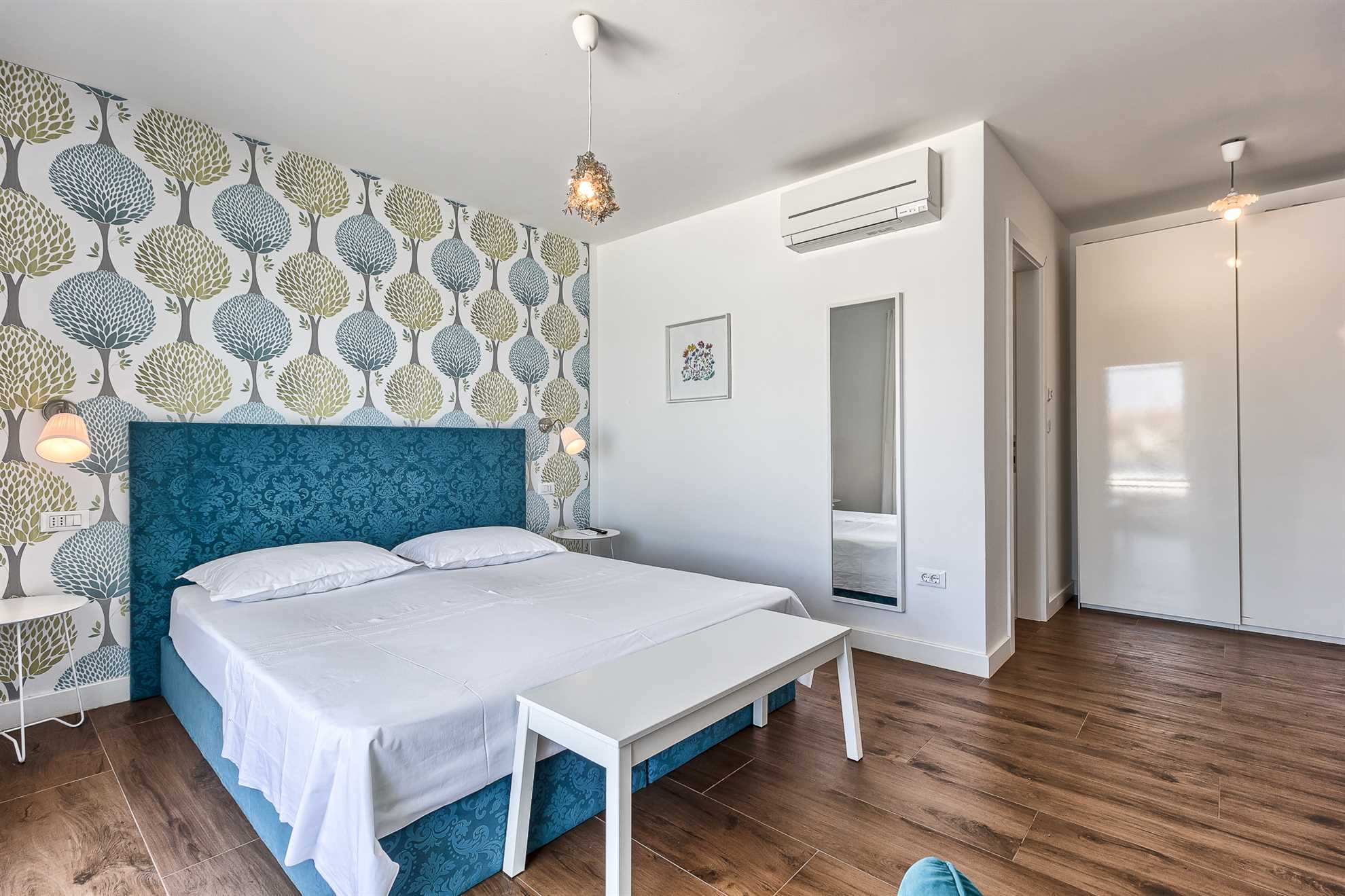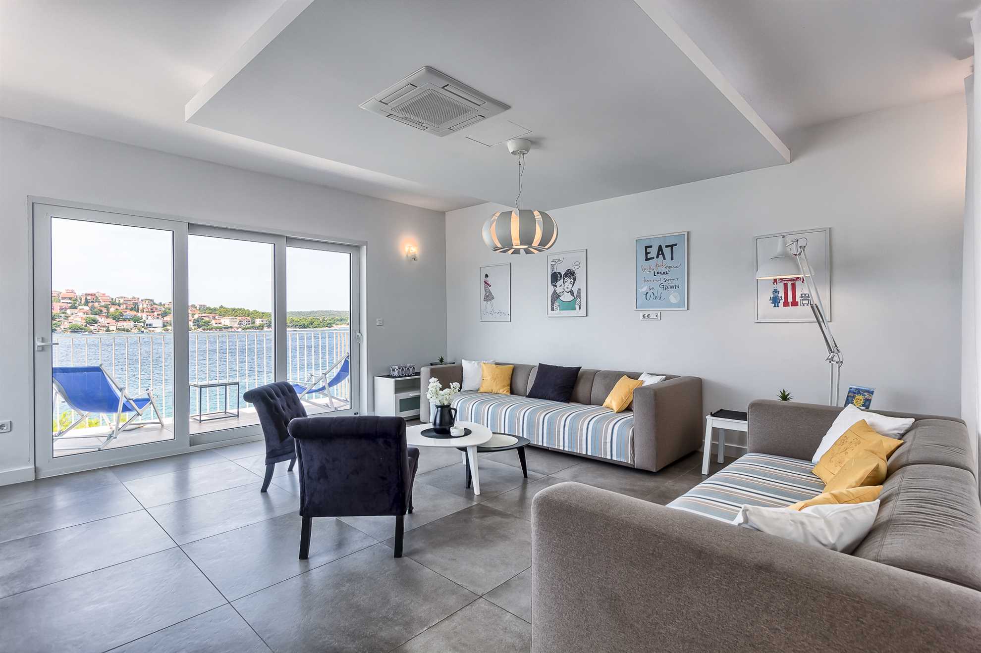 Villa La Perla is a modern and specious yet cozy and inviting holiday villa only steps away to the crystal blue Adriatic with spectacular views offered from each angle. It occupies 300m² spread over three levels and offers a roomy lounge with floor to ceiling windows, a fully equipped kitchen with a central island and a bright dining room, all with access to the balcony. Specious bedrooms decorated in color themes each have their own private bathroom, seating area, flatscreen TV, including access to the balcony or terrace with magnificent views of the sheltered bay. For your entertainment you will also find a pool table room adjacent to the balcony equipped with table football. Once outside the aromas of sea and pines will delight your senses. Enjoy this area setup for leisurely activities, whether that means taking a dip in the heated pool, lighting up a BBQ, sharing al fresco meal with your loved ones, relaxing in a shaded seating lounge or taking a swim in the sea...the choice is yours. Life seldom gets better than this.
