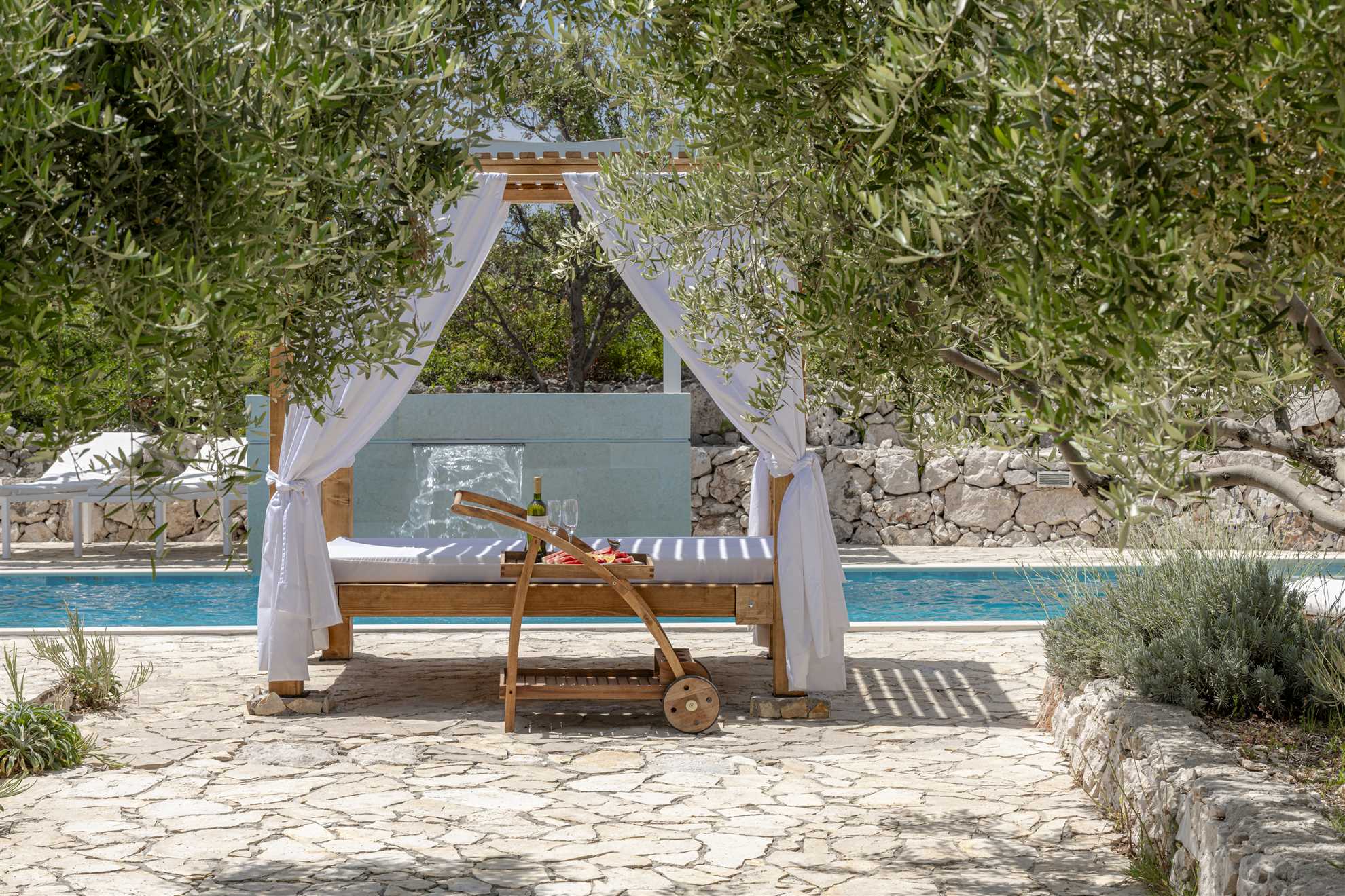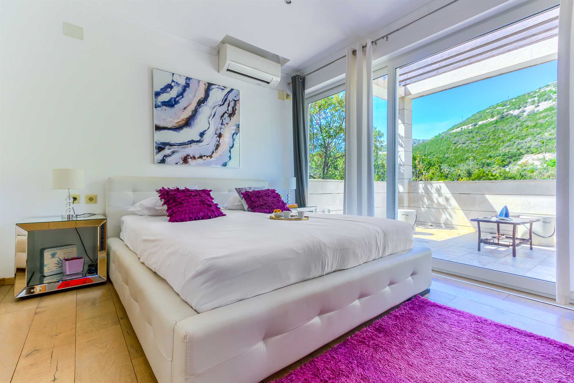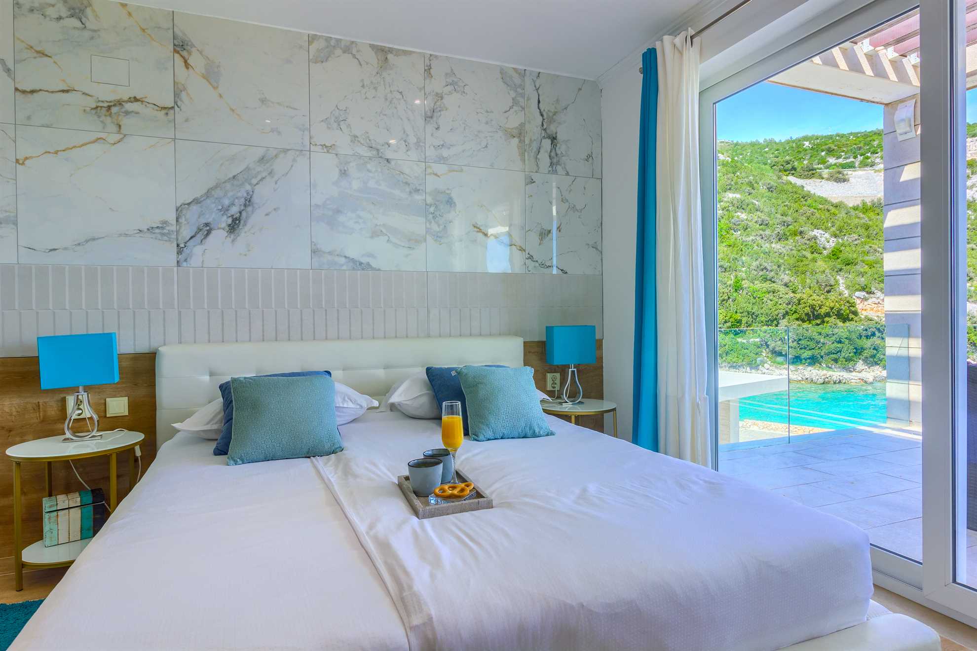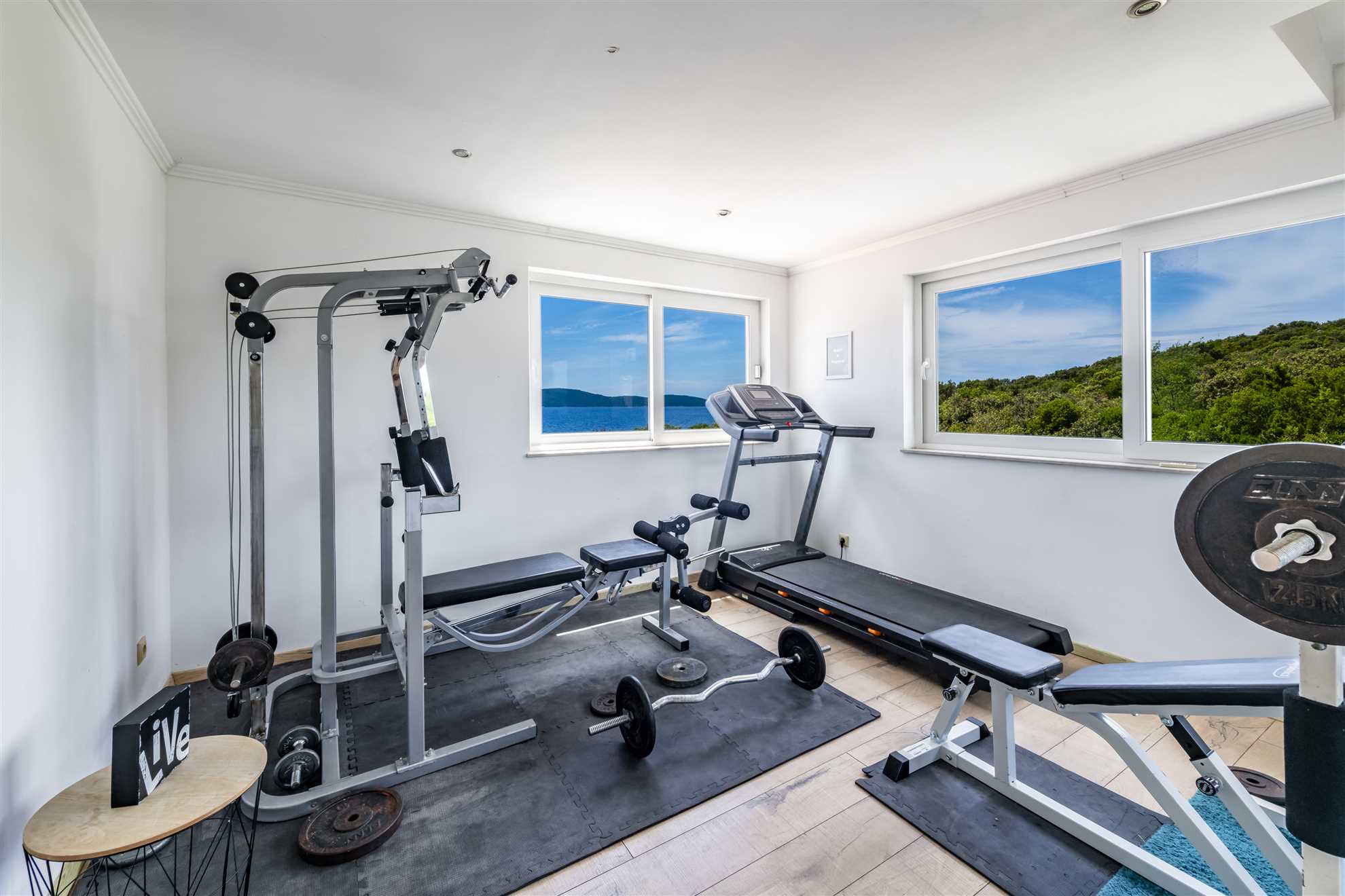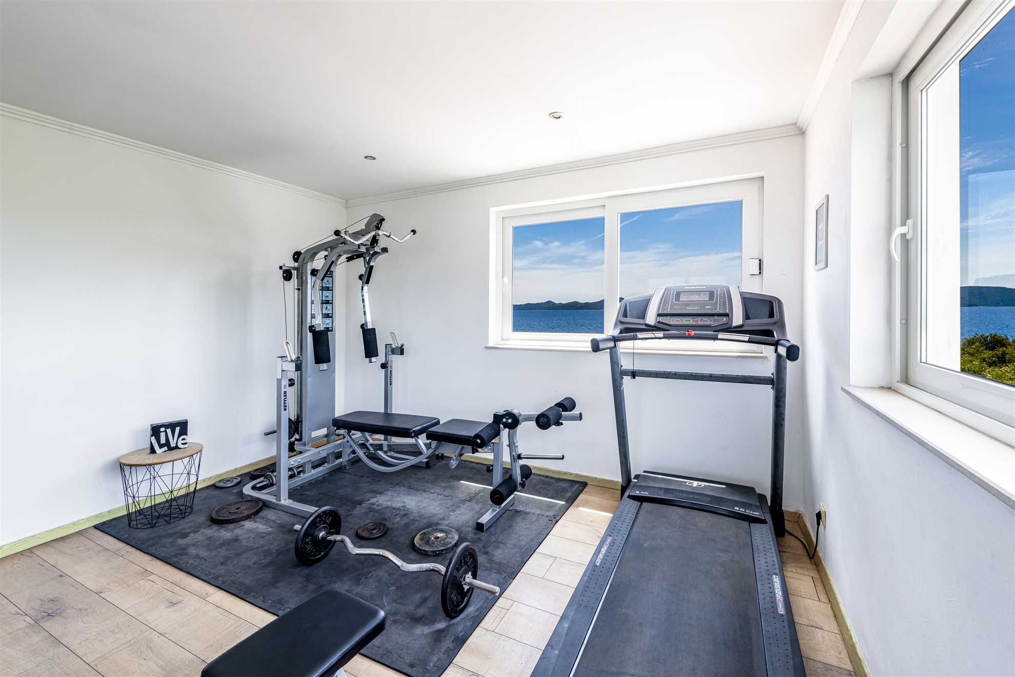 One of a kind charming property located right on the water in a secluded, quiet and tranquil bay. Villa Oasis provides comfort, luxury, relaxation, privacy and views of the gorgeous landscape in every direction. Without many neighbors around you are sure to have the beautiful blue Adriatic to yourself. Two levels occupy the villa. On the ground floor is a large, fully equipped, modern kitchen with a large dining table seating 12. Here are also two double bedrooms, a triple bedroom as well as two bathrooms. On the upper level are the remaining two double bedrooms, two bathrooms and a separate guest toilet, also a lounge with a sofa bed and a balcony. Facing the sea, each room allows for a breathtaking view. For your comfort and enjoyment provided are a gym, pool table, sauna, table tennis, children’s playground and a Jacuzzi. Impressive outdoor area provides covered lounge areas, alfresco dining, barbecue facilities, and stone deck to access the pool with a smaller section within for the little ones’ safety. If you fancy a swim early in the morning in the sea, you won’t go far as the access to the sea is at your doorstep.