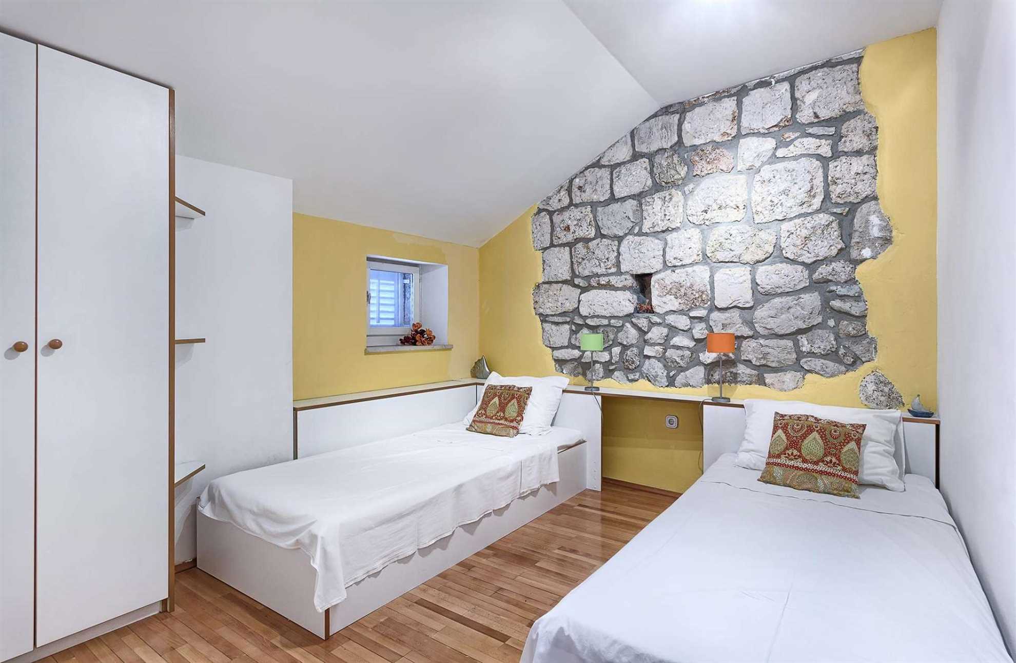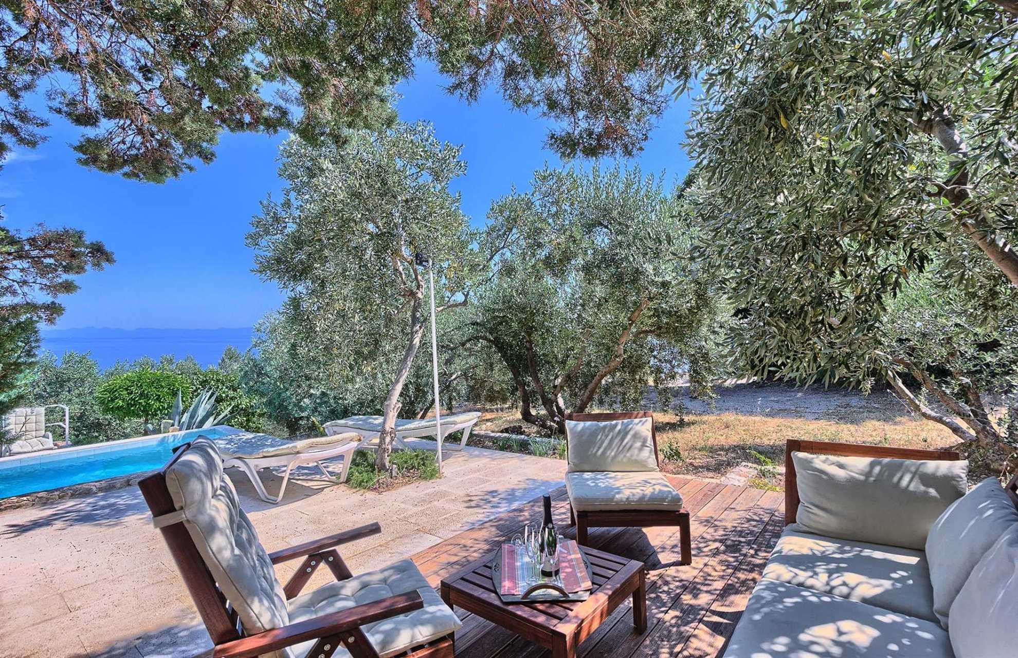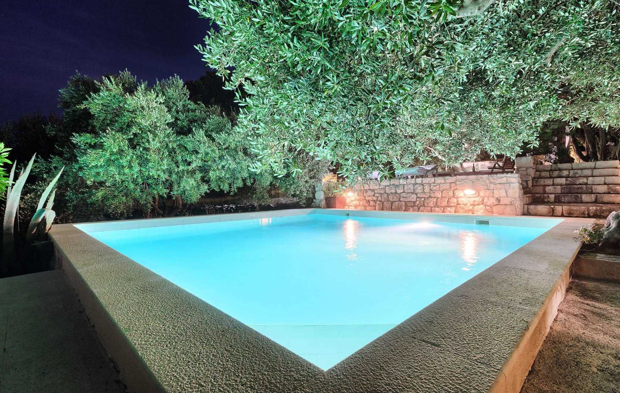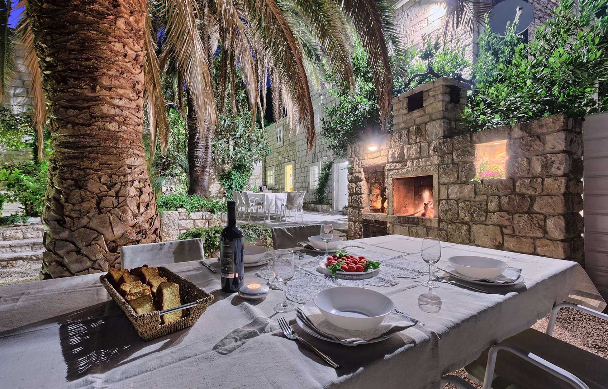 Charming garden oasis consisting of three separate living units, each with its own two bedrooms, two bathrooms and a lounge with a flatscreen TV, ideal for multiple families looking to vacation together without compromising privacy. The authentic villa boasts regional charm with exposed stone walls, wood beams and a large stone fireplace. Fully equipped kitchen with a dining room is in a separate unit accessible to all. The outdoor garden impresses with lush rose bushes, olive and palm trees and aloe plants and yields breathtaking views of the sea and the neighboring islands. Heated pool is also provided for your enjoyment, as well as built in BBQ facilities, alfresco dining tables and plenty of shaded seating areas. Casa Garden invites you to relax, enjoy quality time together, time apart, and indulge your holiday. The beach is a whole 4-minute walk away. Welcome to Dalmatia.