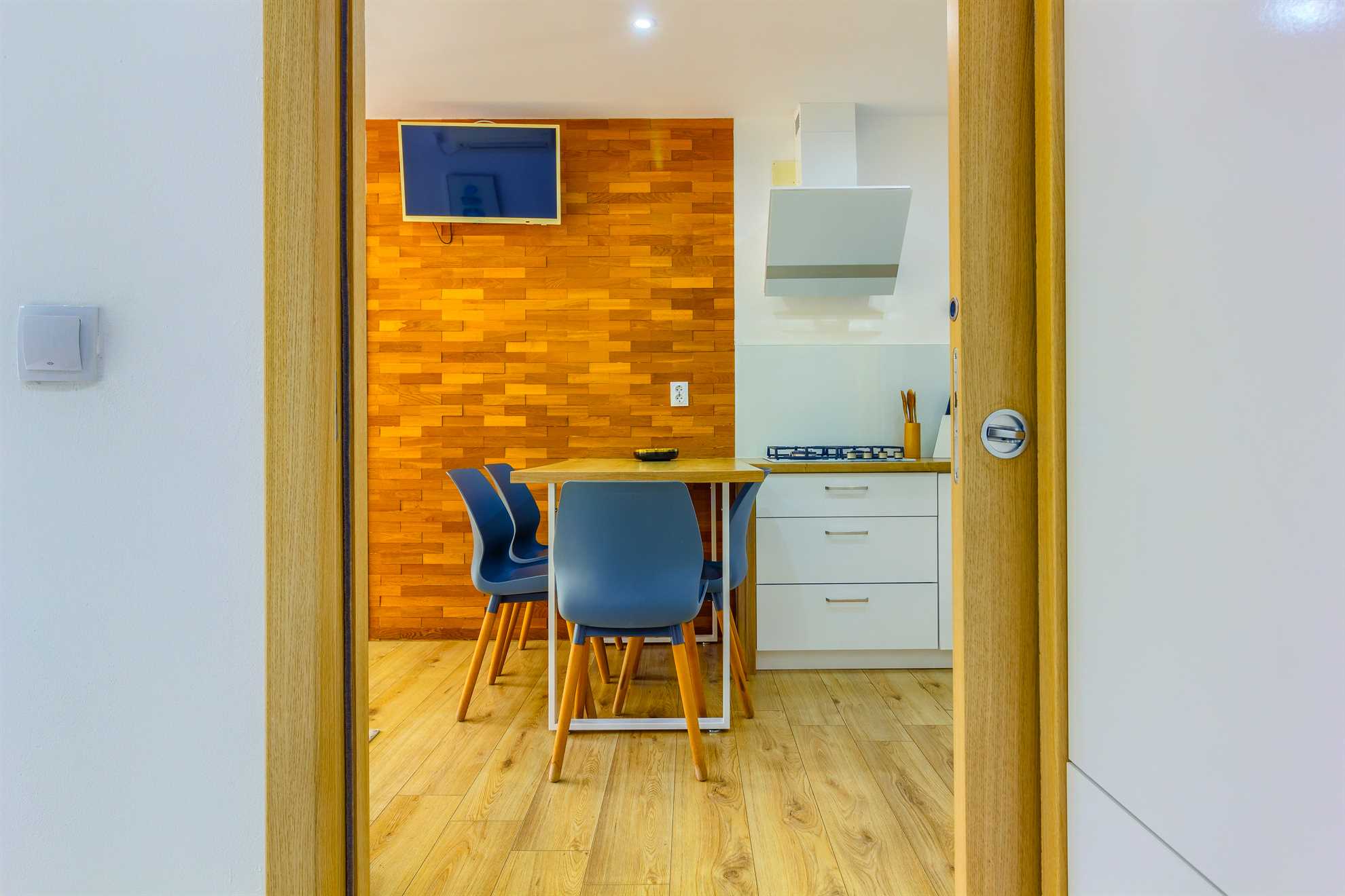 In two bedrooms four guests are comfortably accommodated, with an option of one more on the sofa bed.