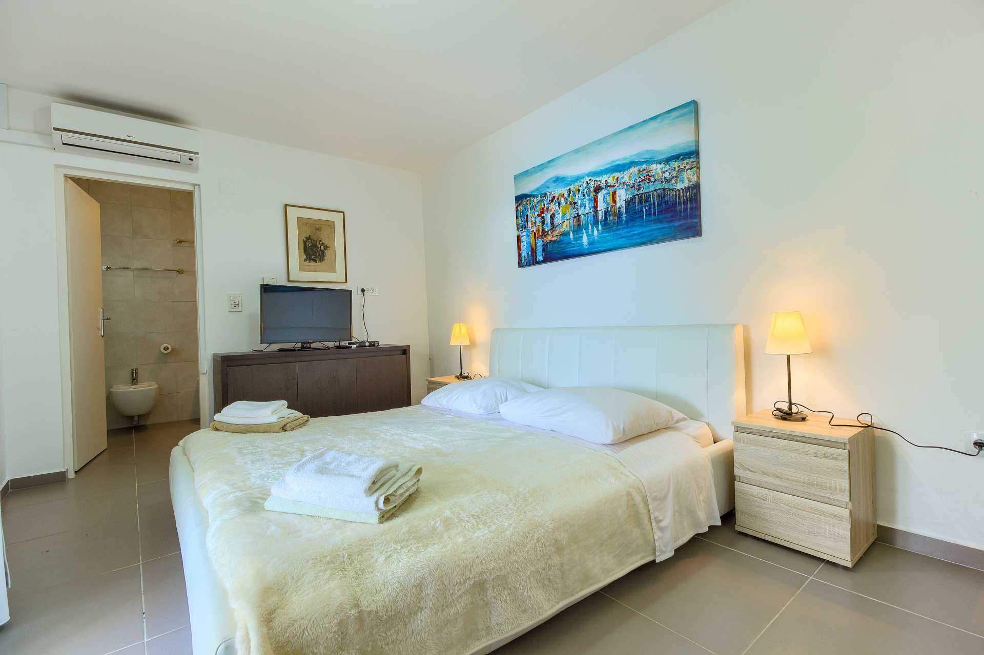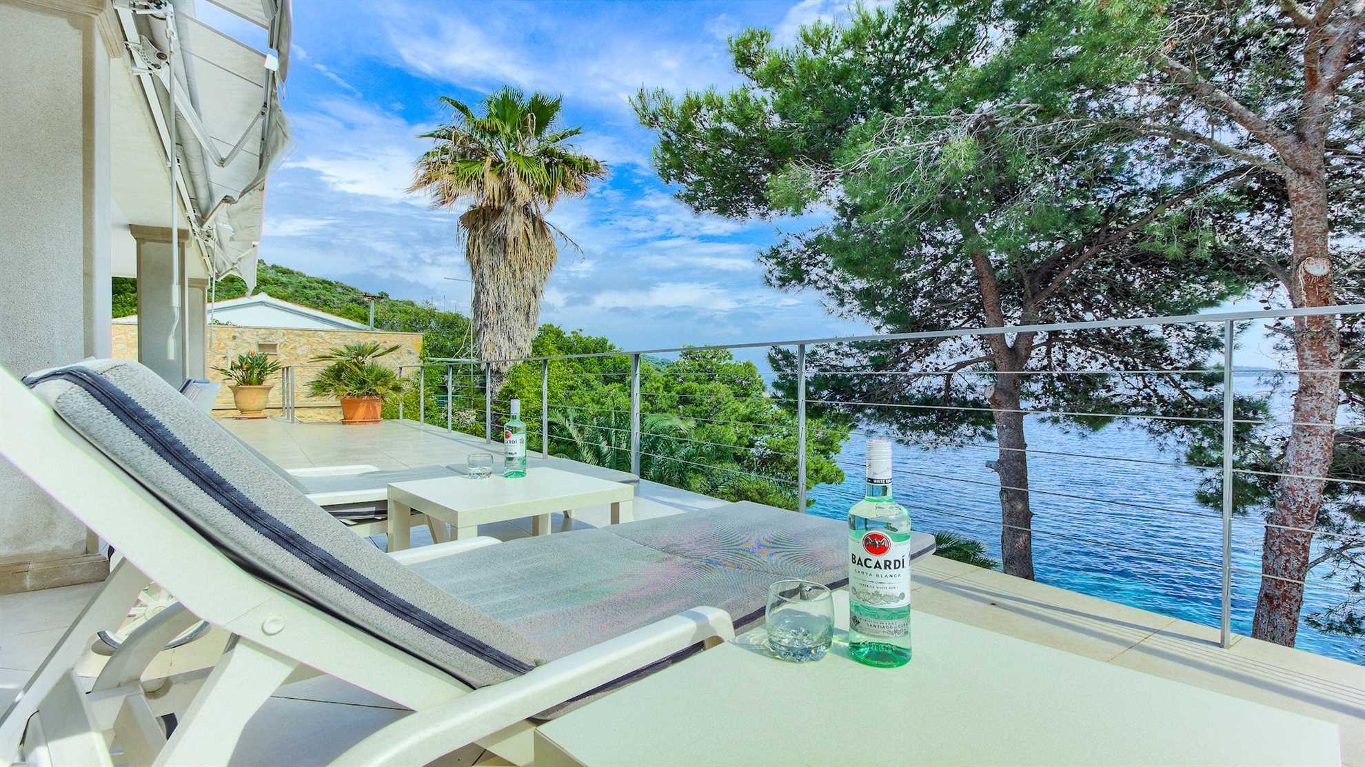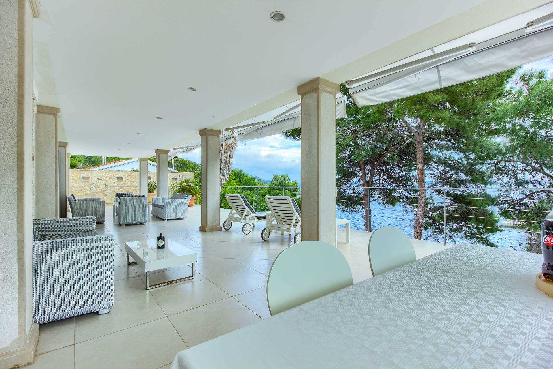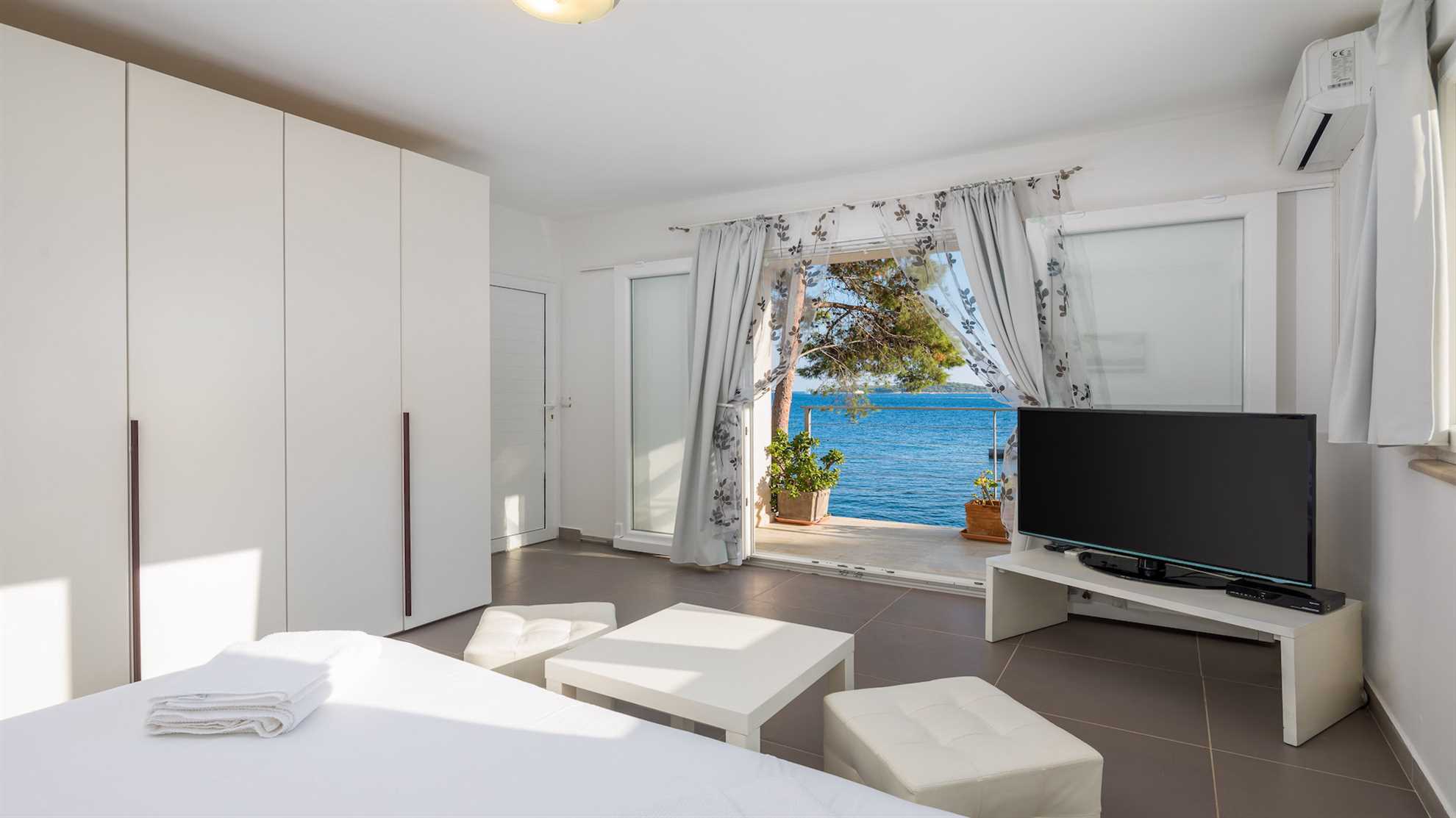 Welcome to the stunning beachfront villa that has it all, located in the national park Pelegrin radiating abundant life. With views of the beautiful blue Adriatic only a few feet away, pine and palm tree around, complete privacy, balconies and terraces to enjoy the sunsets, exclusive access to the water, private pool, comfy and charming naturally shaded seating areas throughout, Villa Crystal Water gives you no choice but to enjoy it, and to enjoy family and friends you are sharing it with. With 350m2 of interior each guest is granted a corner of privacy to themselves. Bedrooms have access to balconies facing the sea insuring an incredible start to every day. The ground floor is composed of a bright sofa lounge and a kitchen ideal for large get-togethers with a dining table seating 14 and a built-in stone fireplace, all with access to a terrace providing further alfresco dining area with sea views. Bedrooms come with flatscreen TVs, with sea and garden views, each has a king size bed, three have their own ensuite bathroom.