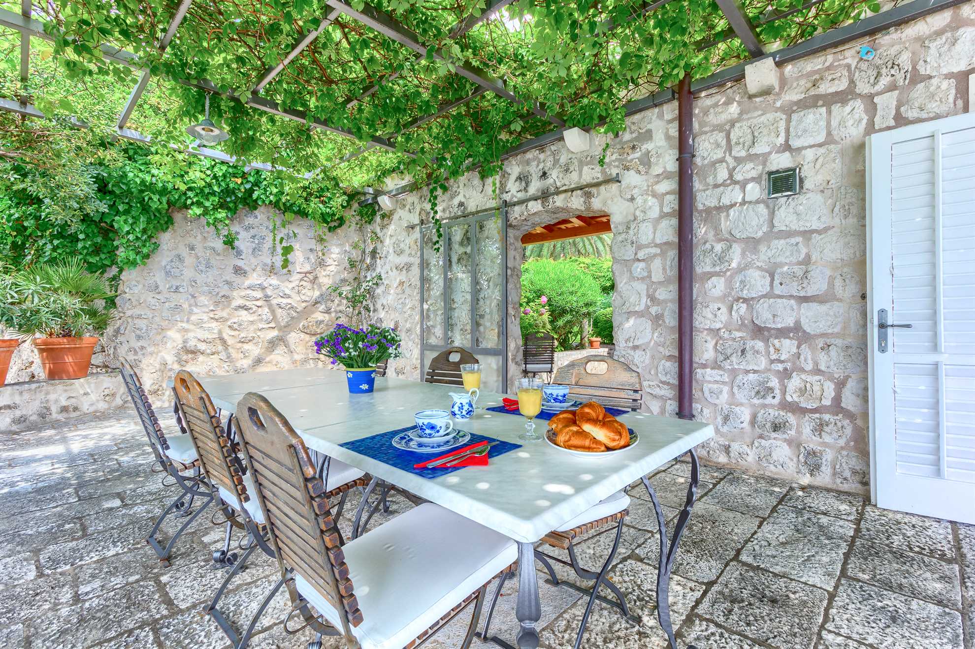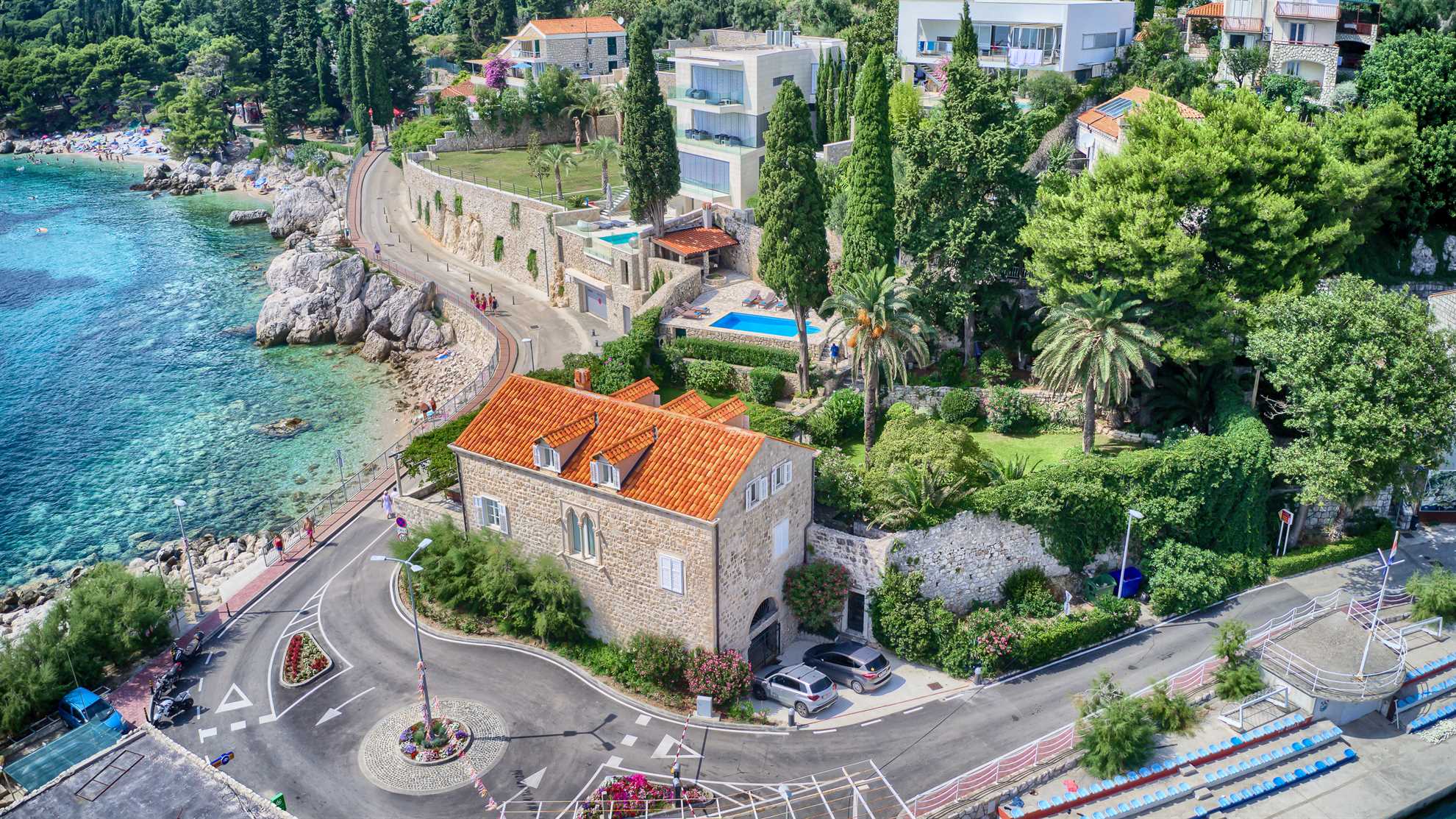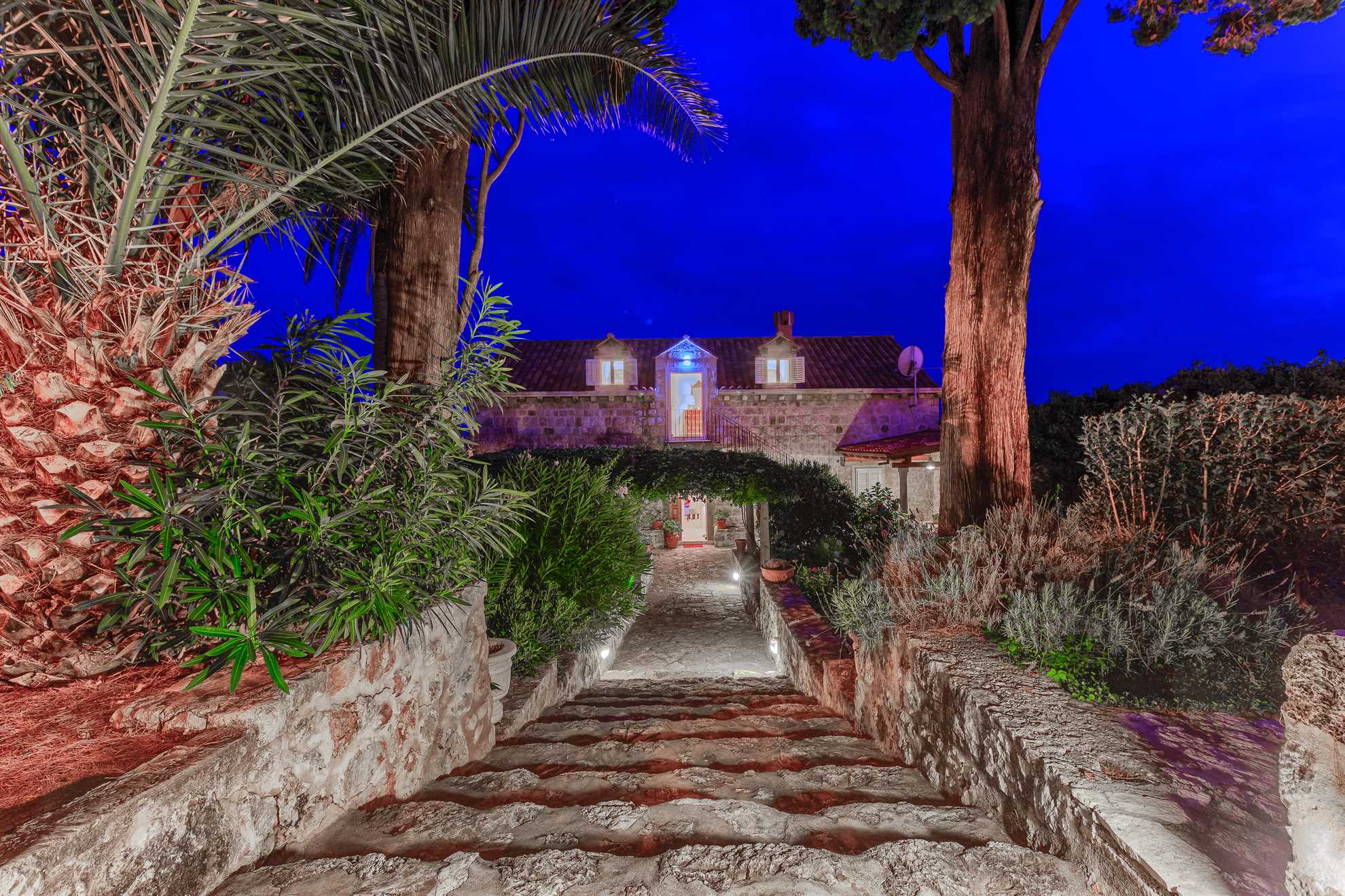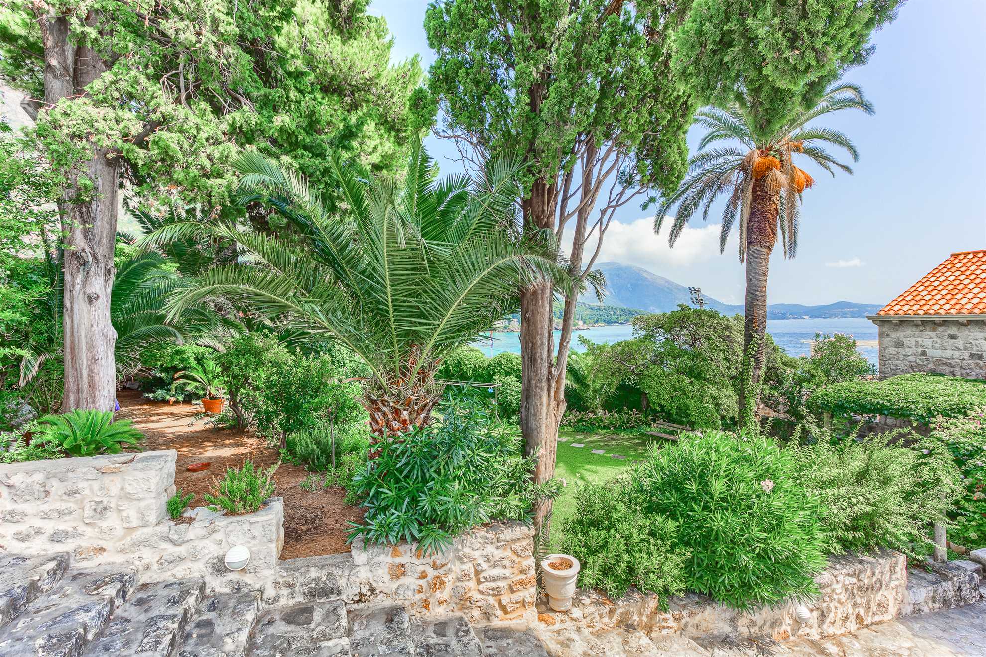 Proclaimed a cultural monument this stunning Mediterranean villa in a superb location dates back to the second half of the 16th century. With only steps away from the beach and just 8km south of Dubrovnik guests can enjoy the best of Dalmatia. Villa Grace showcases authentic stone architecture, timeless interior design, charming features and welcome amenities. Bright and specious interior features clean white walls and tile floors, French doors, mid-century quality furnishings and regional wall art. Fully equipped kitchen is available for your convenience. Sea views are available from every bedroom with mountains in the background adding to this already brilliant contrast. The private garden of over 1200 m² displays immaculate green lawn, palm, cypress, olive, orange and lemon trees, and seasonal flowers plus seating areas under the grapevines overlooking the bay. Secluded outdoor pool with plenty of sun loungers is at your disposal as well as a tucked in traditional built-in barbecue with a shaded alfresco dining area.