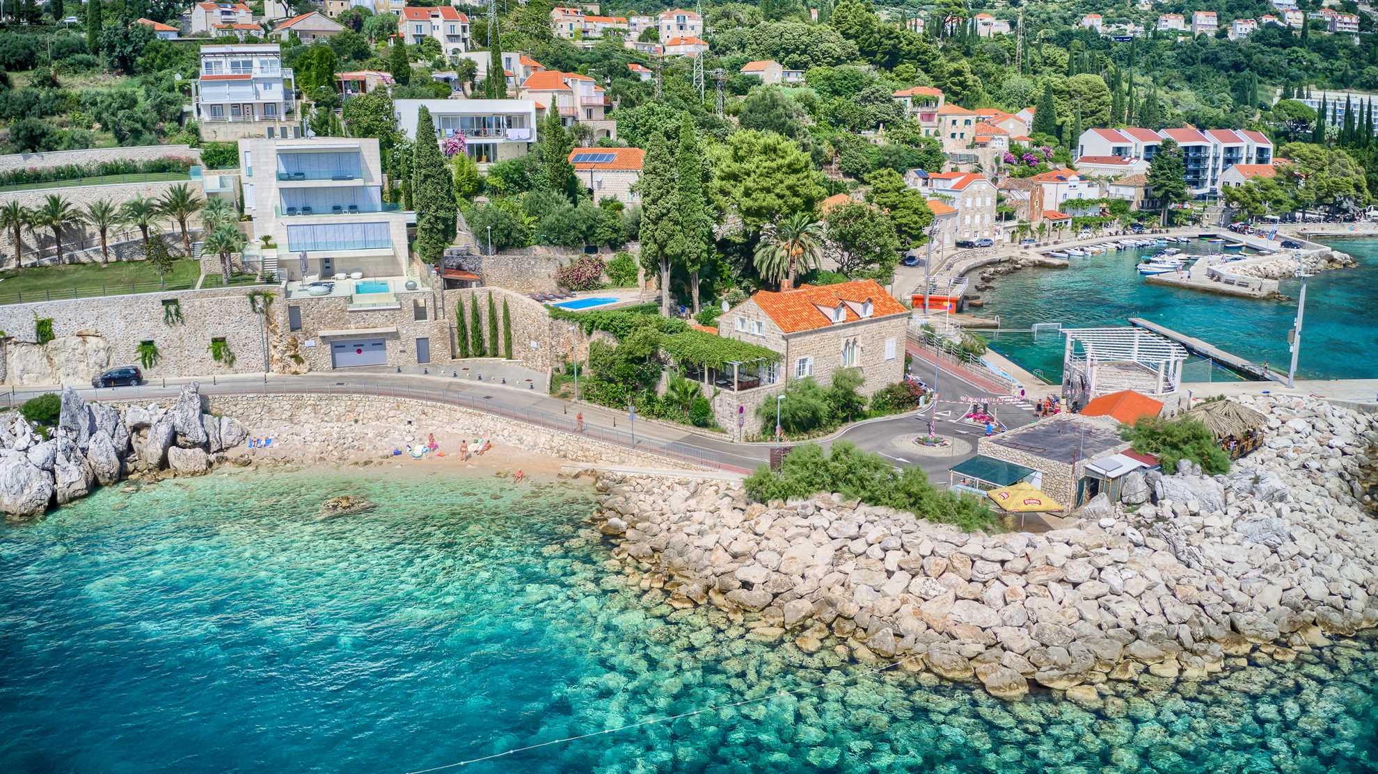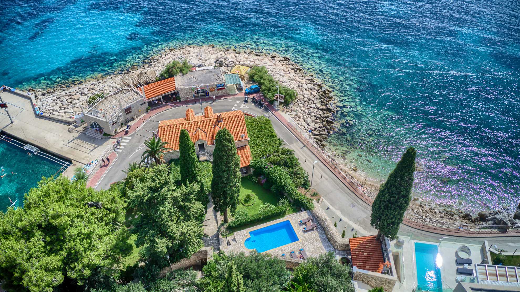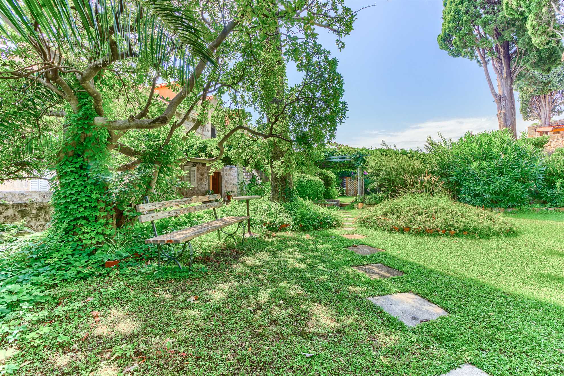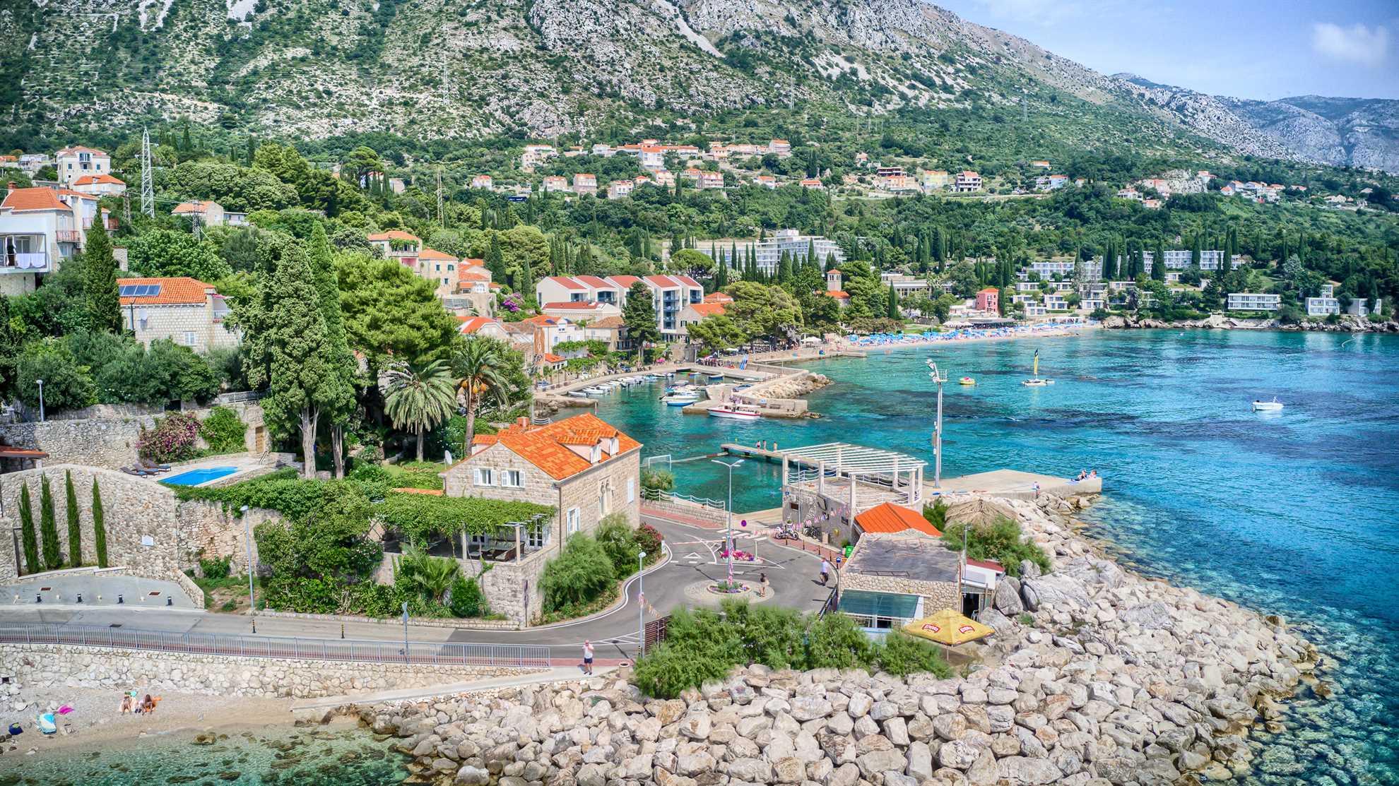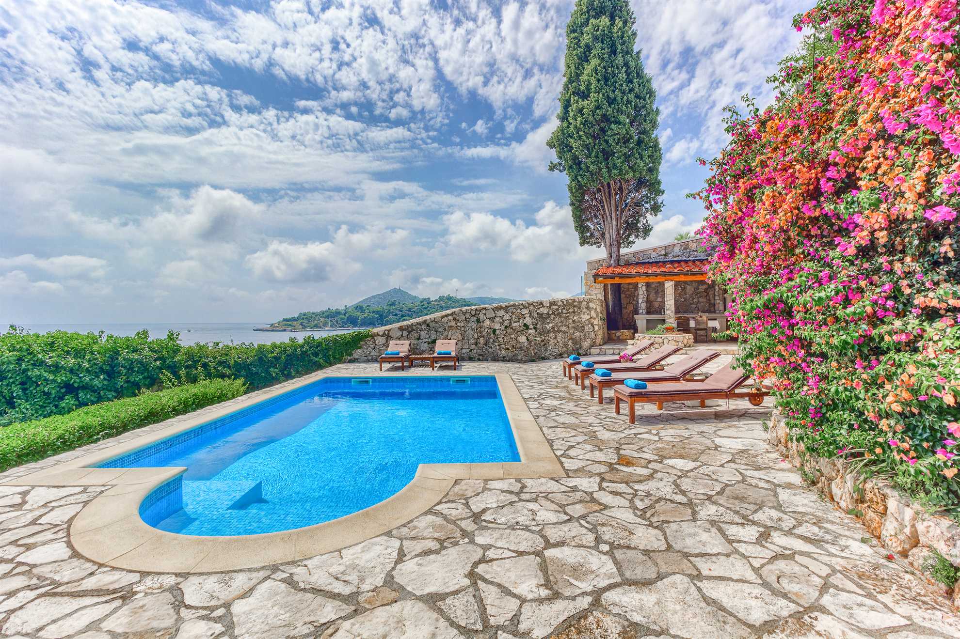 Proclaimed a cultural monument this stunning Mediterranean villa in a superb location dates back to the second half of the 16th century. With only steps away from the beach and just 8km south of Dubrovnik guests can enjoy the best of Dalmatia. Villa Grace showcases authentic stone architecture, timeless interior design, charming features and welcome amenities. Bright and specious interior features clean white walls and tile floors, French doors, mid-century quality furnishings and regional wall art. Fully equipped kitchen is available for your convenience. Sea views are available from every bedroom with mountains in the background adding to this already brilliant contrast. The private garden of over 1200 m² displays immaculate green lawn, palm, cypress, olive, orange and lemon trees, and seasonal flowers plus seating areas under the grapevines overlooking the bay. Secluded outdoor pool with plenty of sun loungers is at your disposal as well as a tucked in traditional built-in barbecue with a shaded alfresco dining area.