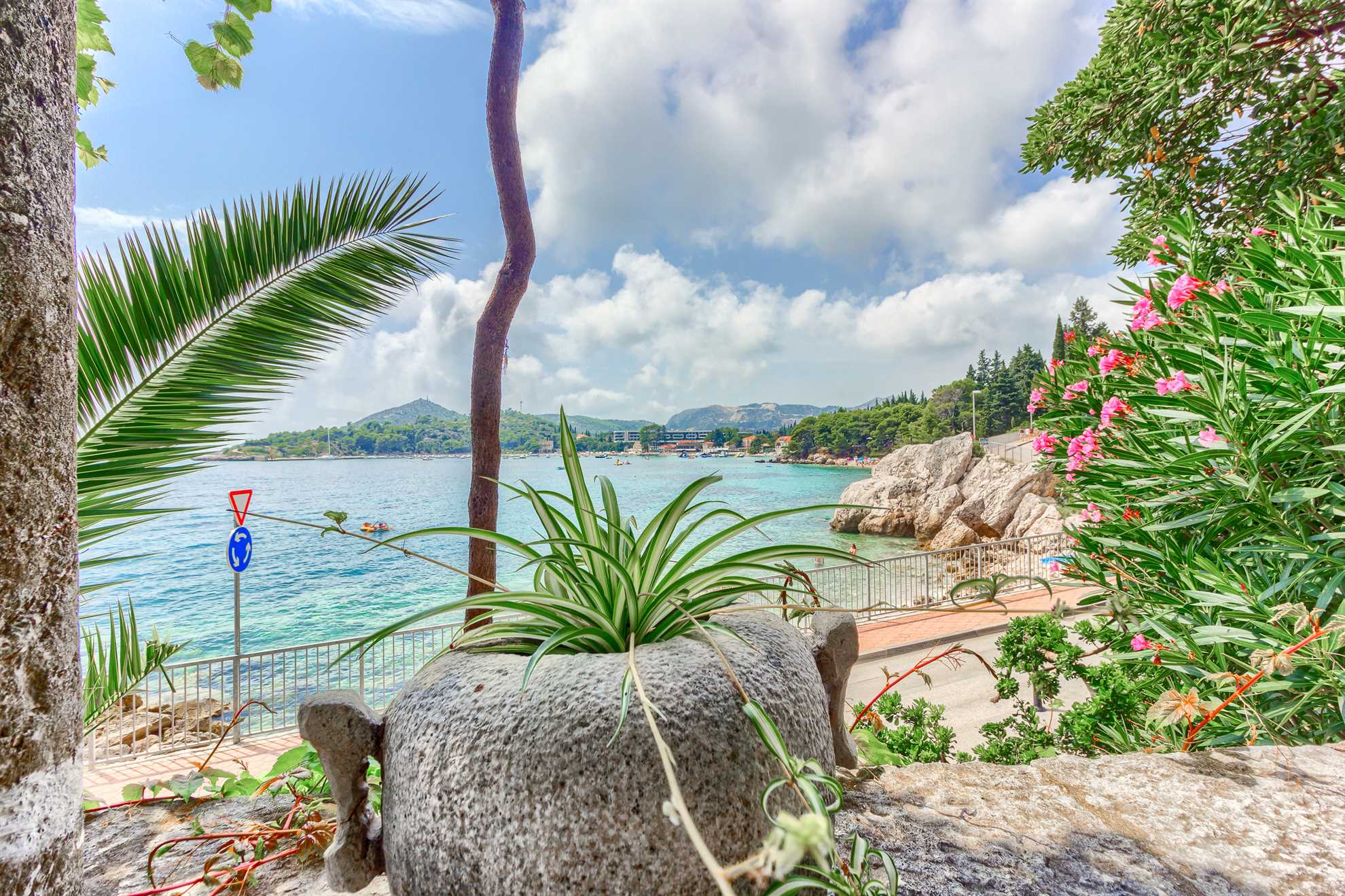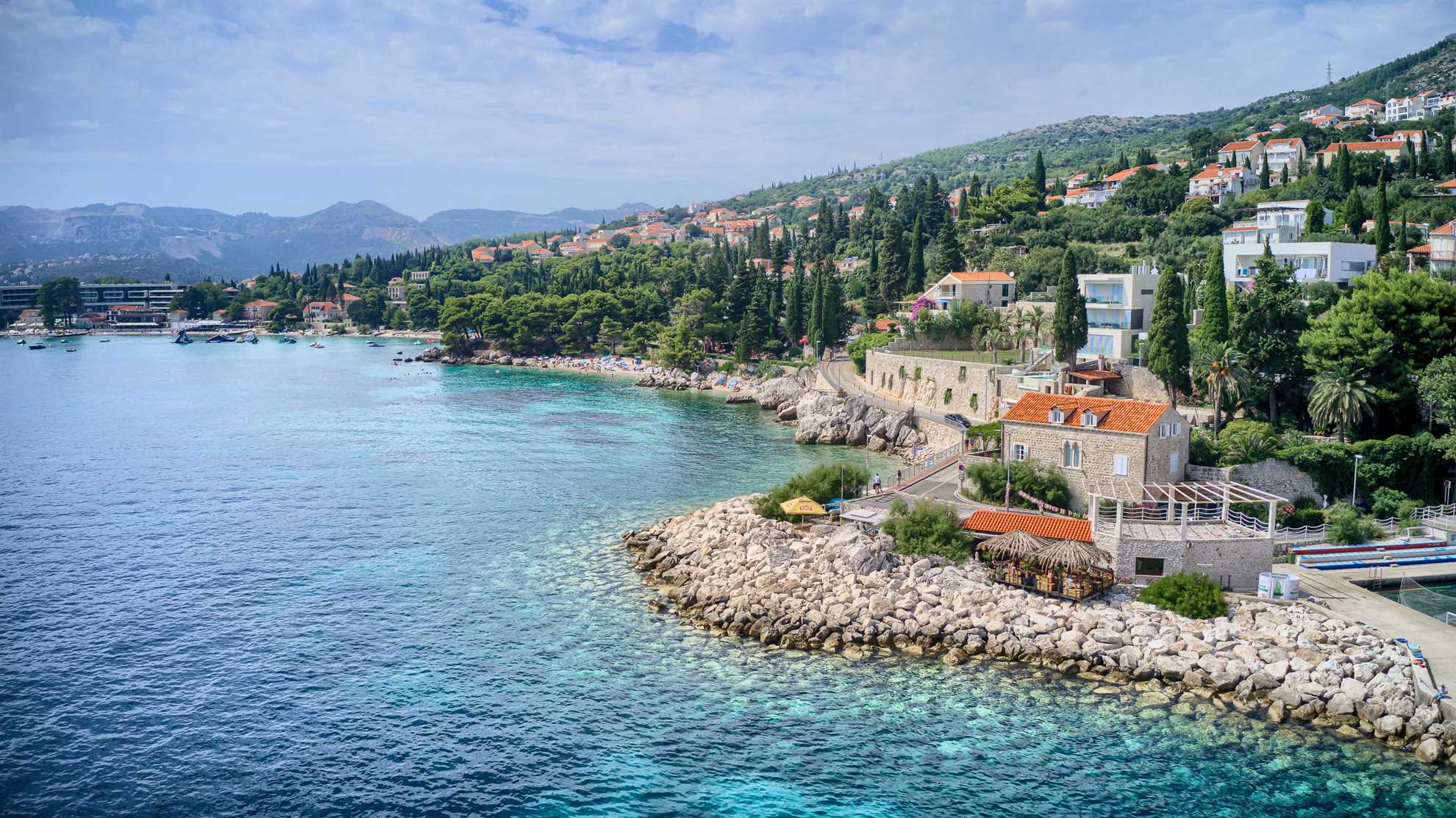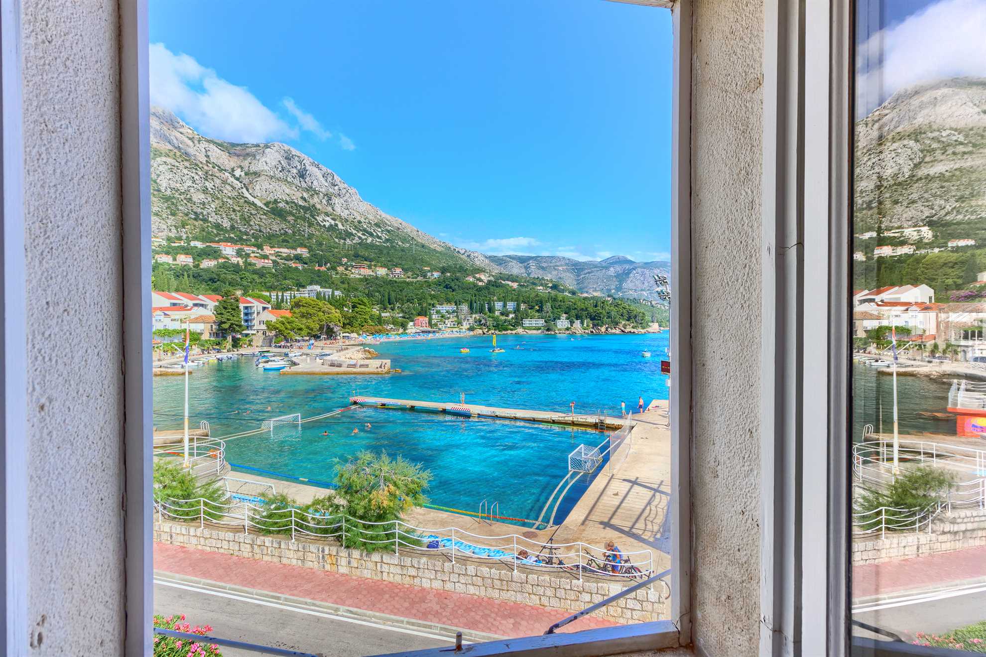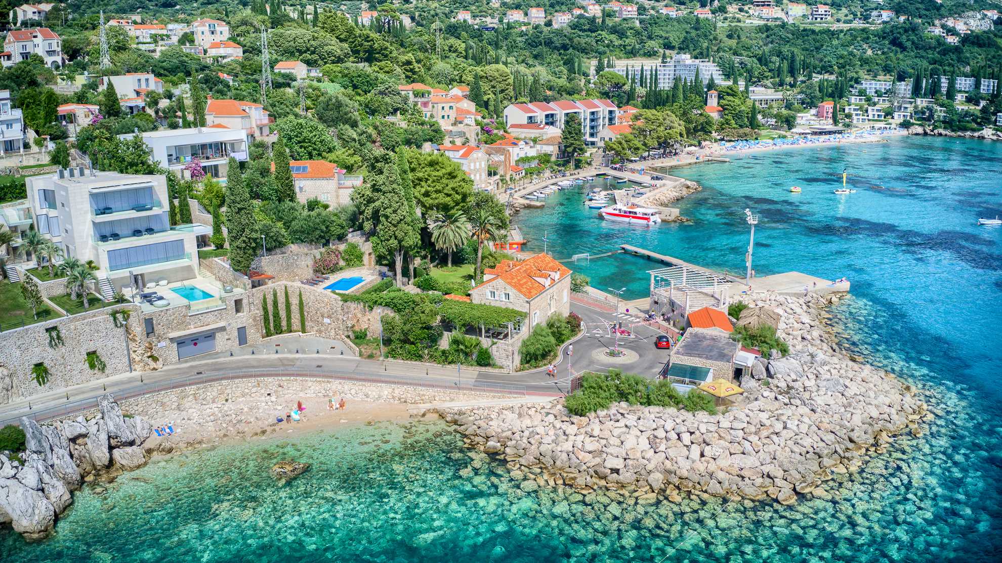 Proclaimed a cultural monument this stunning Mediterranean villa in a superb location dates back to the second half of the 16th century. With only steps away from the beach and just 8km south of Dubrovnik guests can enjoy the best of Dalmatia. Villa Grace showcases authentic stone architecture, timeless interior design, charming features and welcome amenities. Bright and specious interior features clean white walls and tile floors, French doors, mid-century quality furnishings and regional wall art. Fully equipped kitchen is available for your convenience. Sea views are available from every bedroom with mountains in the background adding to this already brilliant contrast. The private garden of over 1200 m² displays immaculate green lawn, palm, cypress, olive, orange and lemon trees, and seasonal flowers plus seating areas under the grapevines overlooking the bay. Secluded outdoor pool with plenty of sun loungers is at your disposal as well as a tucked in traditional built-in barbecue with a shaded alfresco dining area.
