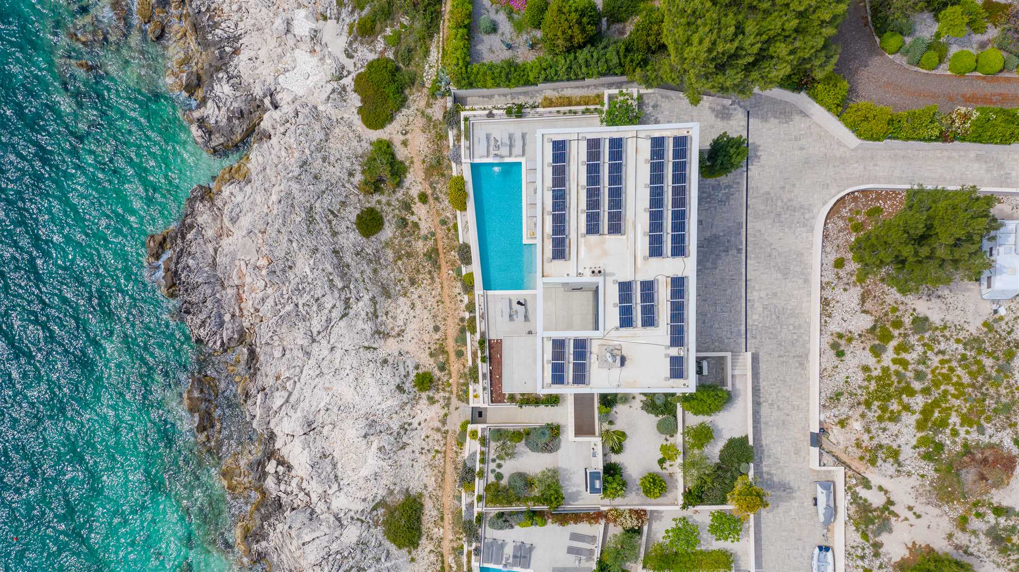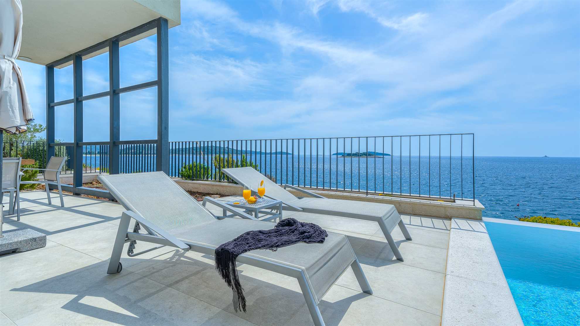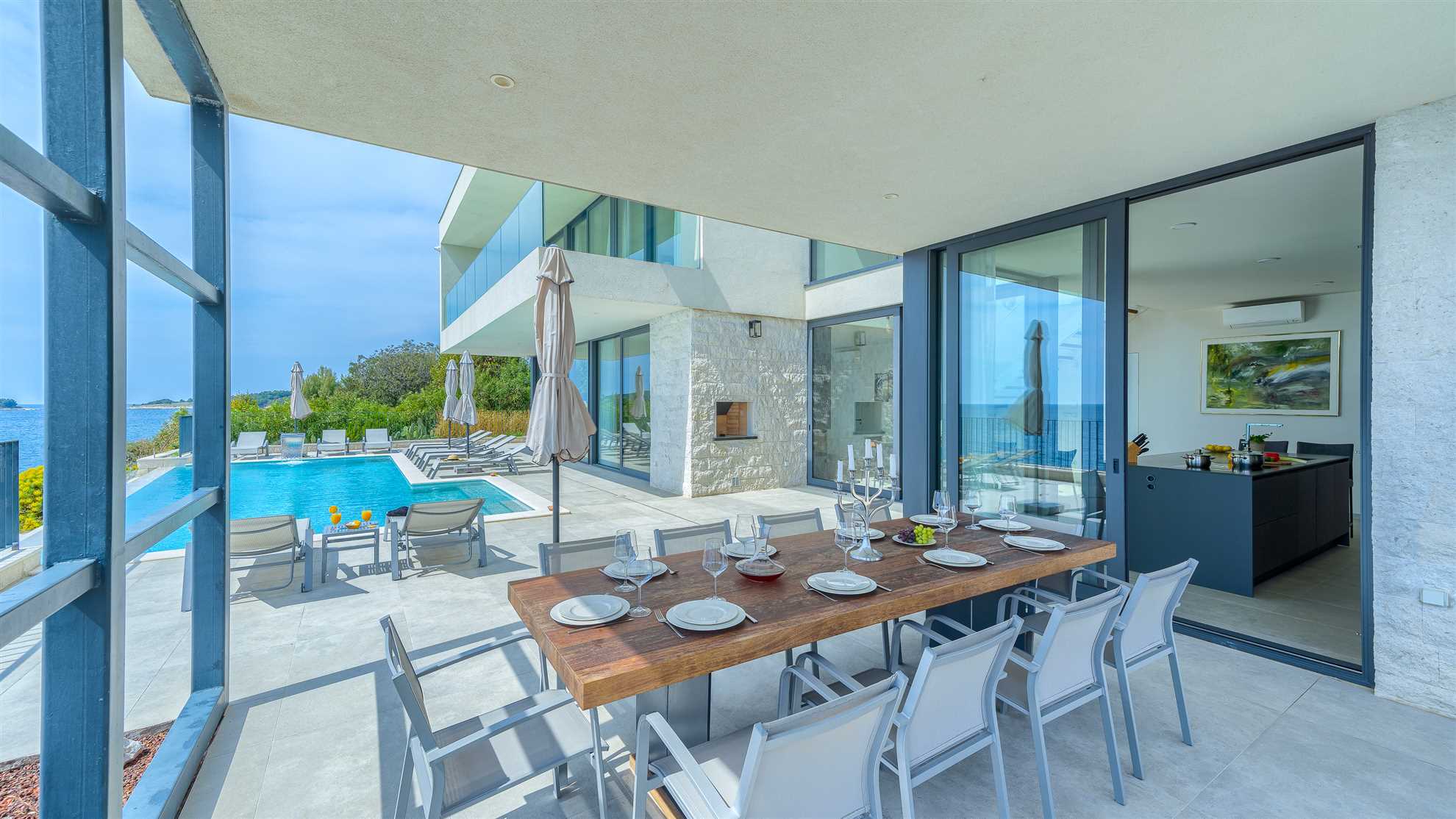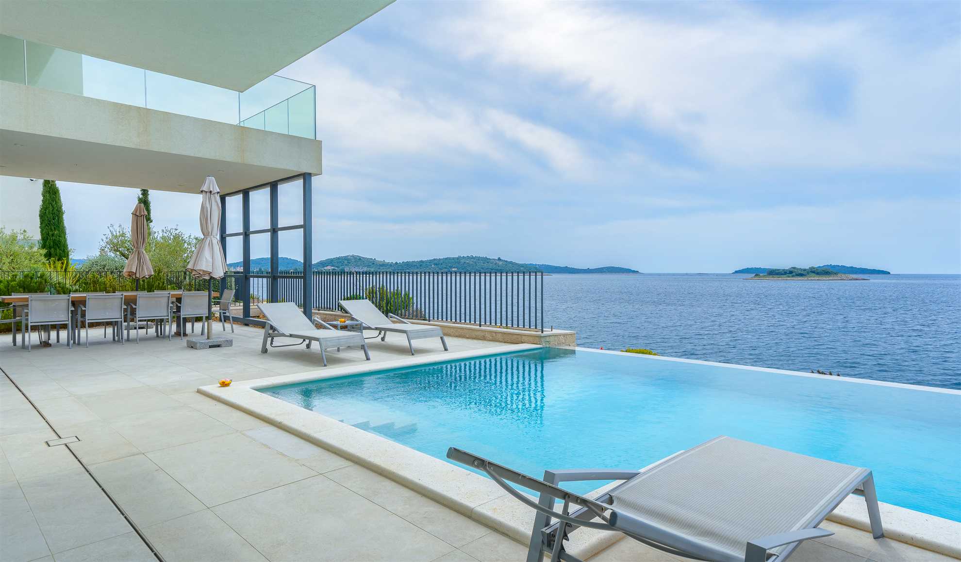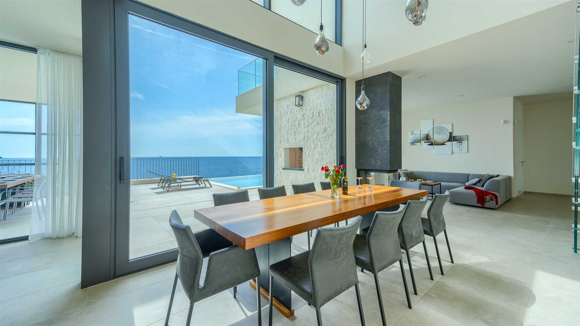 They say that a picture says 1000 words…so we’ll keep it short. Here is an absolutely stunning villa located on the sea itself with a large salt water heated pool, sea views from every which corner of the house, and splendid luxuries spread throughout. Villa Marvella is truly elegant in style with luminous, airy open living spaces, a fireplace, sauna, state of the art kitchen, romantic lighting, large en-suite bedrooms and bathrooms with double sinks and clawfoot standalone tubs - a complete setup for a dream vacation. The gorgeous deck facing the sea offers sun loungers, dining area with a barbecue and comfortable seating areas to enjoy the sunsets. Every detail has been carefully thought through for your comfort including the fabrics, the linens and the furnishings. Hospitable hosts are awaiting your arrival. Welcome to the Adriatic.