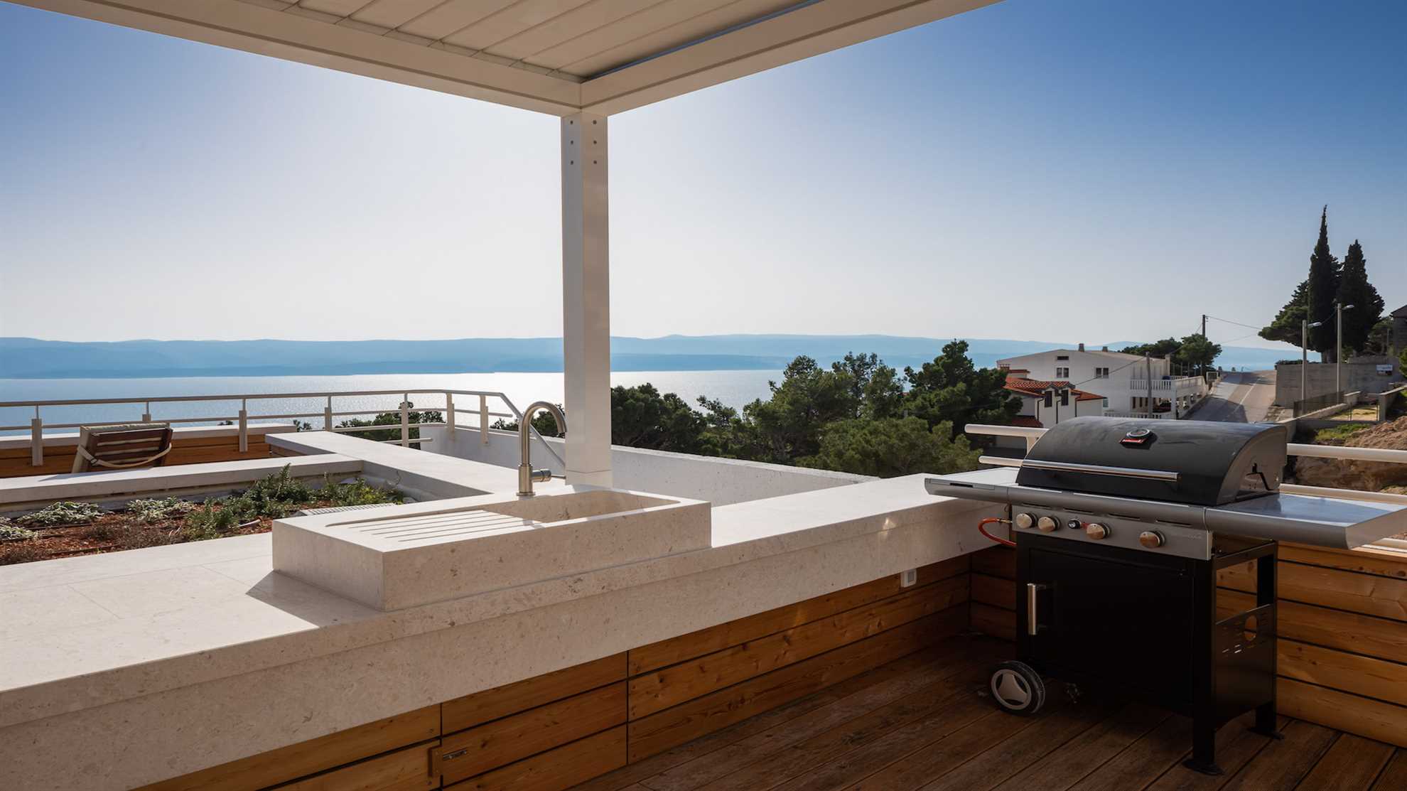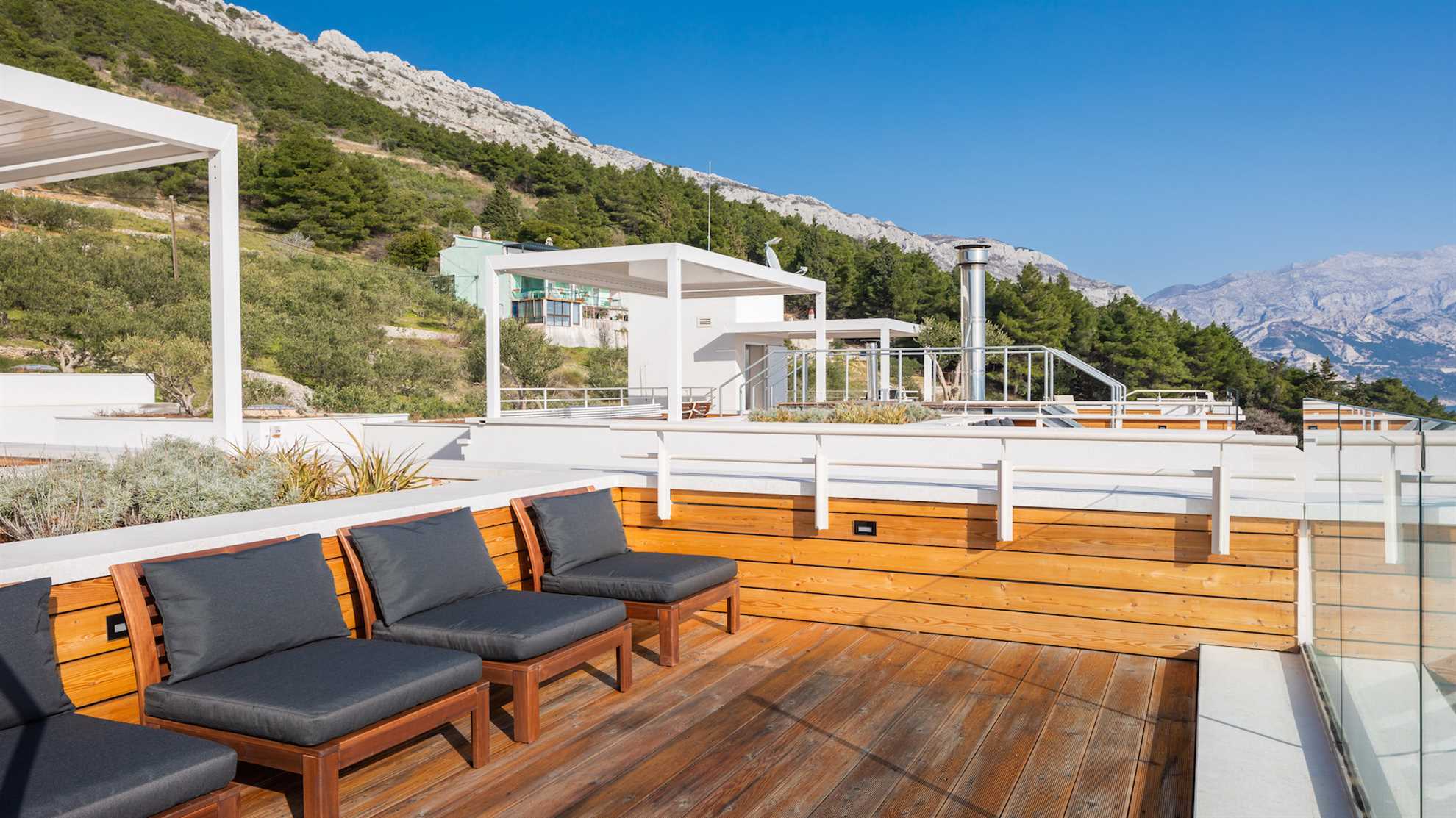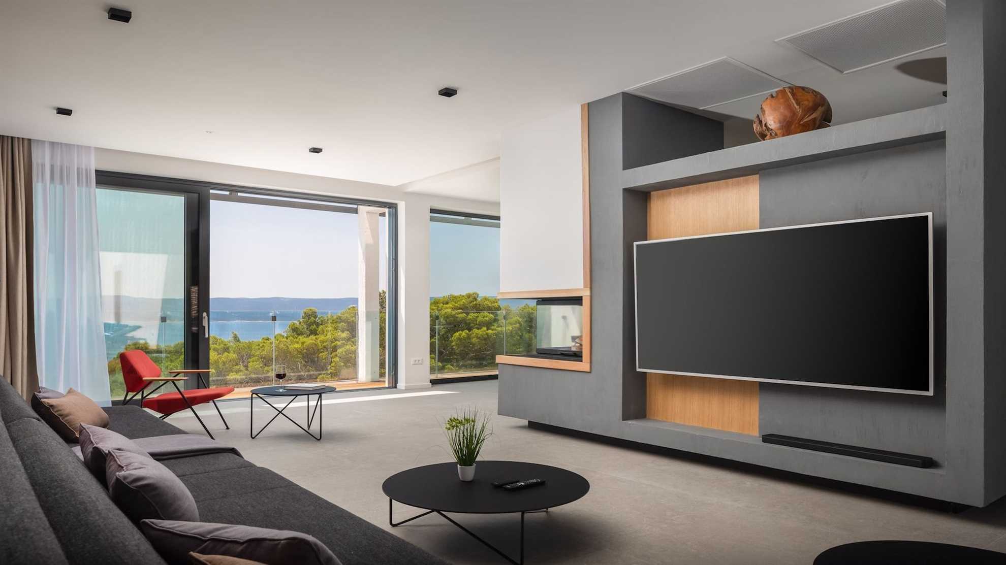 Luxurious villa Safira is equipped with a pool, jacuzzi, gym, a sauna and an amazing roof top terrace yielding impeccable views of the Adriatic. Elegant style, unparalleled comfort, contemporary design, breathtaking views and secluded yet convenient location make this villa one of a kind treasure. Modern architecture, floor to ceiling windows and large open living spaces overlooking the horizon immediately impress while the contemporary luxuries, convenient technology and an open plan fully equipped kitchen make it perfect for entertaining. Enjoy a swim in the pool while admiring both the sea in the front and the stunning mountains in the background, prepare a BBQ at sunset on a roof top terrace or simply enjoy the natural beauty around you. Step onto the treadmill, cycle on the exercise bike or check into the spa and treat yourself to a day of relaxation with a hydromassage jacuzzi, a Finnish sauna and a hammam by the top manufacturer Effegibi. You are in for a treat.