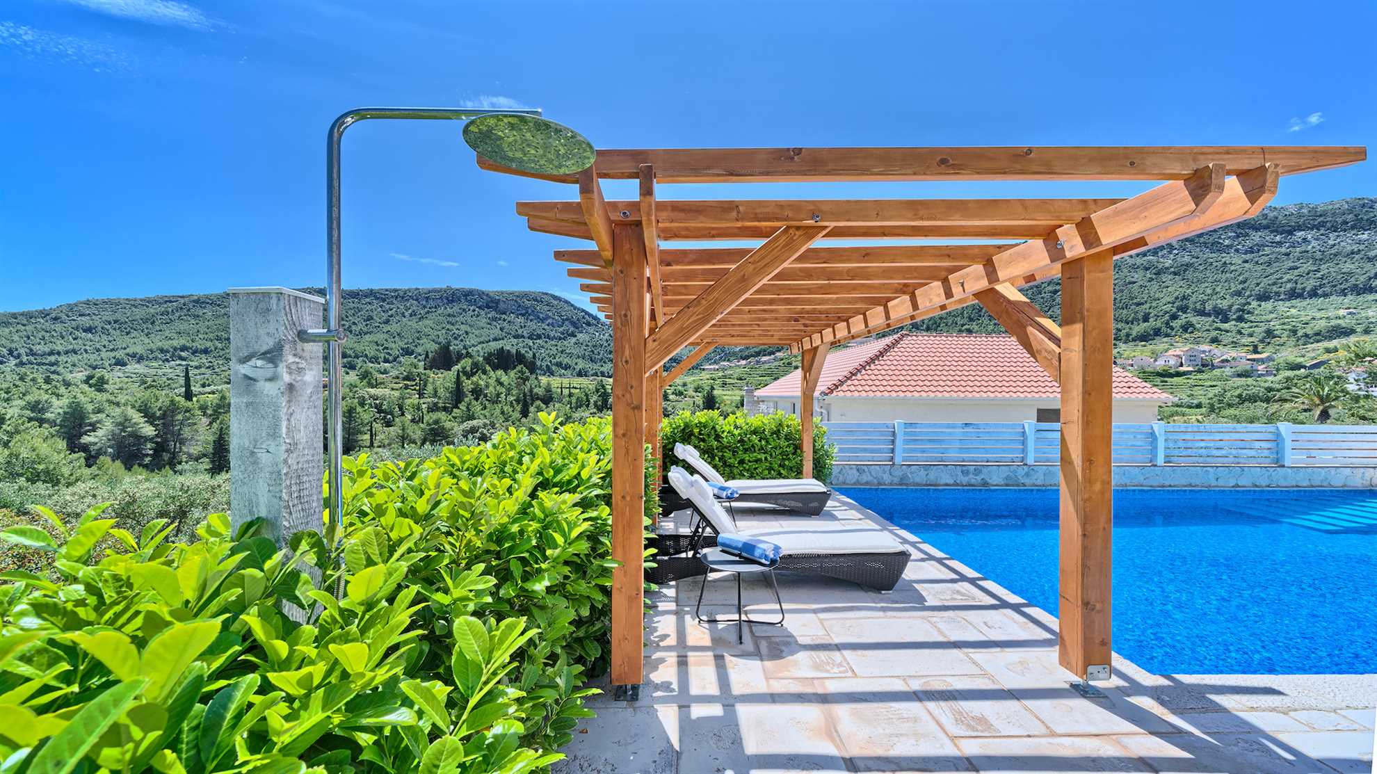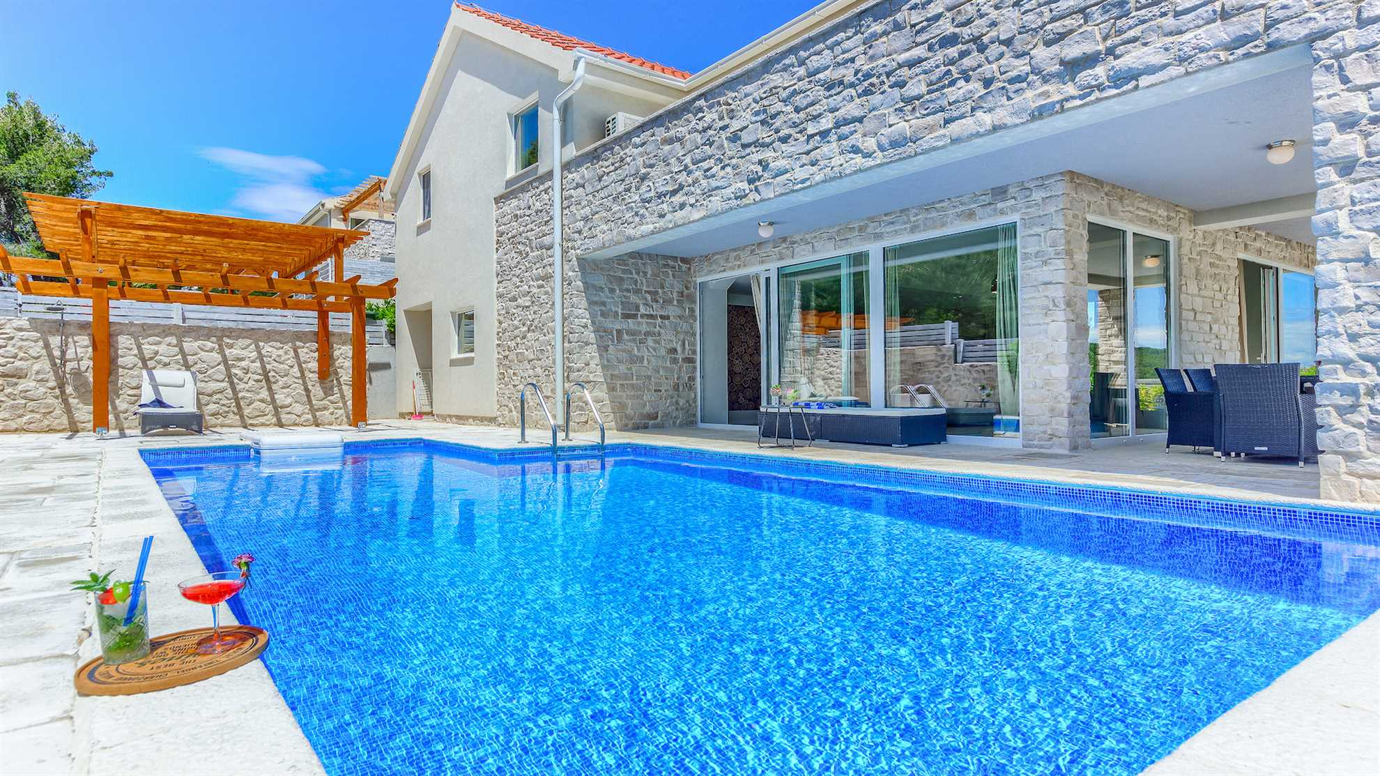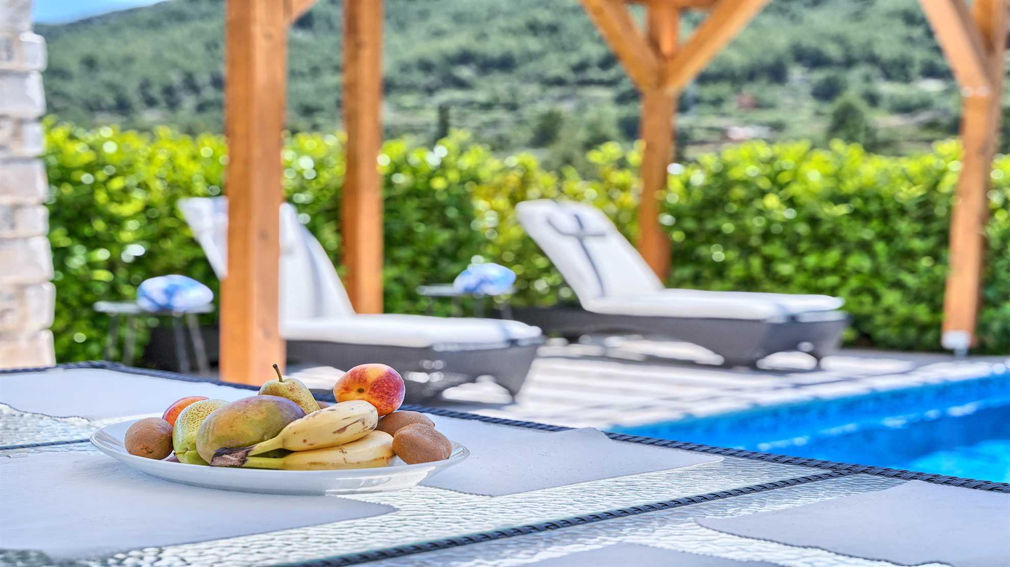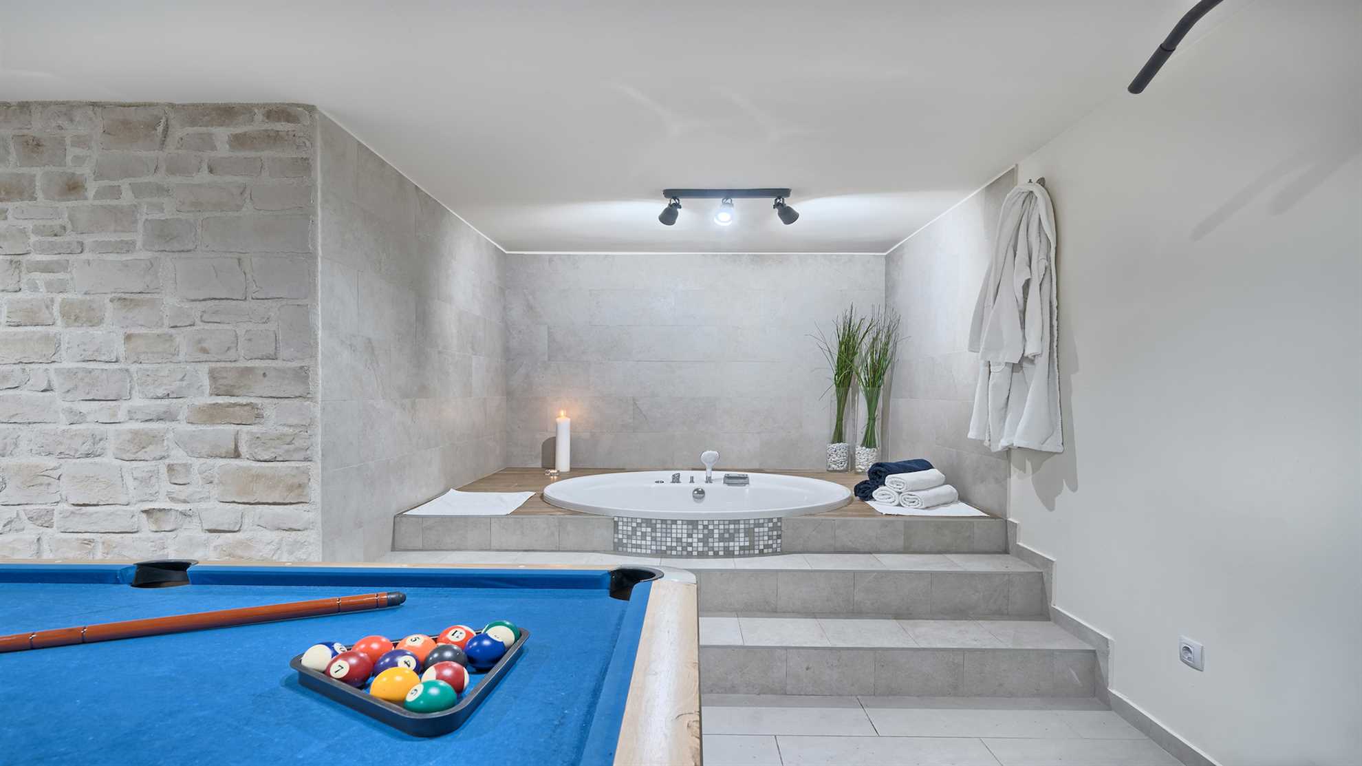 Set on a picturesque island Hvar this breezy holiday destination is fully equipped for a luxurious and carefree holiday for large groups or 2+ bigger families. Spread over 540 m² Villa Anandas consists of two secluded sister villas located right next to each other. Each villa graciously offers specious ensuite bedrooms on the upper floors, open plan ground floors yielding living areas with designer corner sofas and fireplaces, fully equipped kitchens and dining tables. With floor to ceiling windows gorgeous views of the surrounding area can be enjoyed from all the rooms. At your disposal are two outdoor pools (one of which is heated), saunas, Jacuzzis, built in authentic barbecues with oversized alfresco dining tables as well as covered seating lounges perfect for enjoying lovely summer evenings. Privileged with peace and tranquility of its surroundings yet in close proximity to the beach as well as excellent eateries available in the area all the essentials for a perfect holiday are within your reach.