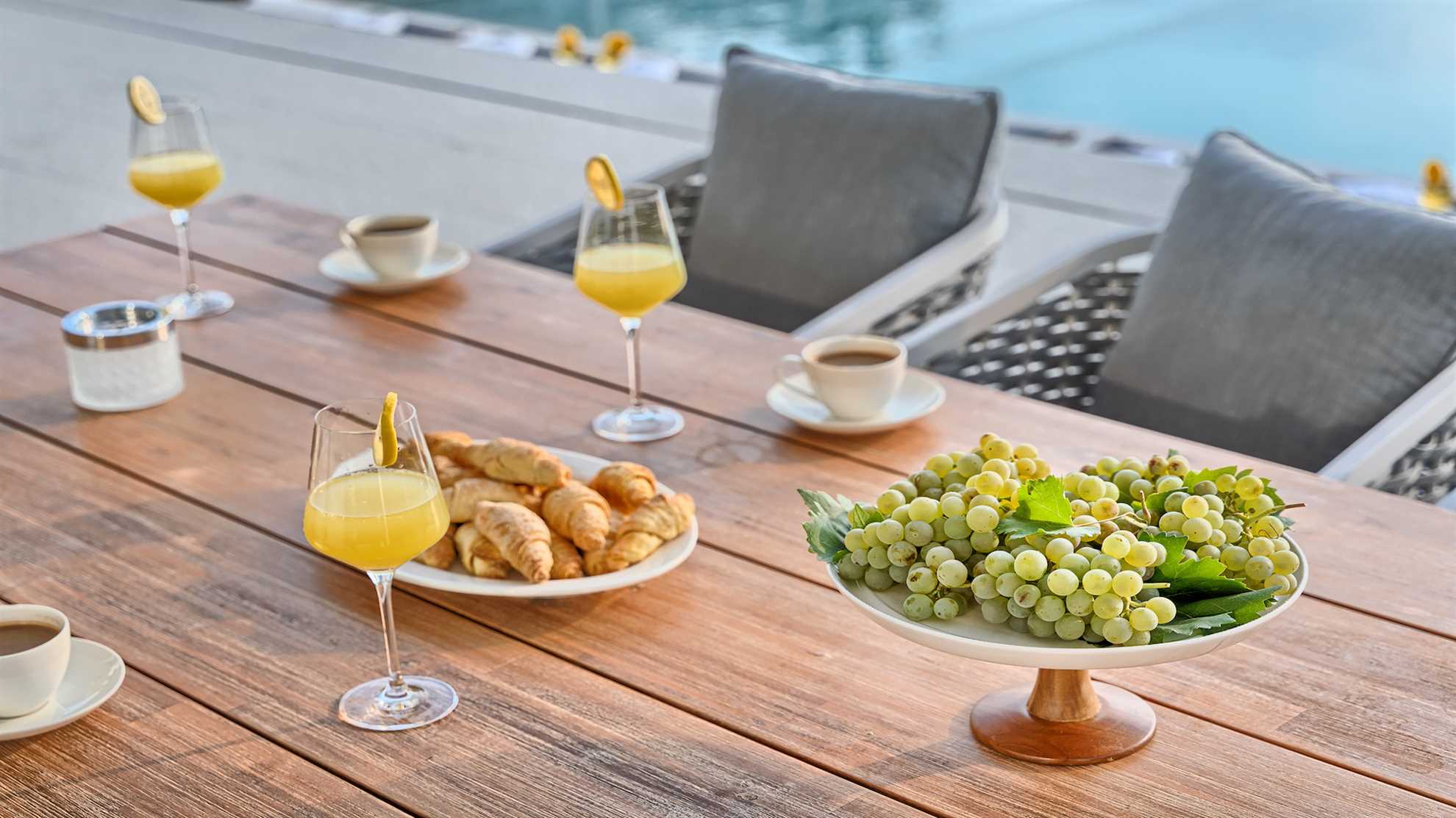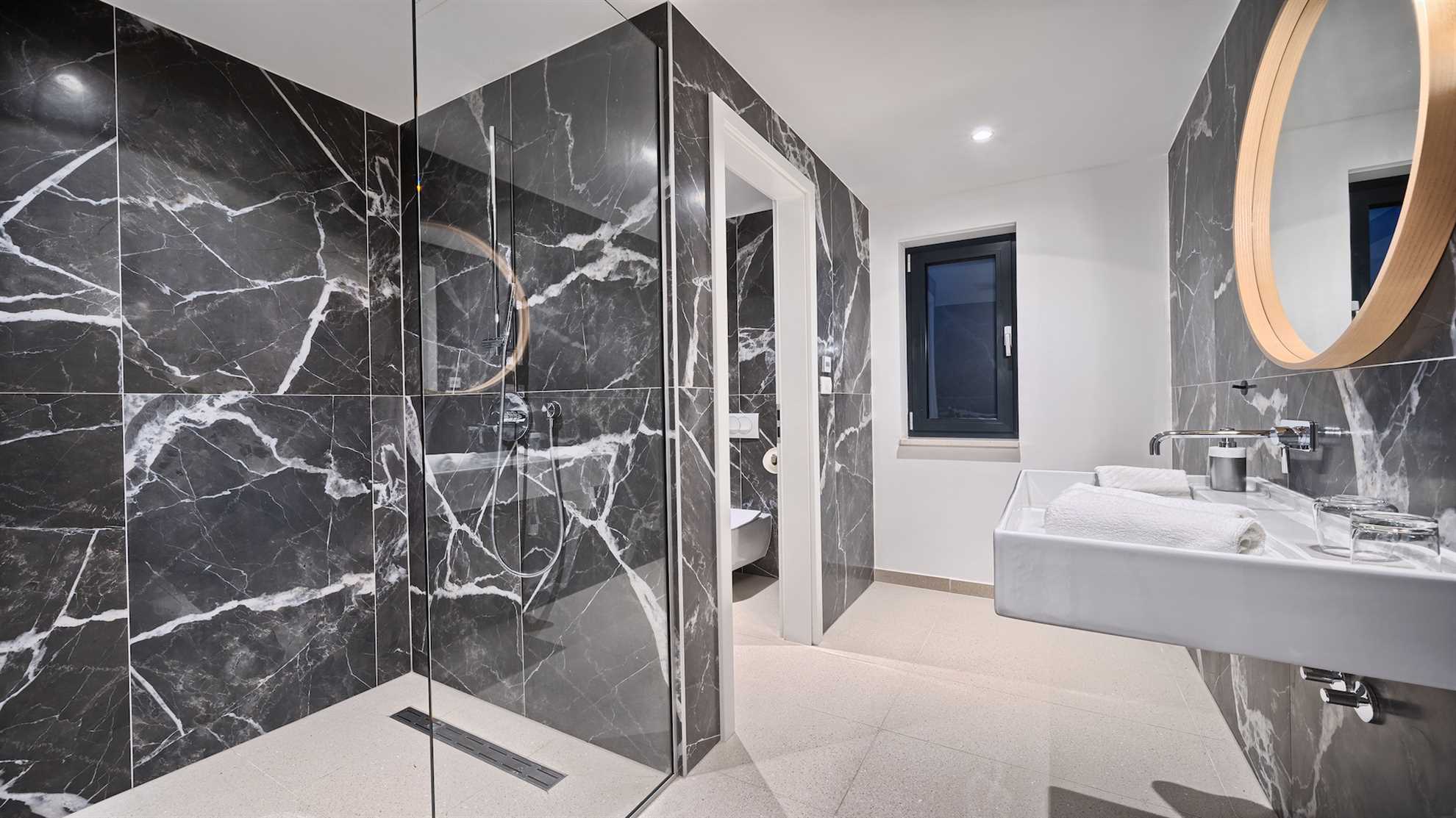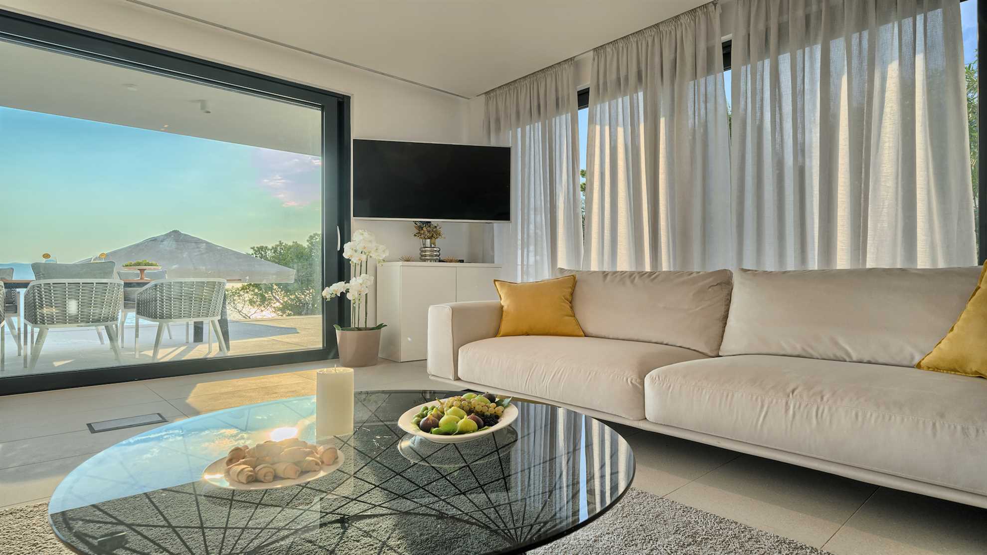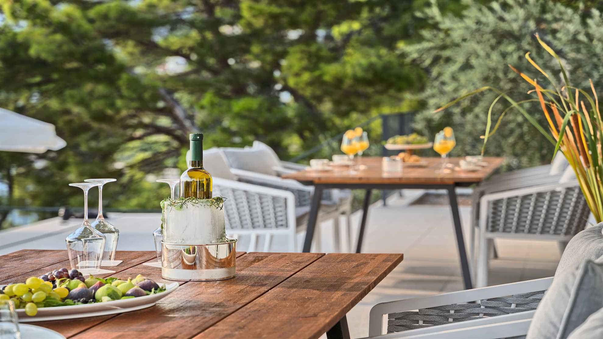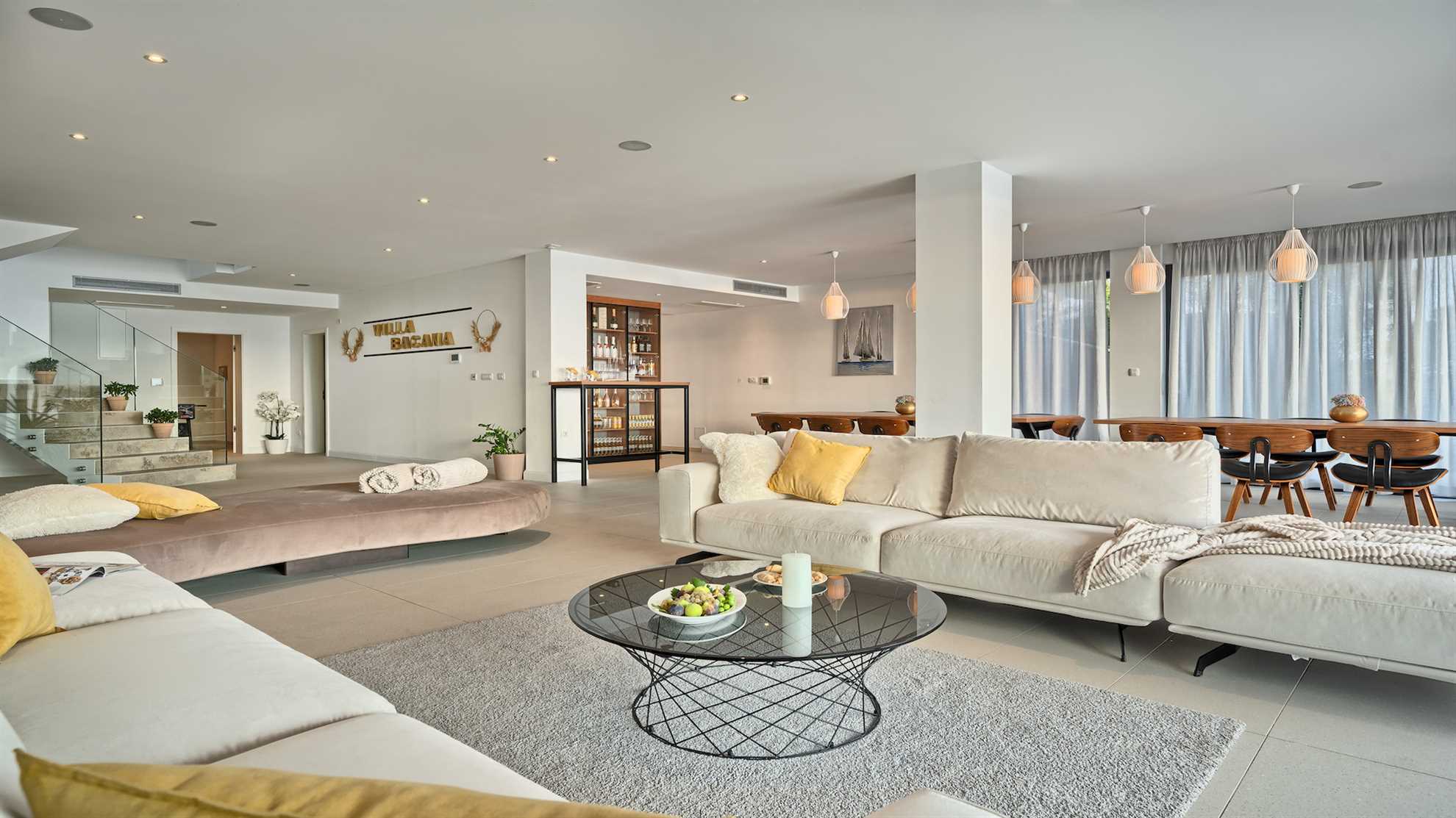 With striking mountains in your back garden, the dazzling sea at your doorstep, ultramodern facilities, rare ability to accommodate larger groups and no luxury, big or small, spared, Villa Platinum is in its own league. 650 m2 occupy the four story villa, each level easily reached with an elevator, with a sauna, gym, wine cellar and a jacuzzi at your disposal. The ground level is impressive with bright open living space and floor to ceiling windows allowing spectacular views, equipped with contemporary furnishings, a fireplace, top of the line kitchen facilities and a dining table seating 18, all with an access to a large 300 m2 terrace with a heated pool and sun loungers. The upper levels occupy eight ensuite bedrooms, fitness activities, a game room and access to balconies, ideal for admiring sunsets. Ninth bedroom is part of a separate apartment with its own entrance, a private bathroom, and a living room with a sofa bed making it a perfect choice for those opting for extra privacy.