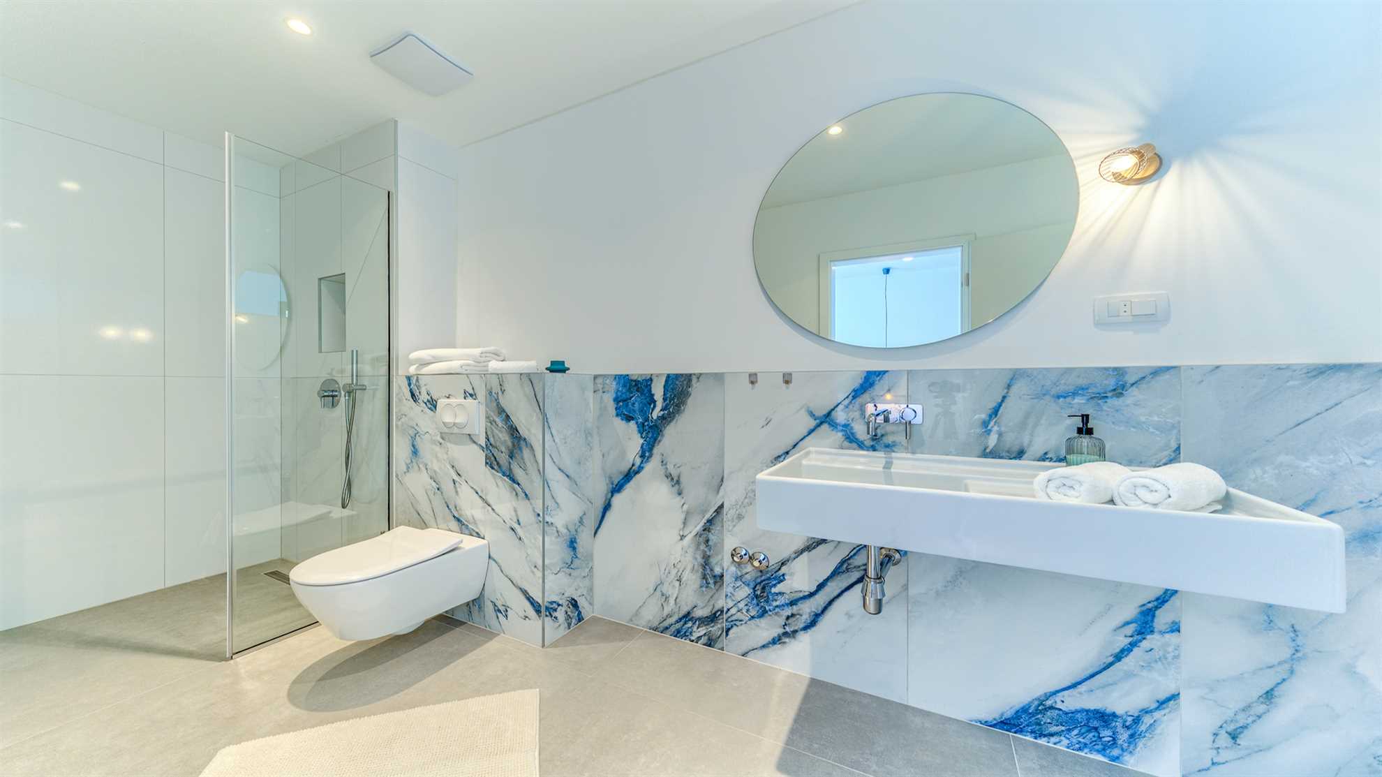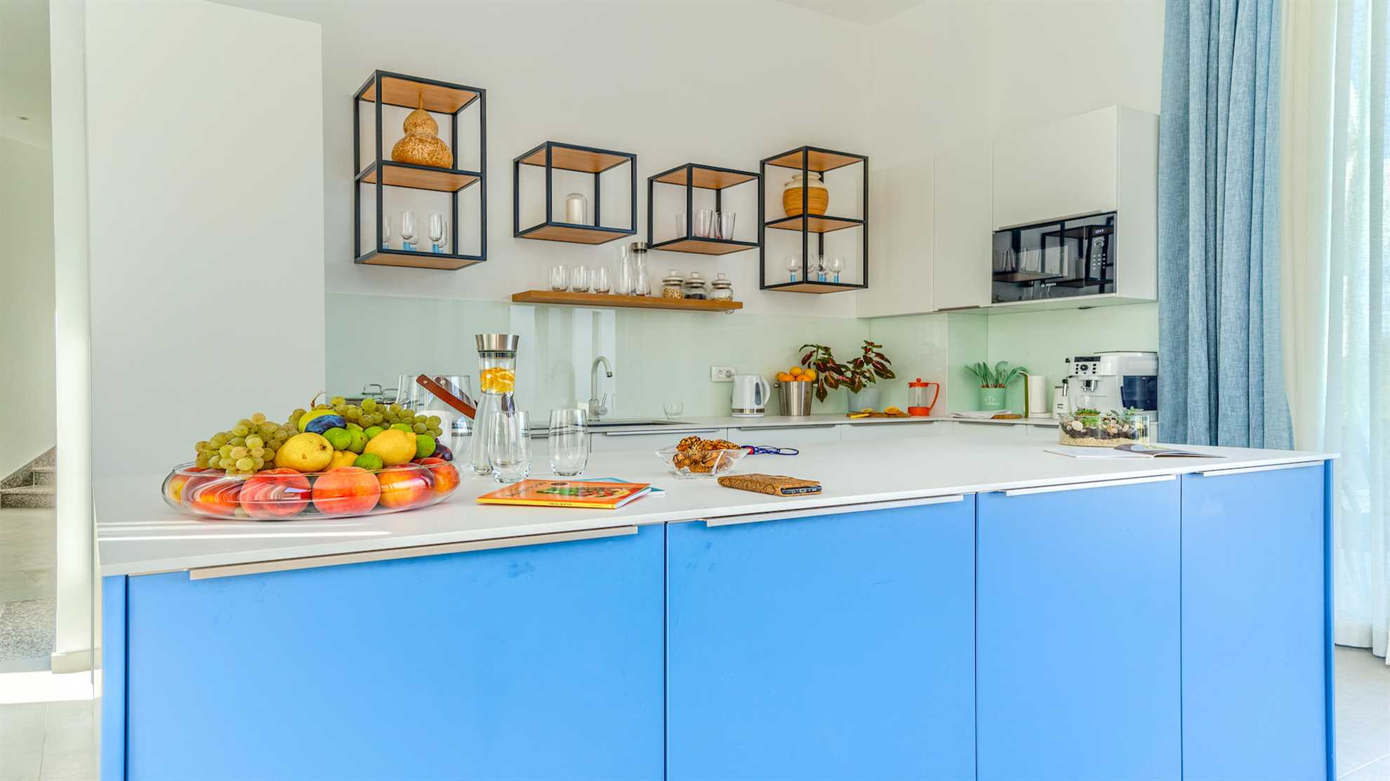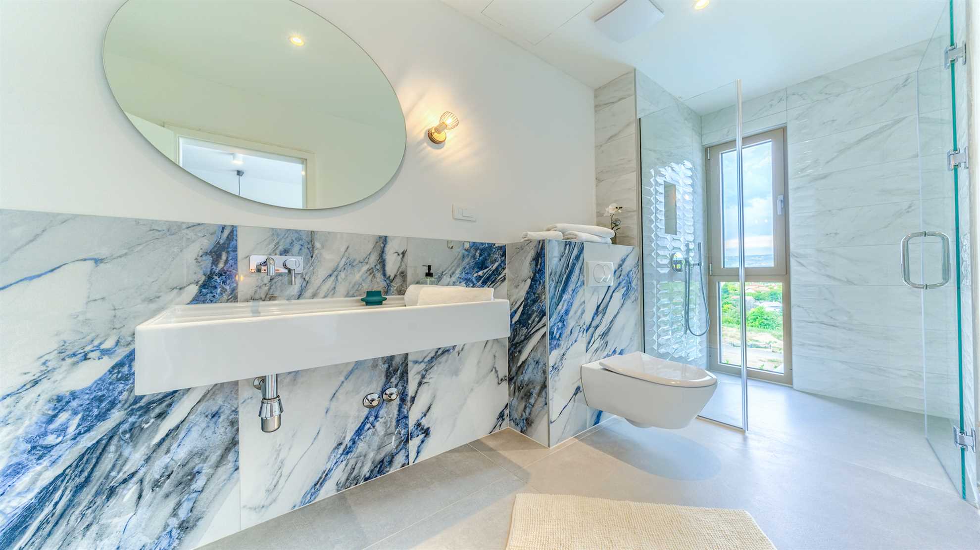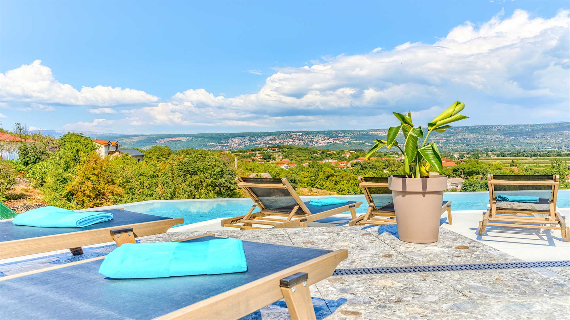 The villa features two wings, each housing en-suite bedrooms. With 5 bedrooms in total, it comfortably accommodates up to ten adult guests, making it an ideal choice for two families or a large group of friends. For larger parties, Sister Villa Daedalus, located next door, is also available and can host an additional 10 guests.