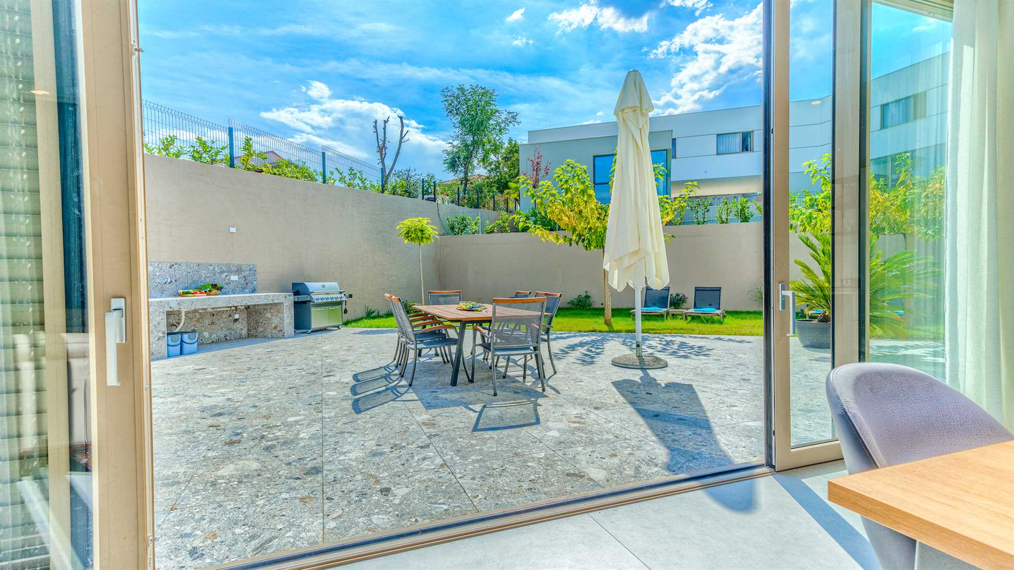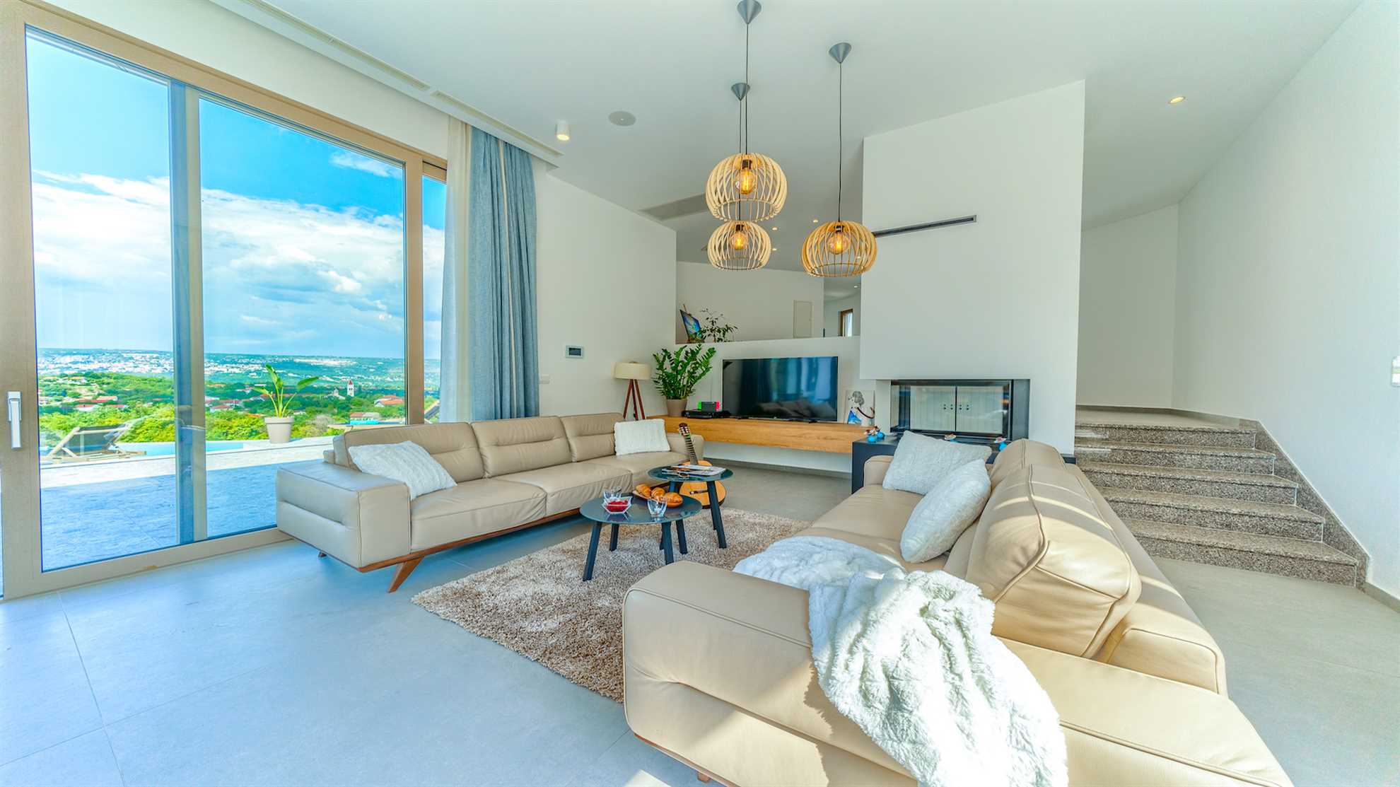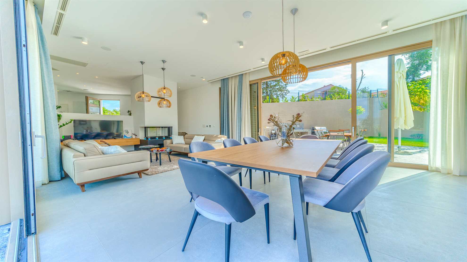 Villa Ikarus is a stunning villa built in 2021, designed to provide an unforgettable getaway with your loved ones. This beautifully crafted home boasts floor-to-ceiling windows, harmonious color schemes, and spacious rooms, all styled with contemporary interior design to create a truly luxurious atmosphere. Beyond its elegant design, the villa offers a wealth of exceptional amenities for a perfect vacation experience. Enjoy access to a 6-hole golf course, a children’s playground, a Jacuzzi, a sauna, a pool table, an exercise room and a shared tennis court (shared only with its sister villa). The large outdoor terrace wraps around a 74 m² heated pool, offering breathtaking panoramic views of the surrounding lush greenery.