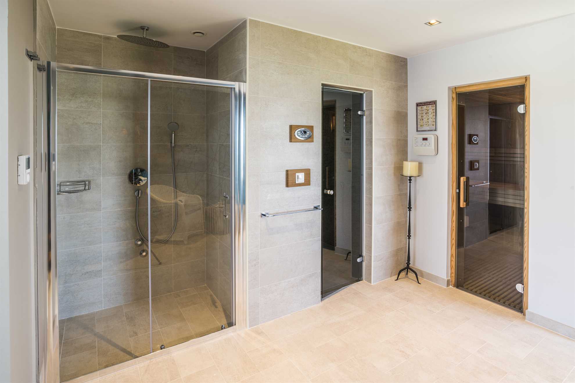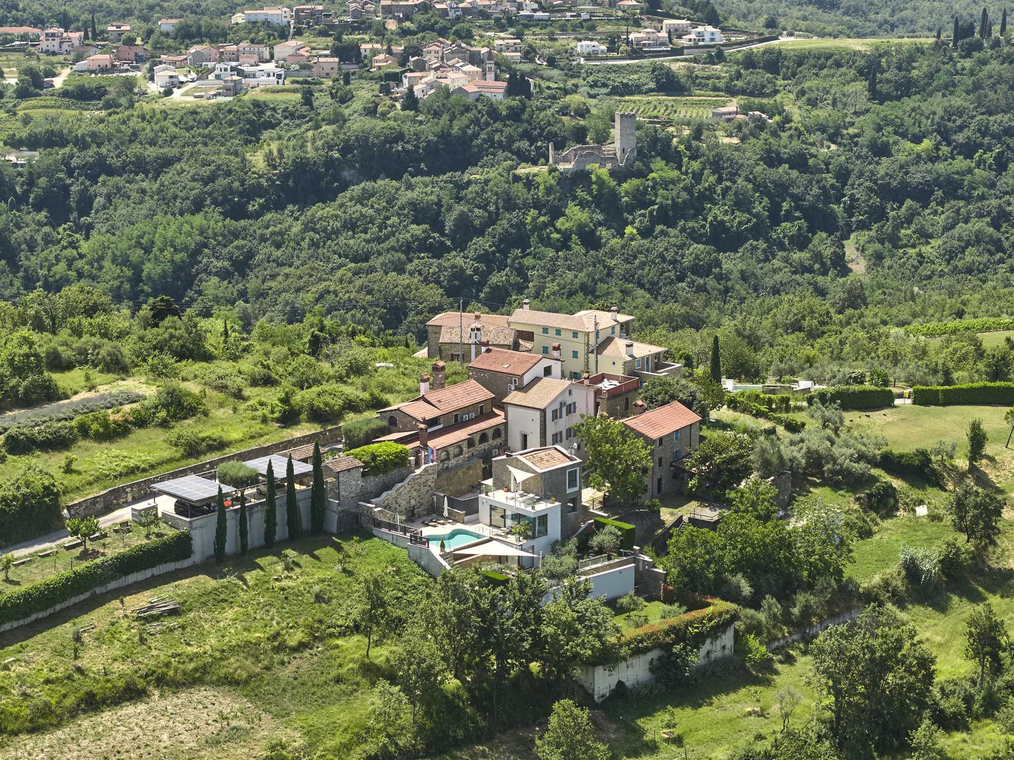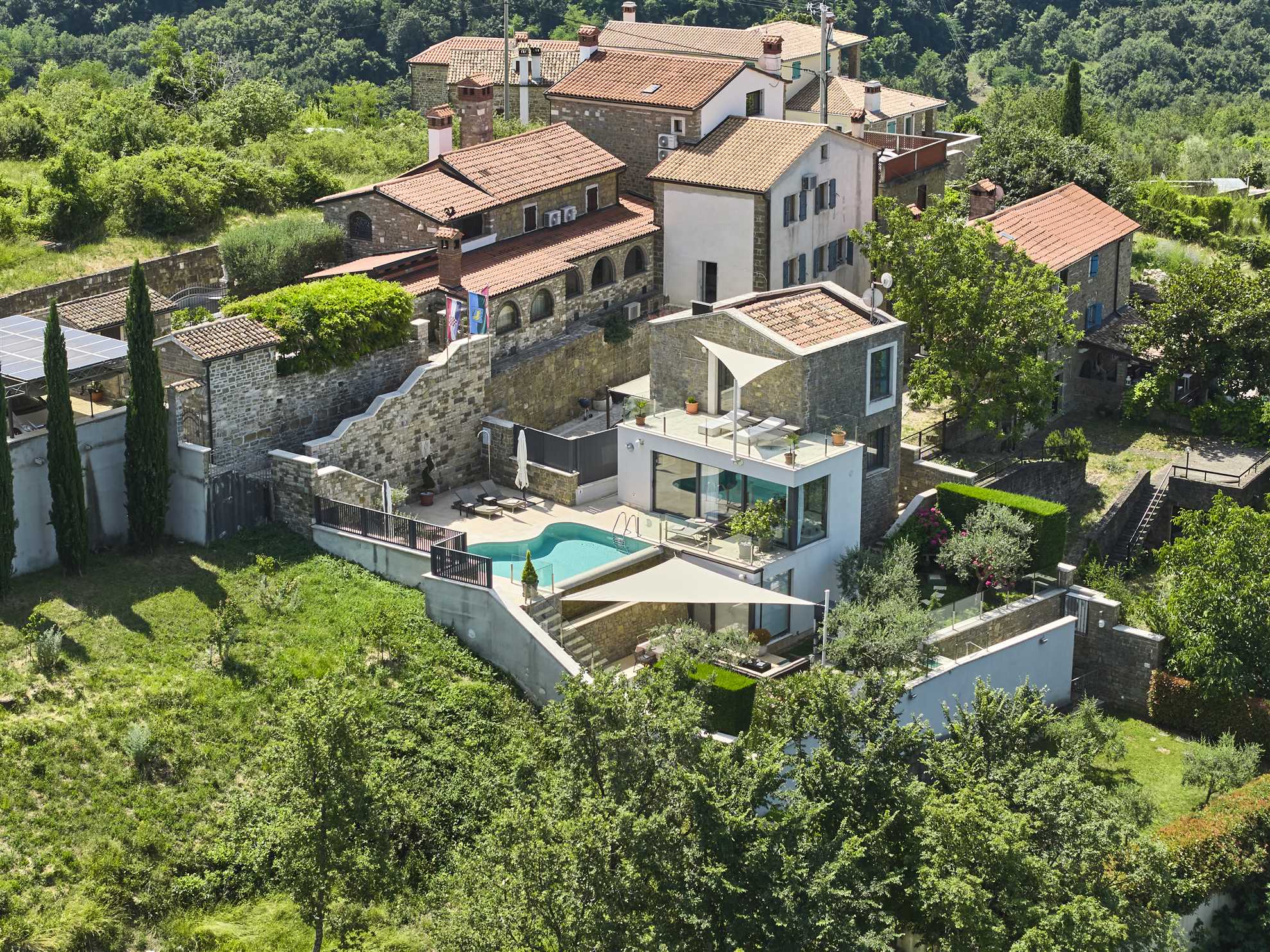 Contemporary villa with exceptional amenities and unique layout equipped for an unforgettable holiday. Perched on a hill it offers delightful views of the landscape. Three living units make it a perfect choice for 2 or more families or a large group of friends as it offers plenty of privacy with separate sleeping areas as well as a unit designated specifically for leisurely activities. No luxury is spared on design which is equally modern, warm, inviting, timeless and cozy, with exposed wood beams, parquet floors, exposed stone walls, authentic fireplace, charming light fixtures and specious bedrooms. One unit consists of a traditional “tavern” with a dining room for eight, and two bedrooms, one on each floor, each with a private bathroom and a lounge area. Second unit offers a fully equipped kitchen, dining area, living room with a fireplace and two bedrooms, one on each floor, each with a private bathroom. The third, fun equipped unit, completes the luxury villa with a wellness area featuring a jacuzzi, sauna, a separate shower, another fully equipped kitchen with access to a terrace with an alfresco dining table and BBQ facilities, and the entertainment room with a pool table and table football. Air conditioning is available throughout. Welcome to Villa Fortezza.