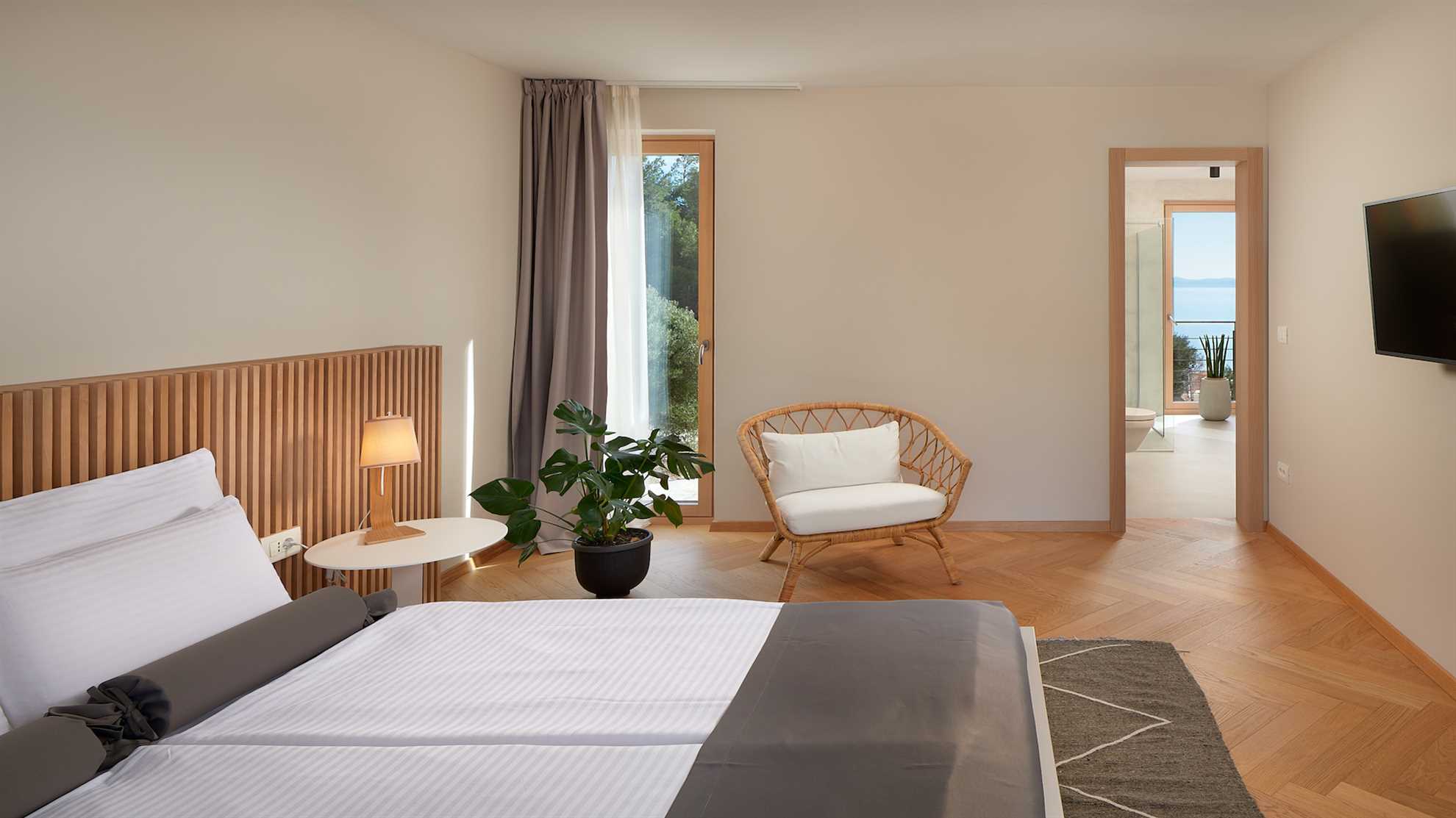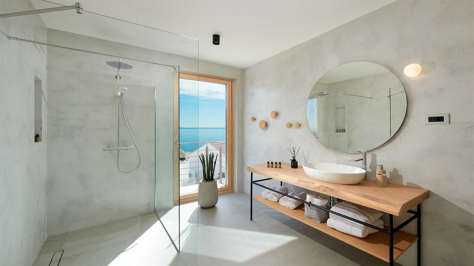 Elegant inside and out Villa Adria Gloss is located on sunny south side of Island Hvar in Sveta Nedilja. Elevated on a hillside it offers stunning views of the blue Adriatic and the wild green landscape that surrounds it. Two levels occupy 240 m² of living space with a fully equipped contemporary kitchen, a dining area and a sofa lounge with a flatscreen TV and a fireplace, all with access to the pool deck. Three specious and beautifully designed full bathrooms with gorgeous wood detail are at your disposal, as well as an extra separate toilet. Each bedroom has access to its own terrace. Interior design is a combination of natural tones, raw material, clean cut lines, parquet floors and natural wood detail suggesting a cozy, yet contemporary feel. Outdoor terrace leads to a 30 m² pool, sun loungers and a covered alfresco dining area with barbecue facilities making outdoor dining with a view an everyday treat.