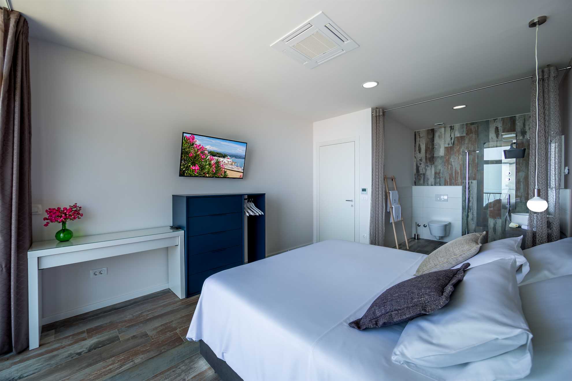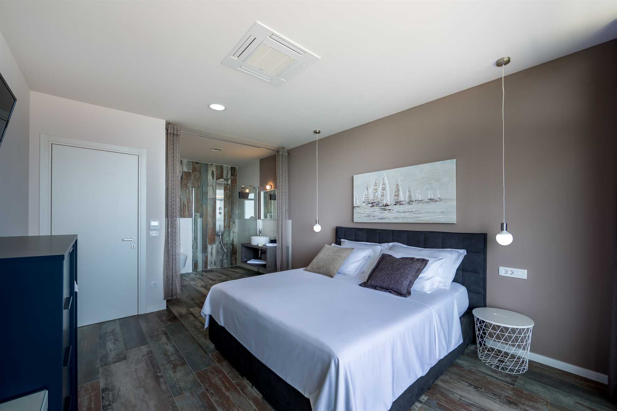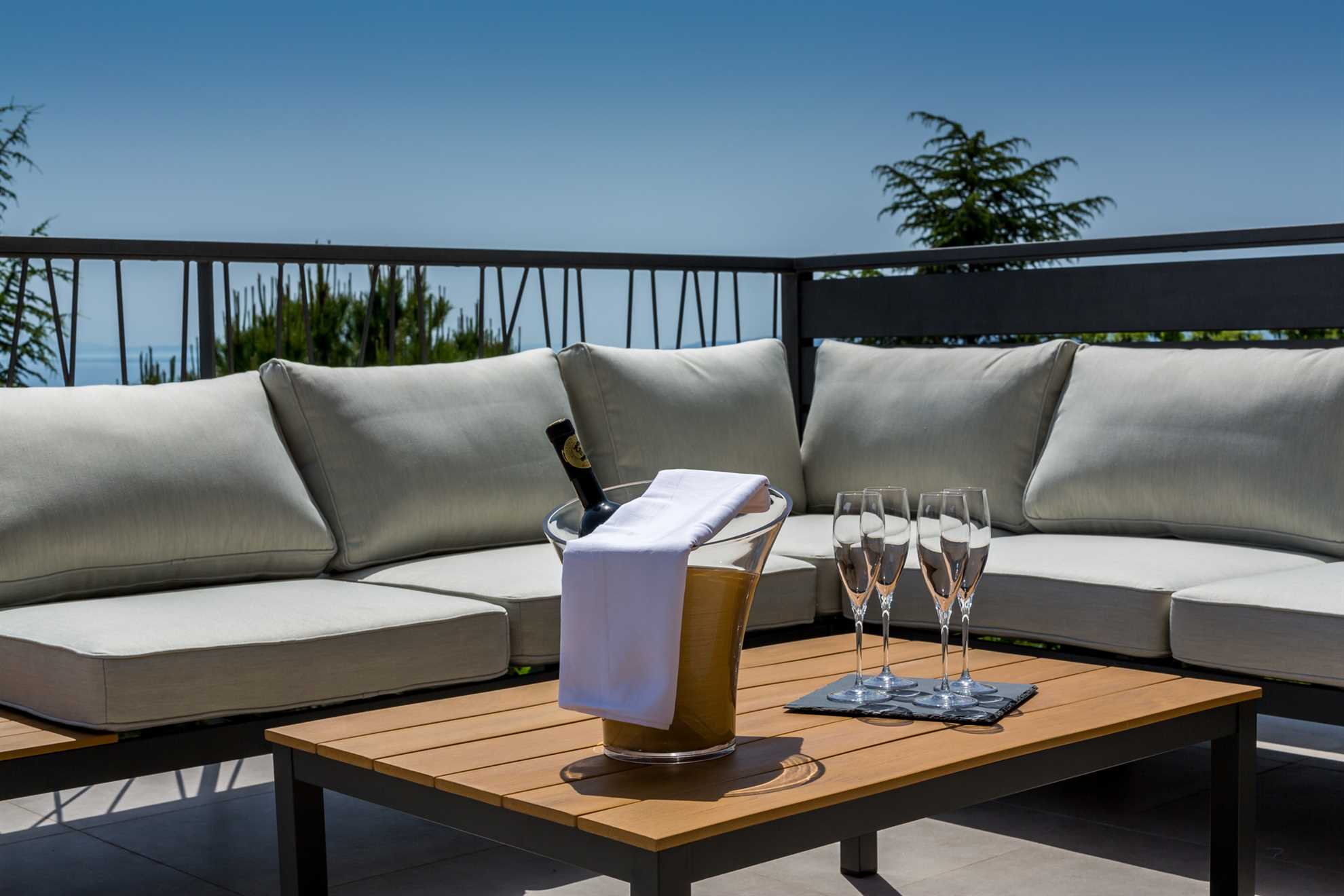 A stunning, luxurious Villa offering breath taking views of the Adriatic set on a hillside nearby Istria’s longest standing and most prestigious holiday destination, the city of Opatija. Spread over 450 m² with windows stretching from floor to ceiling, contemporary and exquisitely designed interior, comfortable and eye pleasing furnishings, stylish artworks, plus a living and dining area including sea views Villa Grand Vision is a place to exhale, relax and enjoy. Gorgeous outdoor infinity pool, a balcony the width of the villa, a terrace with an outdoor dining and BBQ area, a sauna and a jacuzzi are all there making sure you will wish for nothing in making your holiday one to be remembered. Elegant and specious en-suite bedrooms provide sea views, and each comes equipped with your very own flat screen TV. However you choose to spend your holiday, this splendid gem has it all! Welcome to Istria!
