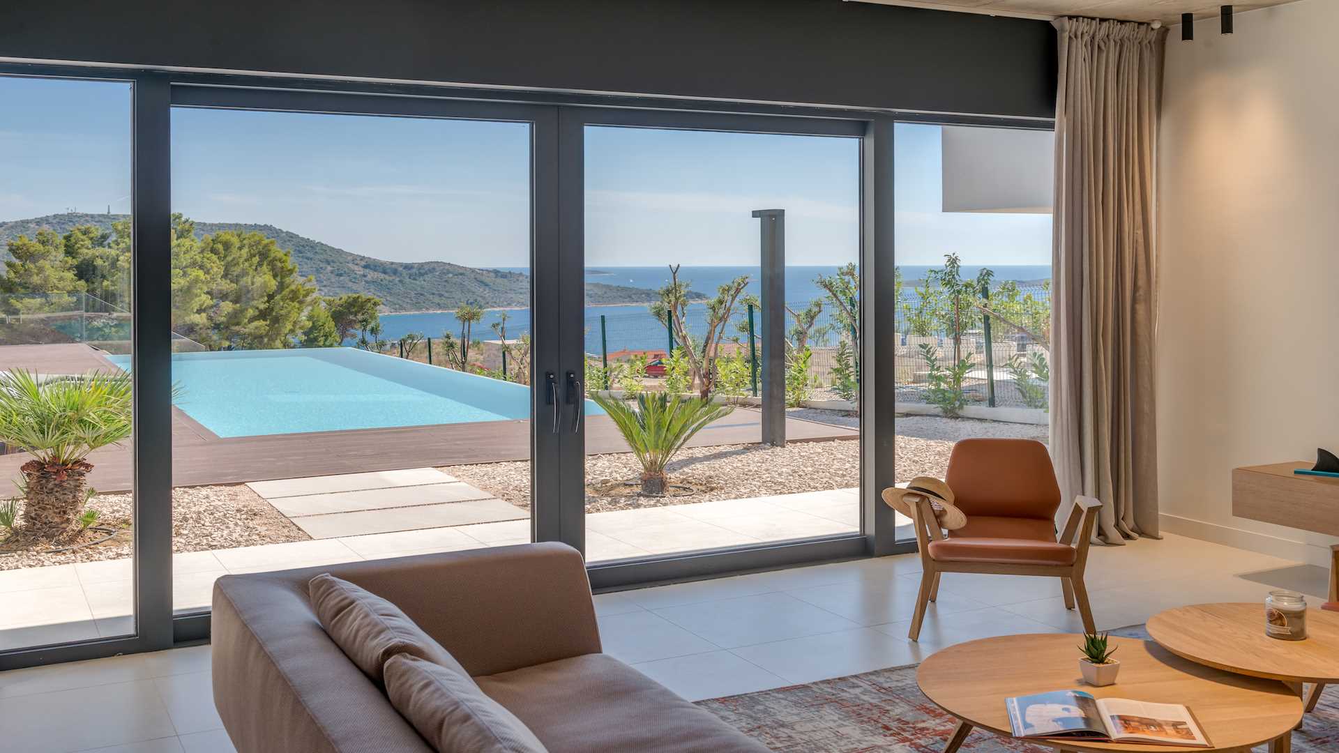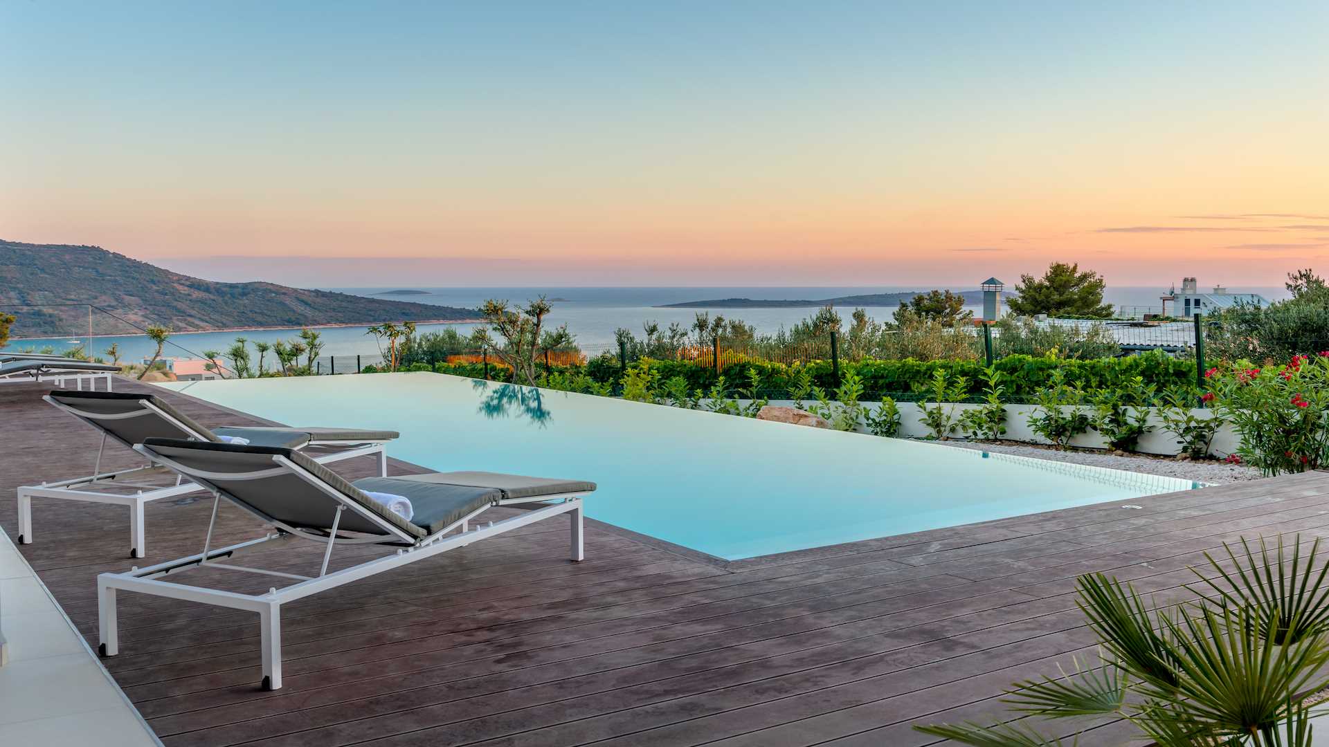 Welcome to Villa Dancing Soul, striking holiday destination with stunning views of the Adriatic. Built to impress this sophisticated property comes with a large 50 m² heated pool and a sun deck positioned to enjoy sea views, outdoor covered seating area and a lounge, parking garage, and an ultra-modern, stylish and sun filled interior showcasing elegance and simple yet pleasing creativity. Floor to ceiling windows allow for breath-taking views and large open spaces provide a sense of luxury. On the ground floor is a stylish living area, with a fully equipped kitchen and a separate dining area. On the first floor are four spacious and comfortable double ensuite bedrooms. Stunning pebble beaches, restaurants, cafes and markets are all within walking distance.