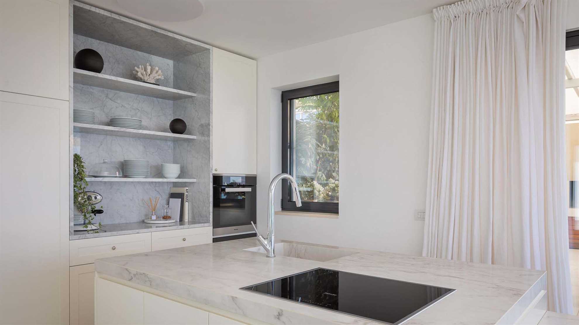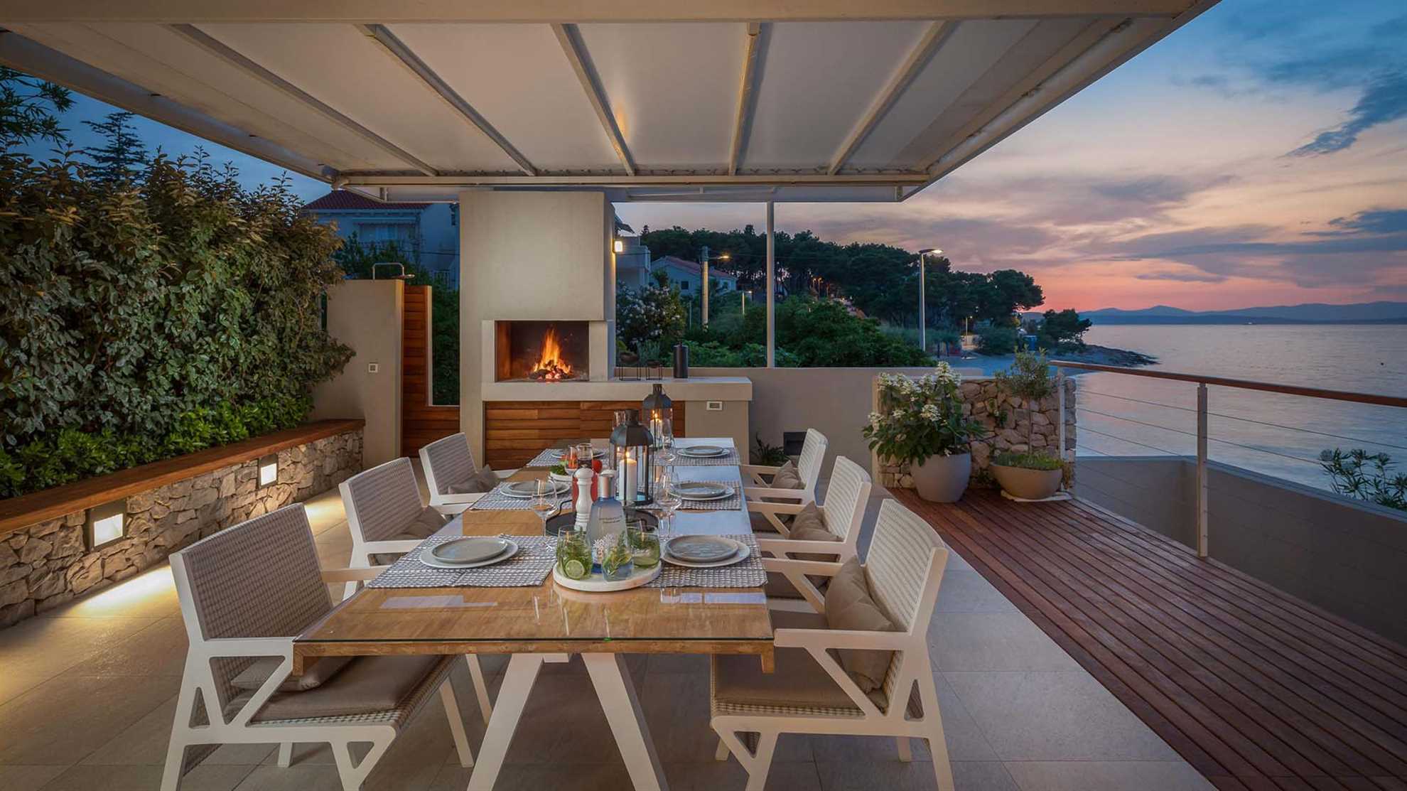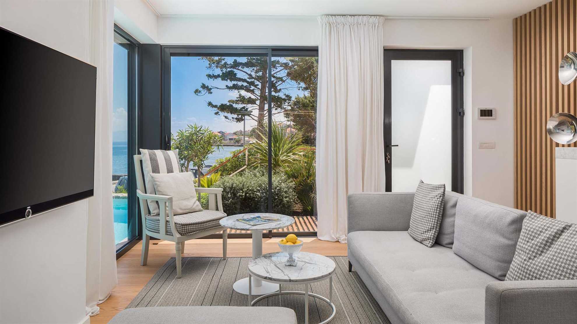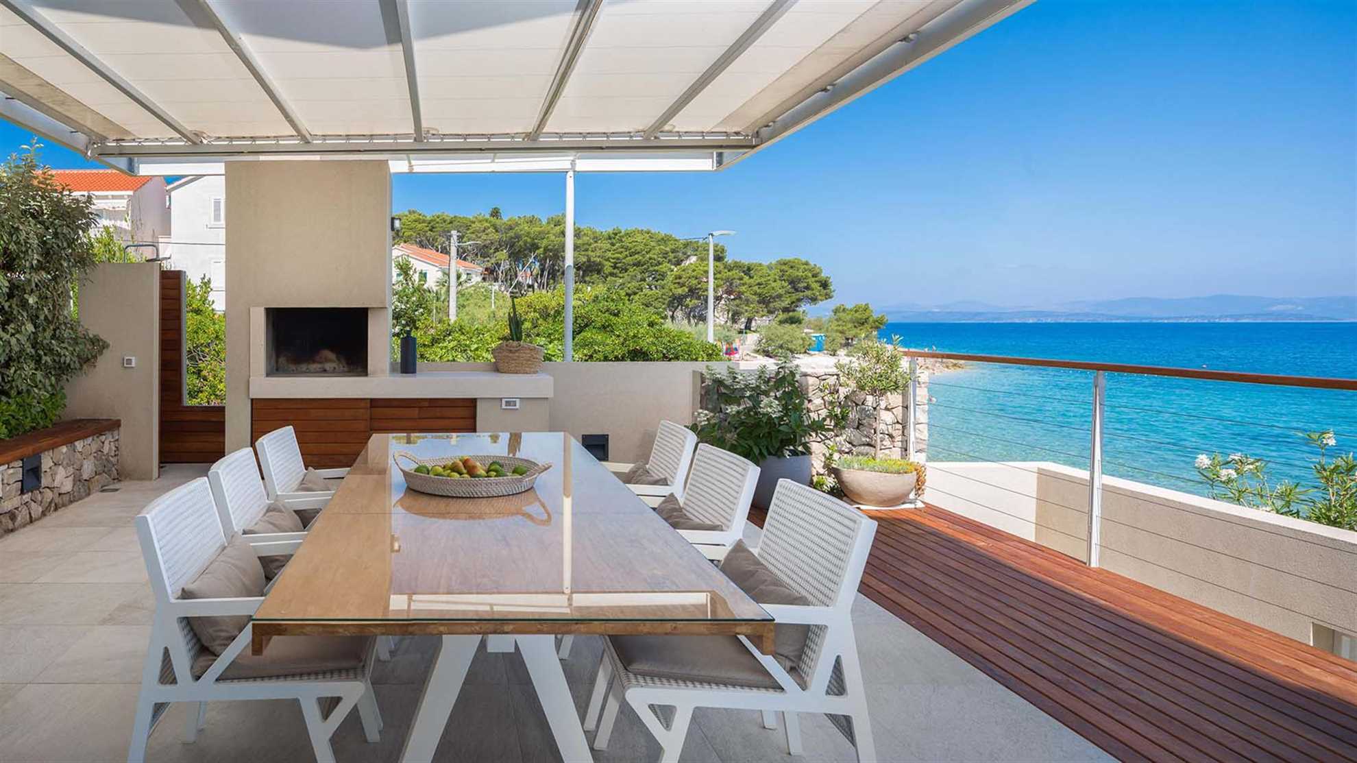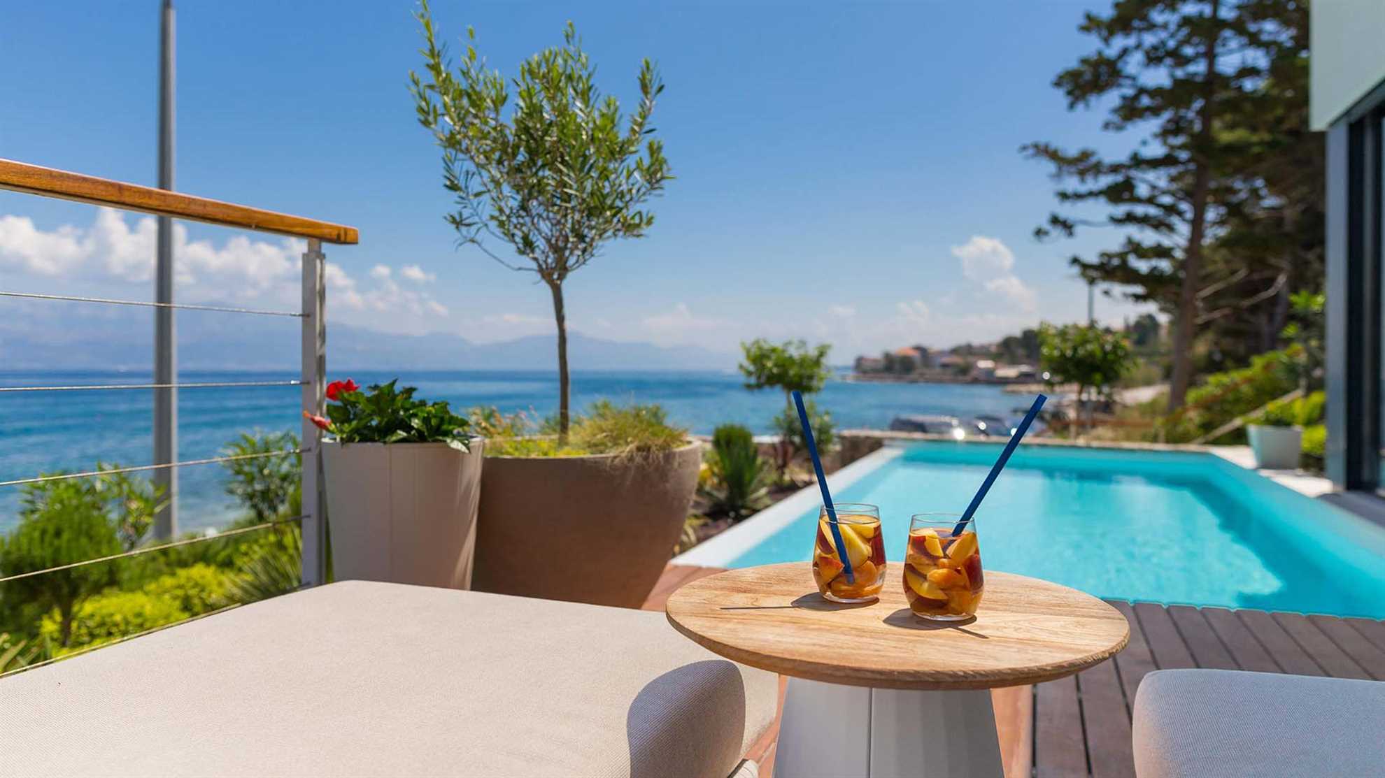 This amazing, modern poolside villa was made everyone looking for a true island life experience with lots of glamour. Its location right next to the beach tells you about one of the unknown privileges of the people living on Dalmatian islands – the perfect wake-up routine that is to get out of the bed and jump right into the sea. Better than coffee or any other morning ritual you may have, this will be your favorite part of the vacation. In case you want privacy, the infinity pool in front of the villa is the perfect solution. The interior of the house is just as delightful as the outdoors. Decorated with elegance and great attention to every little detail, you will especially love the luminous kitchen next to the terrace. The glass walls oriented towards the sea let a lot of light in, so preparing any meal will be a delight.