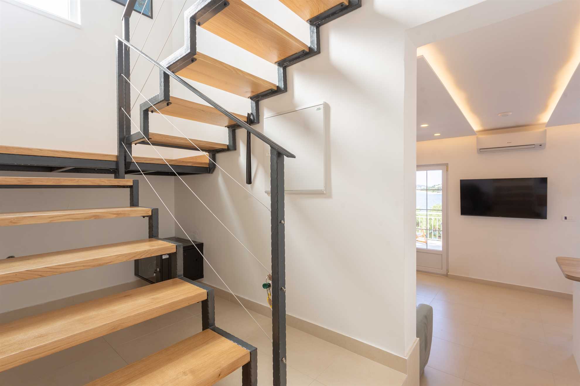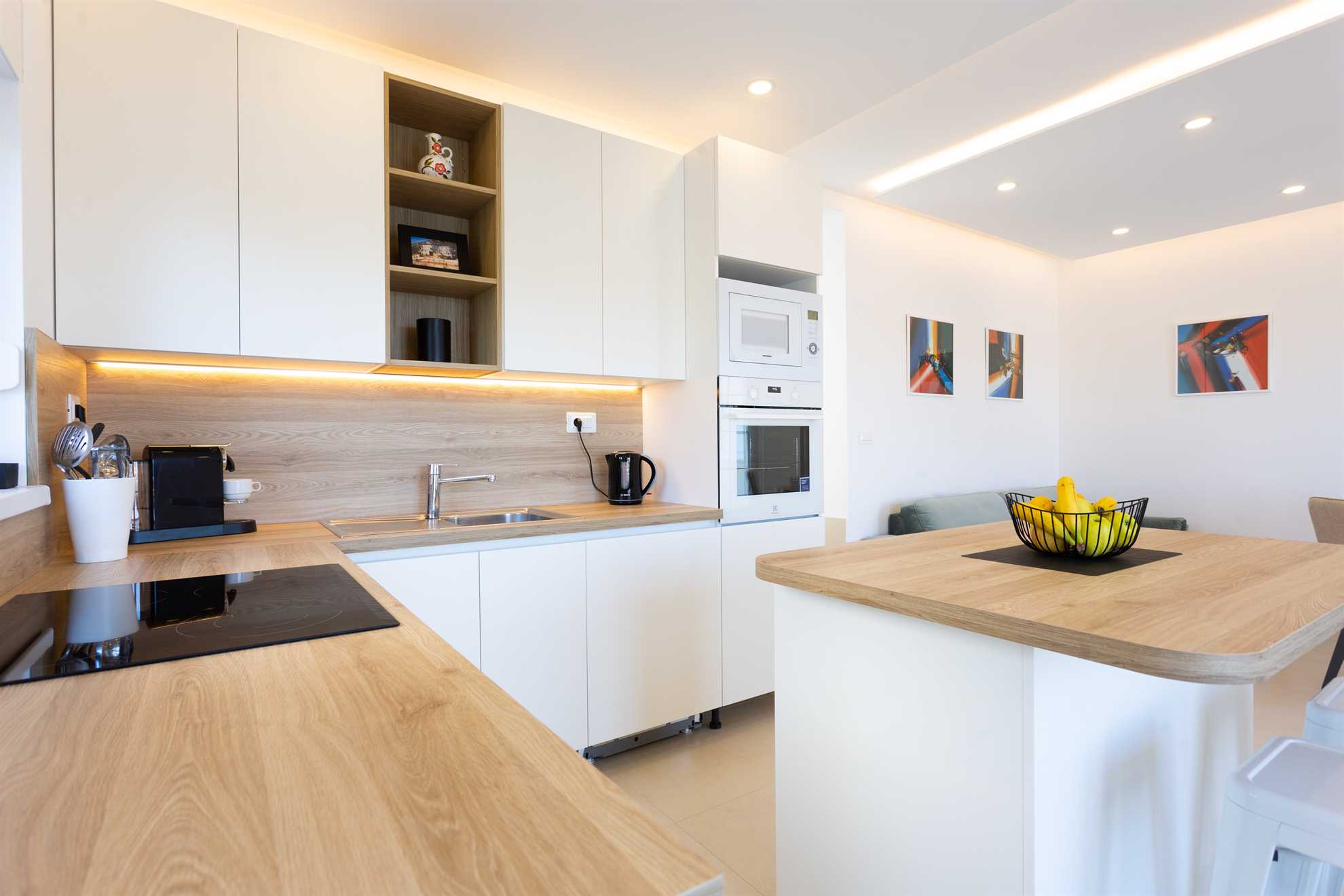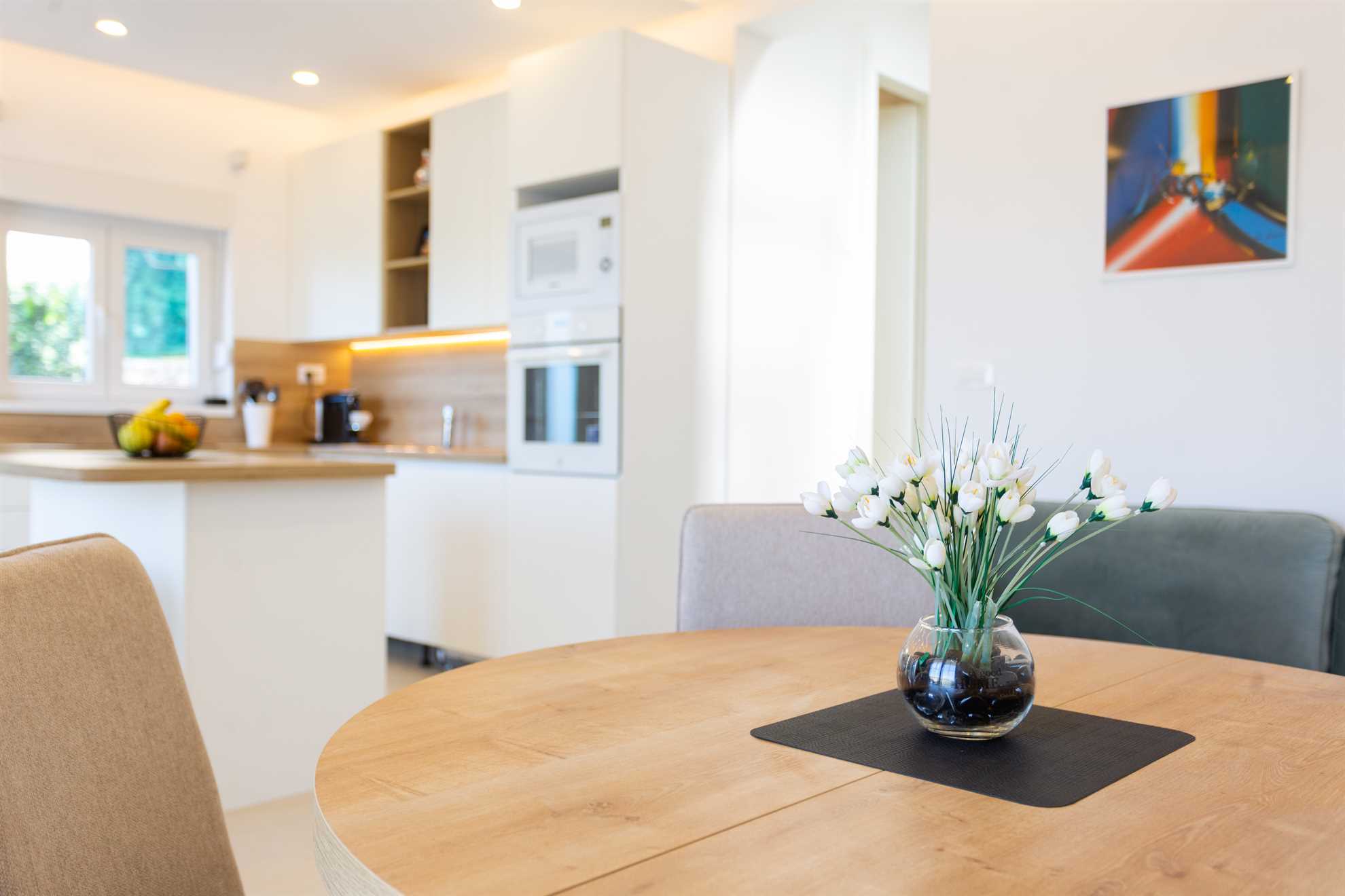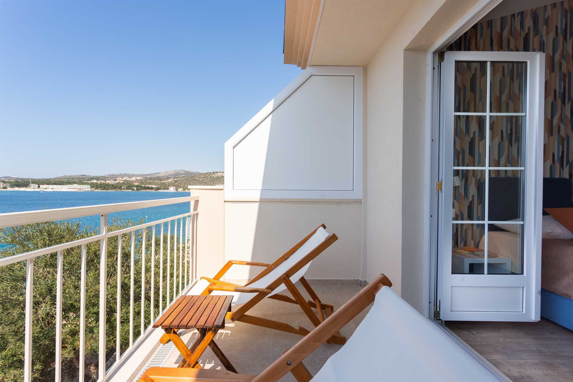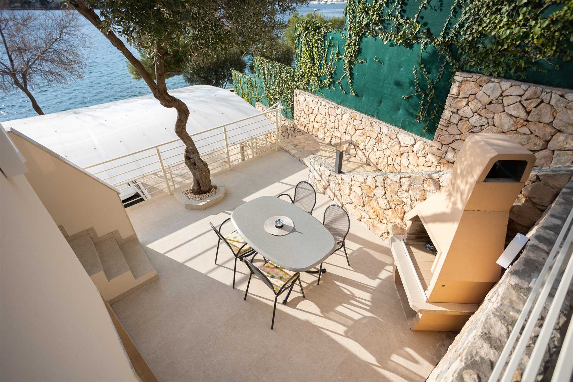 With direct access to the sea and breathtaking panoramic views the new and lovely Villa Sea Touch is an ideal choice for those seeking a peaceful and relaxing vacation experience. 140 m2 interior is spread over two levels and offers modern amenities and fun color schemes that add to its overall aesthetic appeal. The upper level provides three bedrooms, one of which is ensuite, and a balcony from which breathtaking sunsets are an indulgent and everyday treat. The ground level yields a fully equipped, contemporary kitchen, a living area, small dining room and access to another balcony with an alfresco dining table fit for eight guests. Here we can find the final and fourth ensuite bedroom. Step outside and find yourself immersed in fresh sea air, take a swim in the pool or throw together a BBQ for friends and family. Your generous host provides 2 SUP paddles and Pikado. Heating the pool is available.