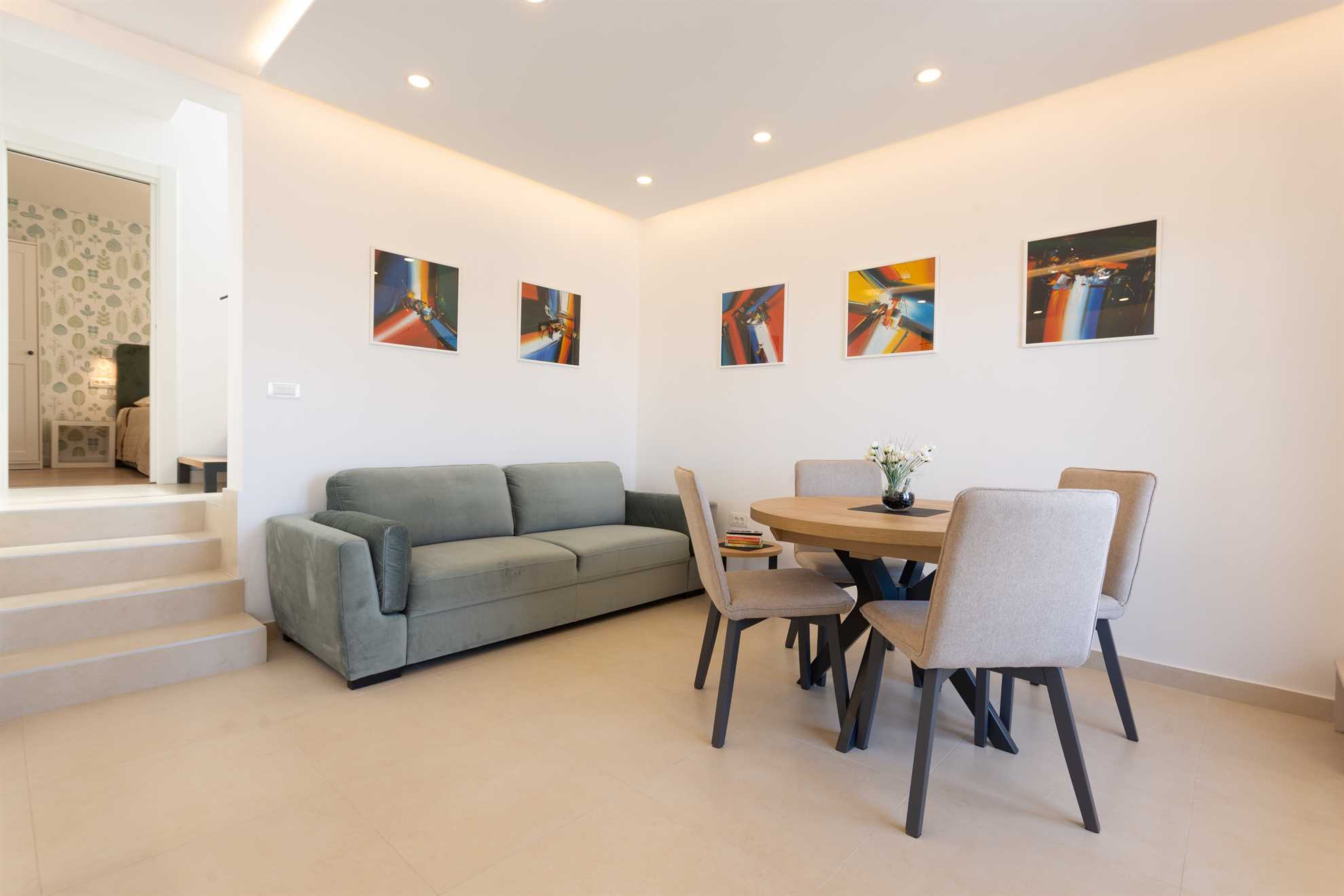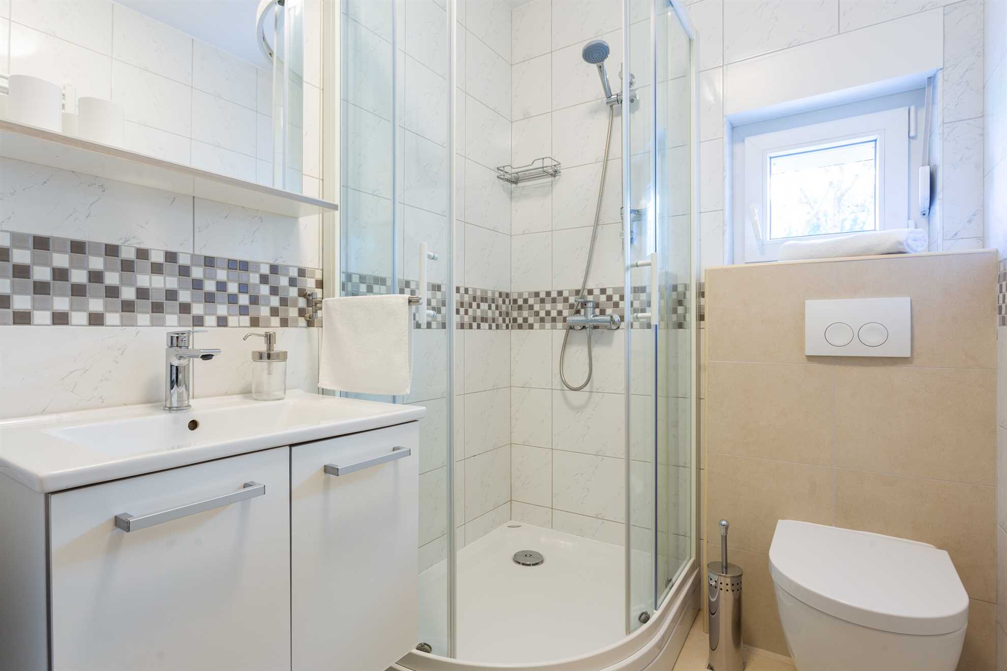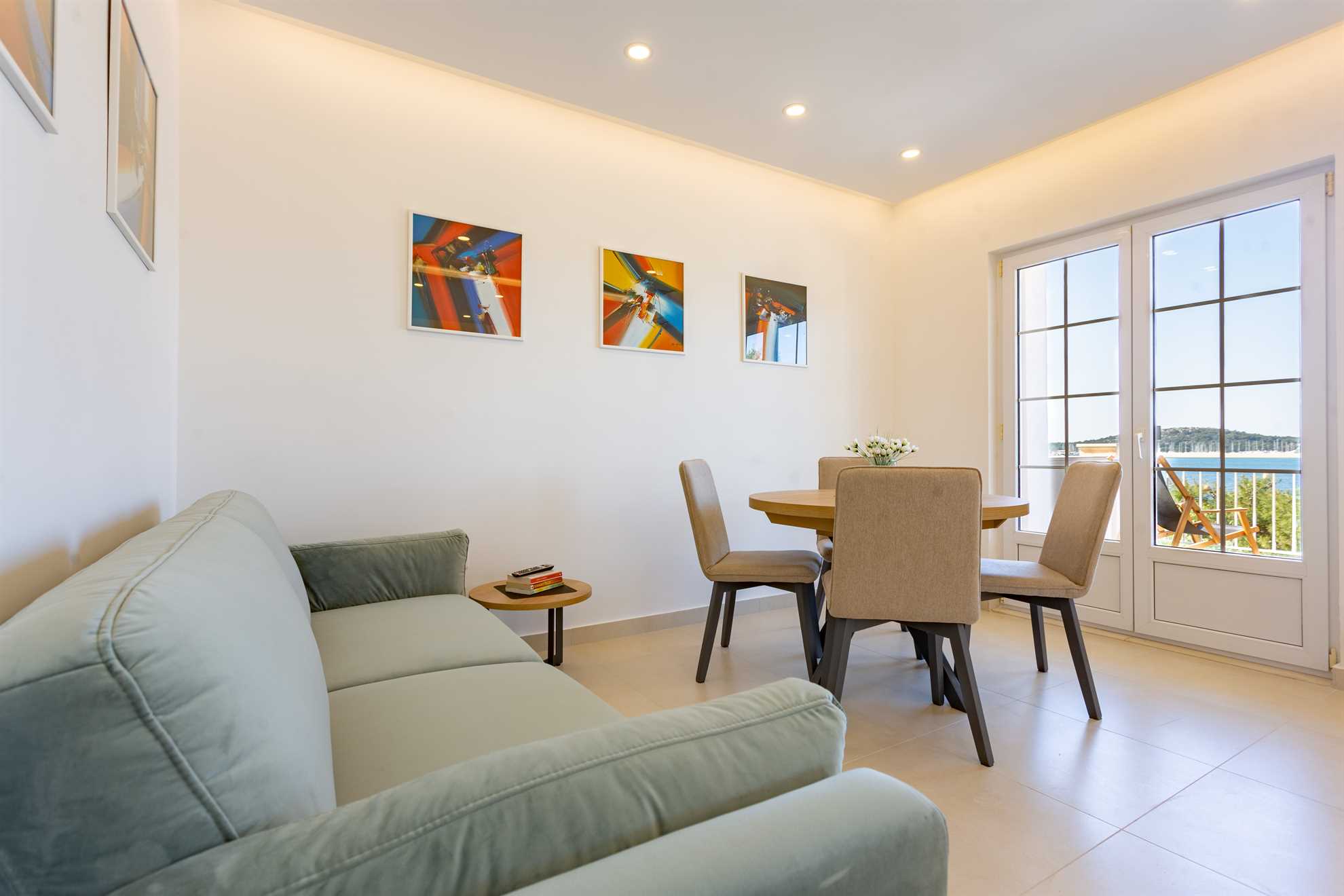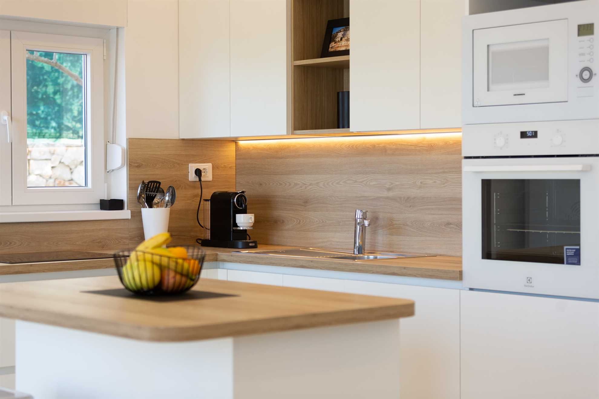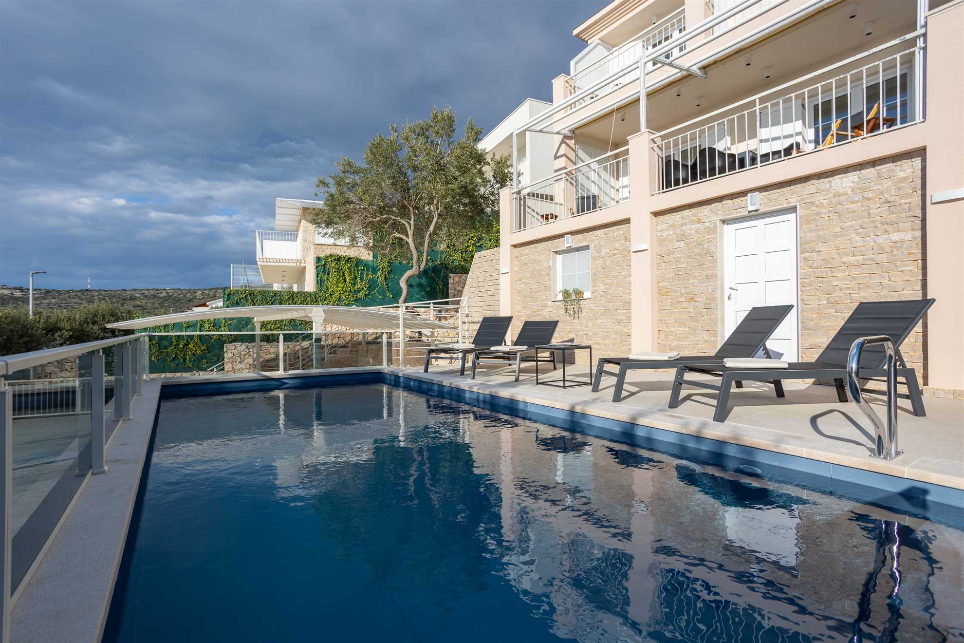 With direct access to the sea and breathtaking panoramic views the new and lovely Villa Sea Touch is an ideal choice for those seeking a peaceful and relaxing vacation experience. 140 m2 interior is spread over two levels and offers modern amenities and fun color schemes that add to its overall aesthetic appeal. The upper level provides three bedrooms, one of which is ensuite, and a balcony from which breathtaking sunsets are an indulgent and everyday treat. The ground level yields a fully equipped, contemporary kitchen, a living area, small dining room and access to another balcony with an alfresco dining table fit for eight guests. Here we can find the final and fourth ensuite bedroom. Step outside and find yourself immersed in fresh sea air, take a swim in the pool or throw together a BBQ for friends and family. Your generous host provides 2 SUP paddles and Pikado. Heating the pool is available.