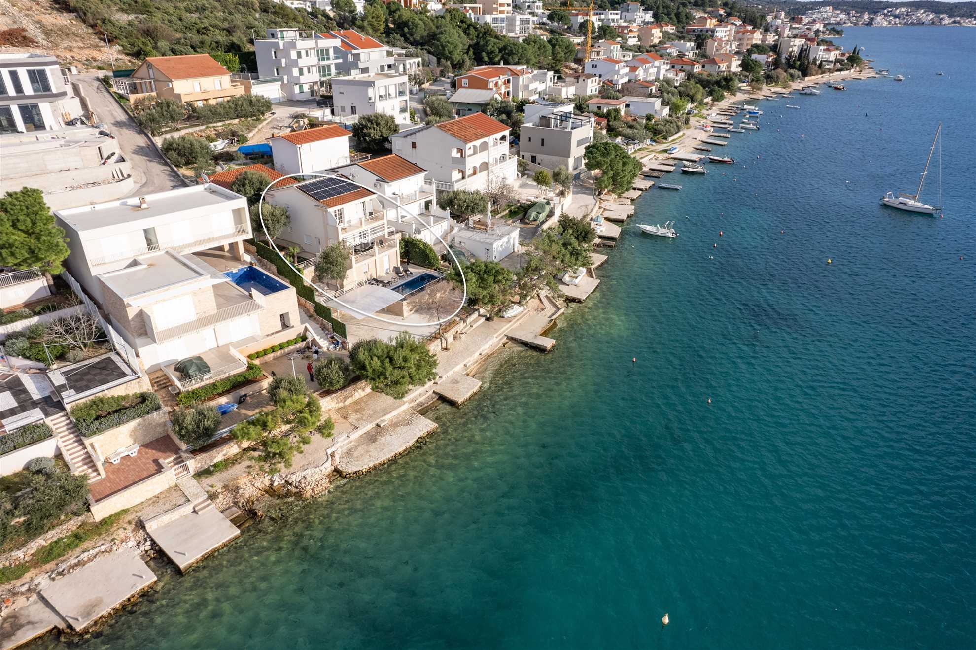 Villa Sea Touch is located near Rogoznica, a small village yet a popular tourist destination known for its sheltered bay and calm sea. Restaurants, shops and beaches are all nearby. Not to be missed is the UNESCO proclaimed Old Town Trogir 30 minute drive away. Head down to Split for a day to experience one of Croatia’s most popular cities, offering abundant restaurants, shopping, cafes, historical sites, and active night life.