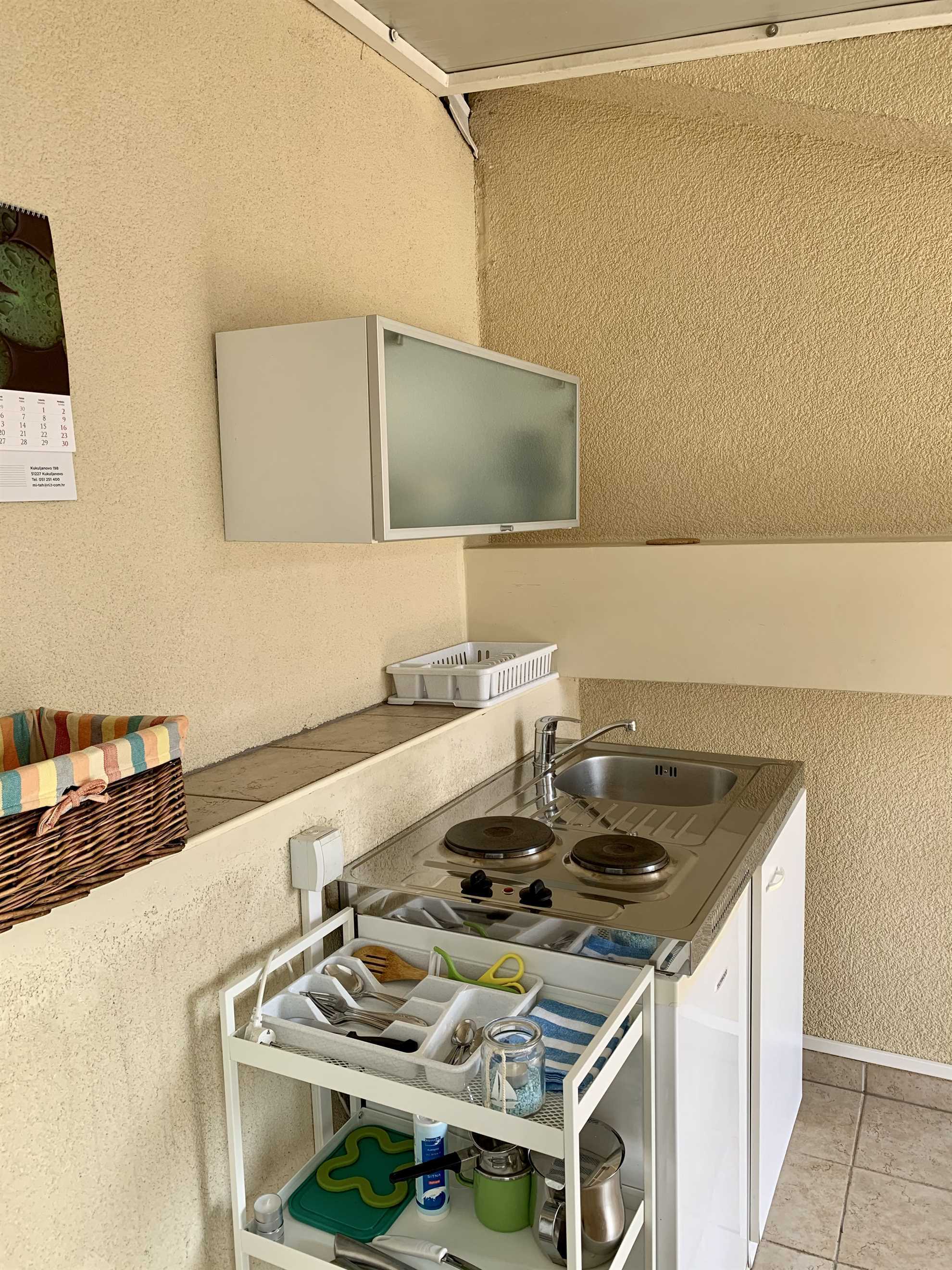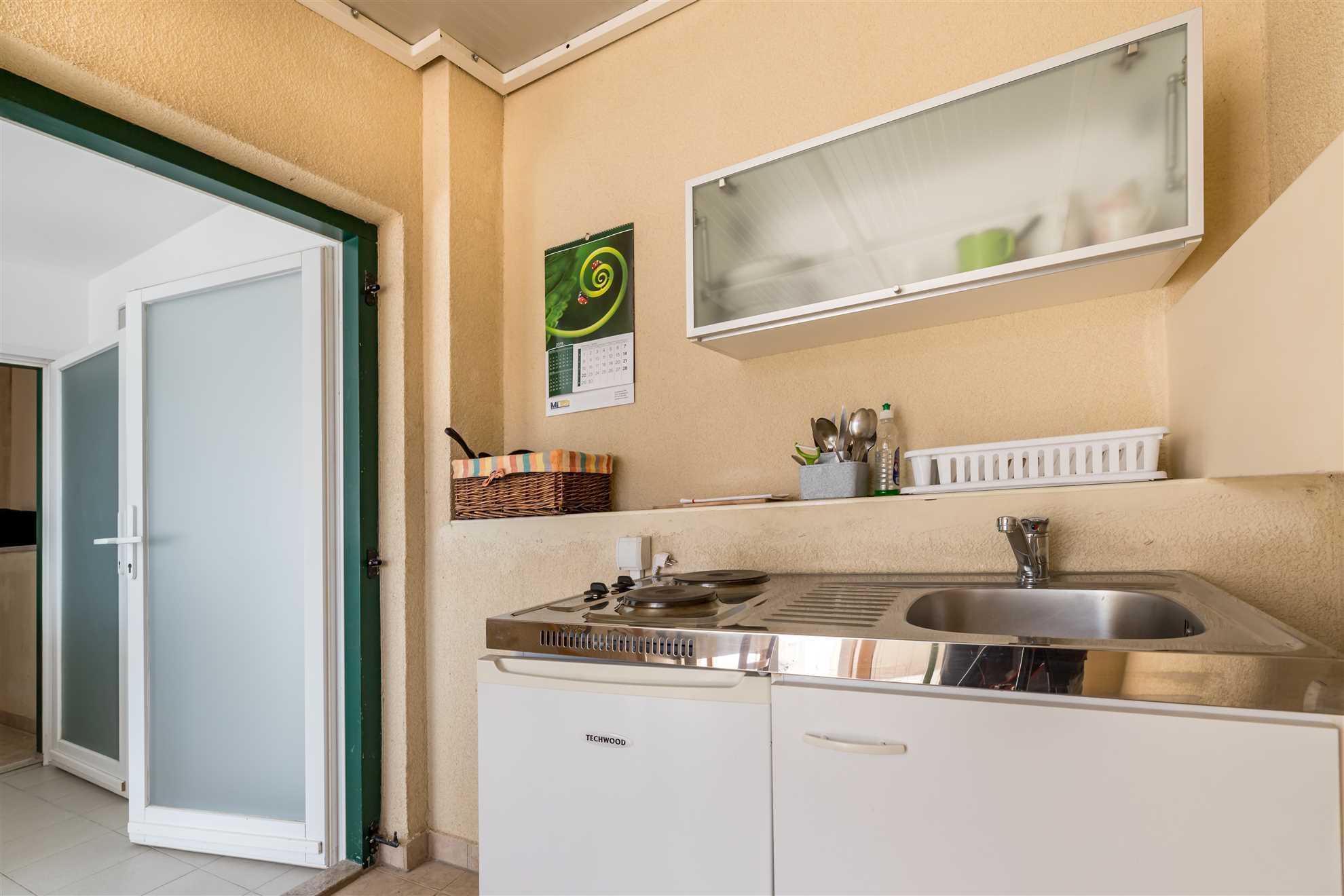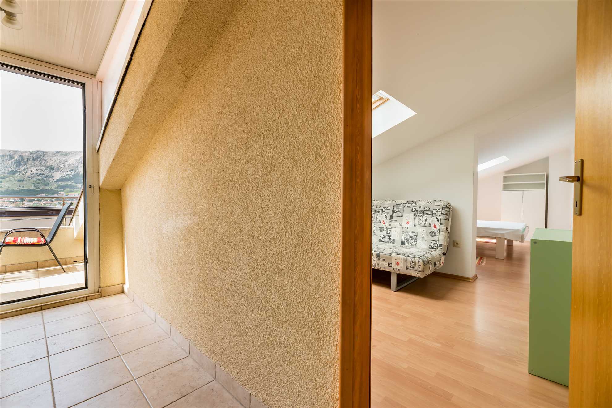 As soon as you step into this cozy 45 m² studio apartment in the attic, you’ll feel the special relaxed island vibe. The spacious sleeping area with a comfortable double bed flows into the living room featuring a practical pull-out sofa – ideal for two, or for three people who want to explore Krk together. Air conditioning keeps summer days pleasant, and free WiFi plus SAT-TV keep you connected whenever you wish.