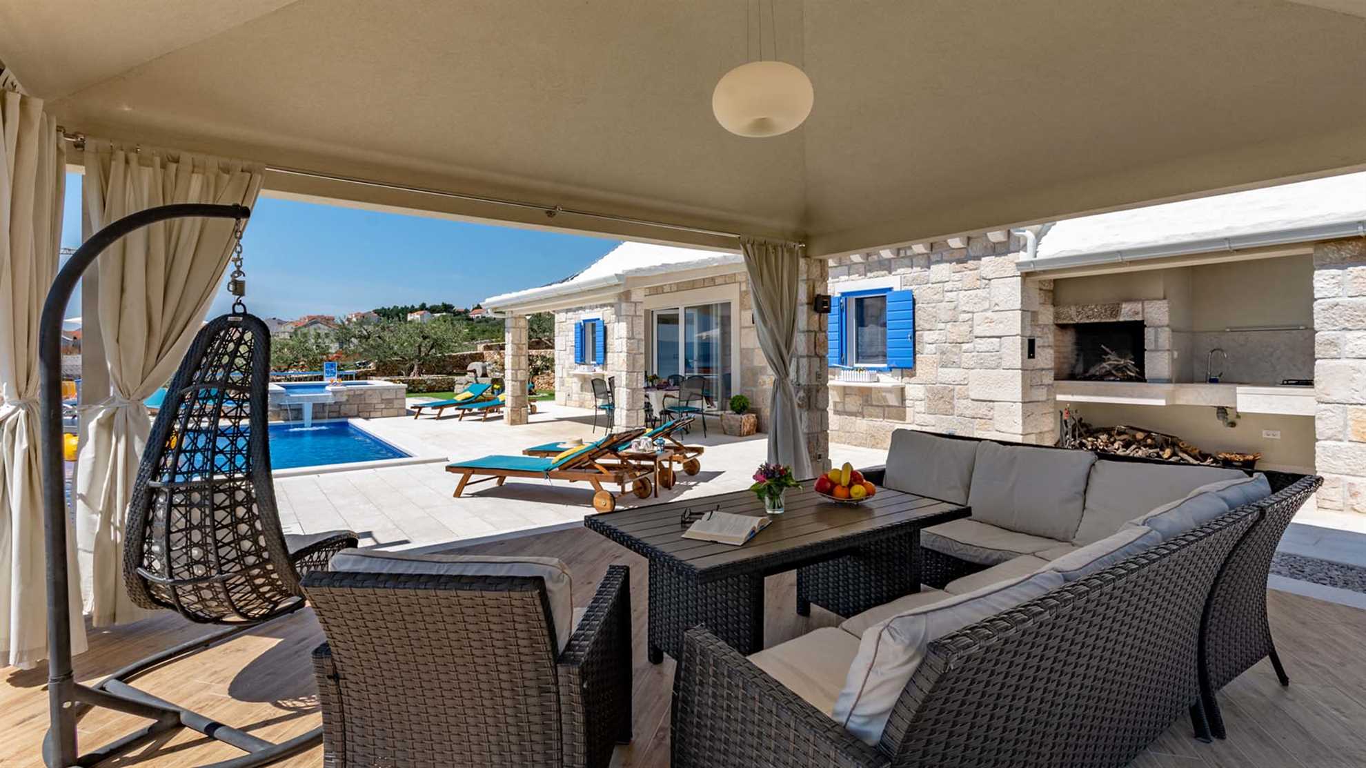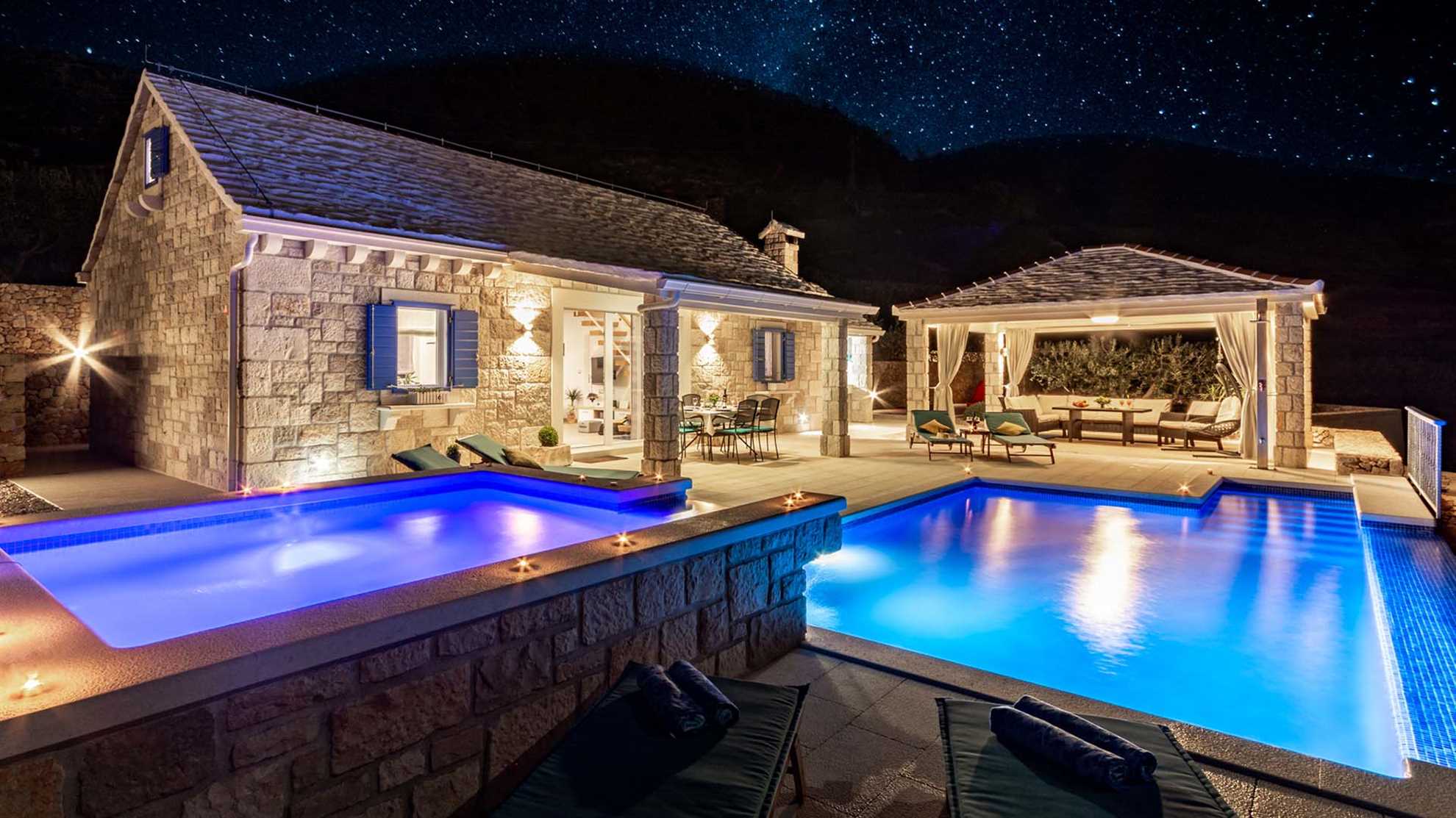 This villa is a perfect example of traditional stone villas built on the island of Brač for centuries. A marvelous poolside house with a typical stone porch and a Mediterranean garden is made for sunny, lazy days and the most relaxing vacation ever. Blue wooden window shades recall the Sea, and the sunny terrace invites you to soak up the Adriatic sun. Once you step inside the house, you will notice the tradition in colors chosen for the interior, but everything else is modern, elegant and designed for pleasure. Fully equipped modern kitchen, floating stairs that lead to the first floor or luxurious details tell you the house was designed for nothing but total comfort and pleasure.