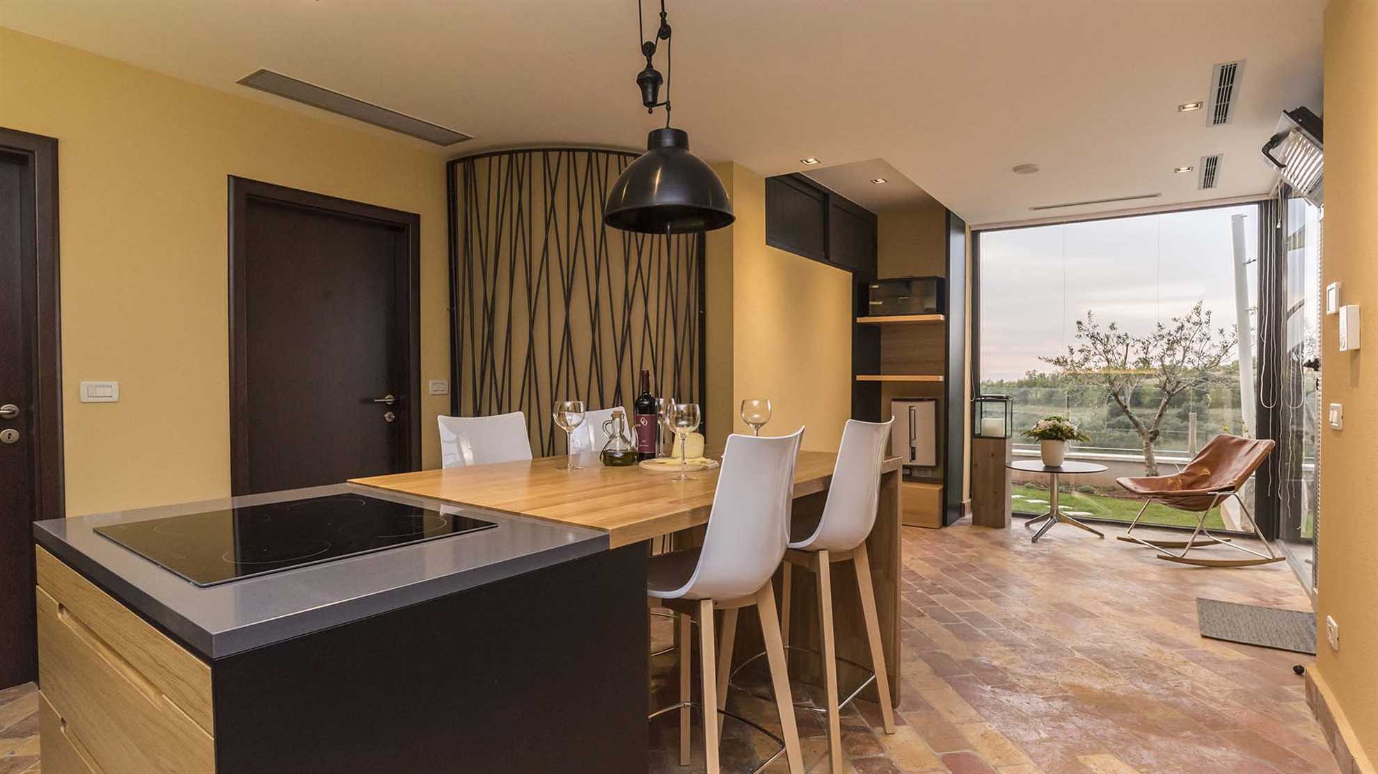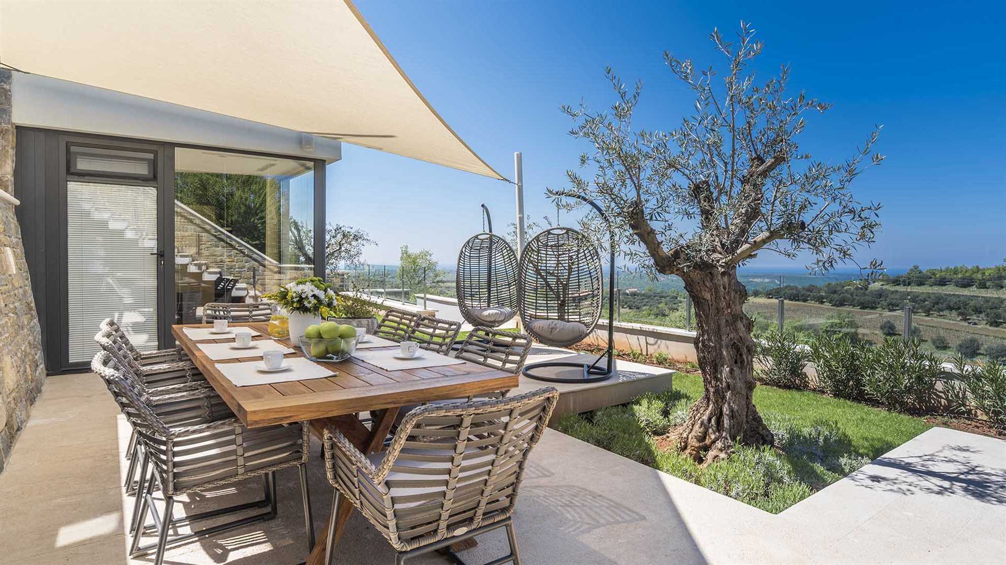 This luxurious poolside villa is a dream come true. Built on three levels, it was built as a place of luxury, the best features, and ultimate extravaganza. The stone facade is broken down with huge glass galleries and windows, and the green, private garden around it makes it even more appealing. Designed with all the latest amenities, the house has everything you could wish for; a wellness area and a sauna to relax, a beautiful pool for refreshment and a playroom for family entertainment. The summer kitchen is perfect for warm stellar nights with your loved ones, and the terraces are here to enjoy the spectacular view on north-western Istria and the Adriatic. The interior of this amazing villa was done with great love and attention to details, so that when you decide to get inside, you will enjoy the same level of excellency as on the outside.
