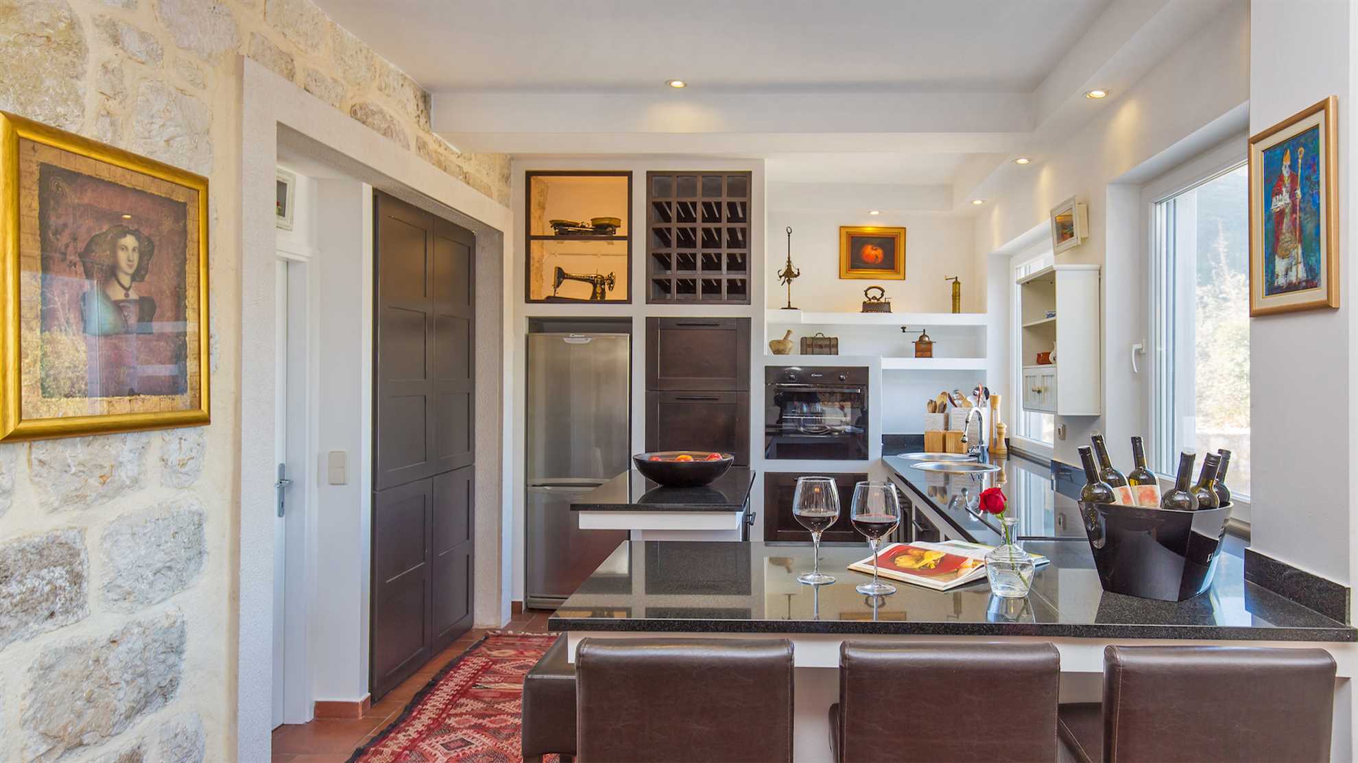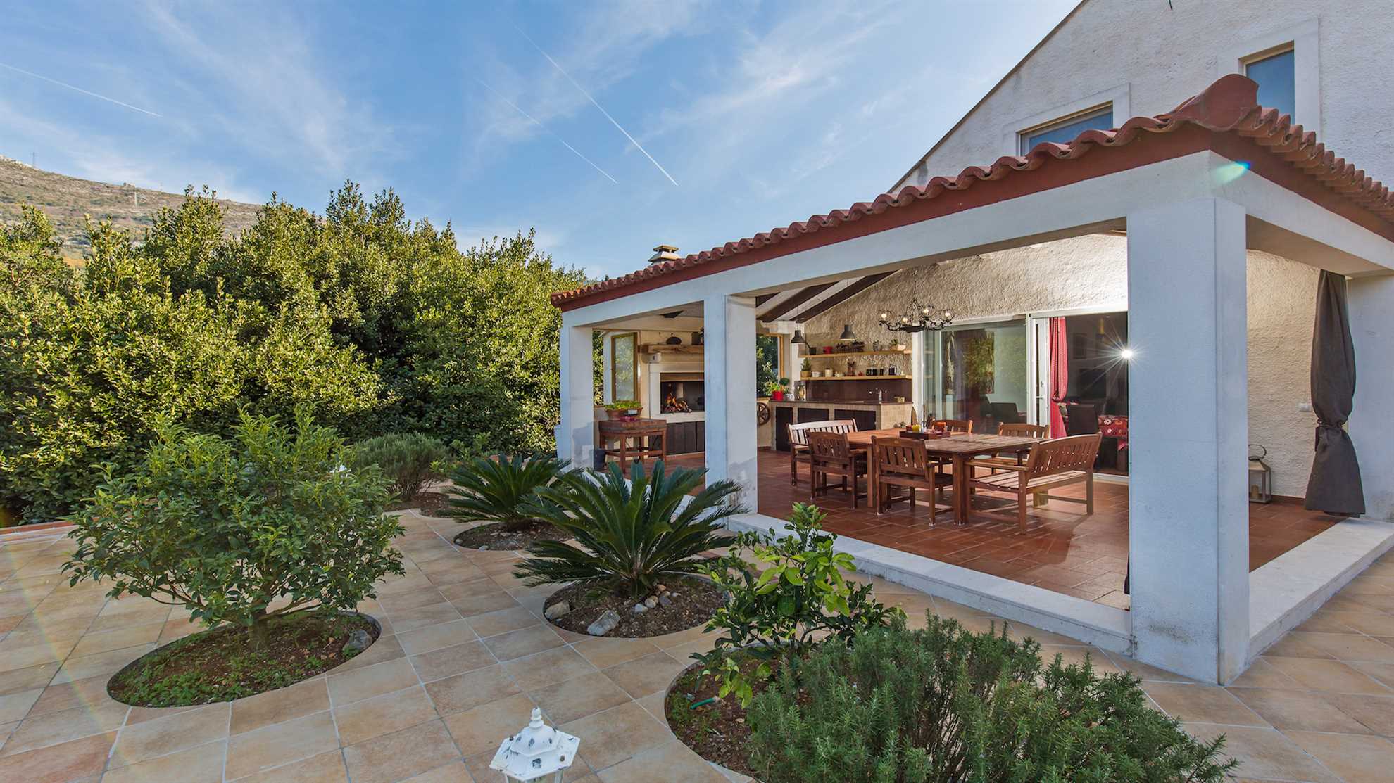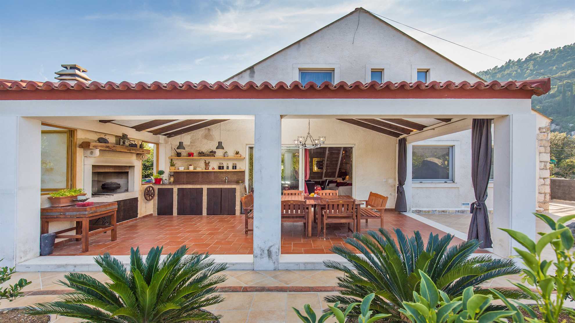 Villa Nature Escape warrants pure relaxation. With a lovely outdoor pool surrounded by nature and splendid mountain views, lavender gardens and sun loungers ideal for lazy afternoons it is difficult not to indulge in the serenity and tranquil ambience the landscape provides, all while being only 9 kilometers outside of hustle and bustle of enchanting Dubrovnik. Modern facilities and comforts are available throughout. A fully equipped modern kitchen with a breakfast bar and a separate dining area allow for the whole family to get together. And the outdoor covered kitchen with open fire barbecue and alfresco dining table make it a pleasure to enjoy lovely summer evenings in the garden while savoring a delicious Croatian delicacy. The ground level consists of a specious living room with an open kitchen and a breakfast bar, a dining room seating eight, a bathoom with a shower and one of the double bedrooms opening onto a patio. Upstairs are the remaining three stylish double bedrooms with two shared bathrooms.
