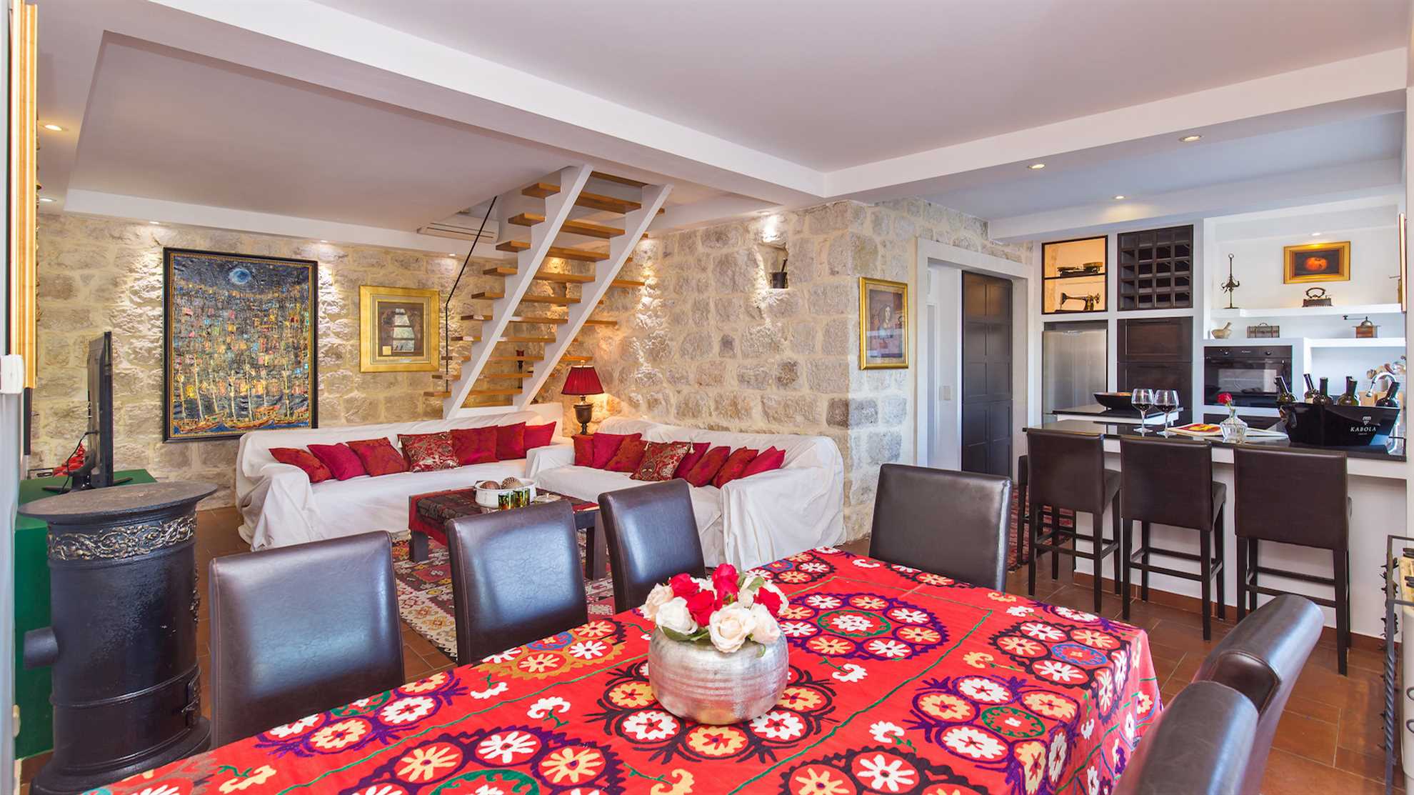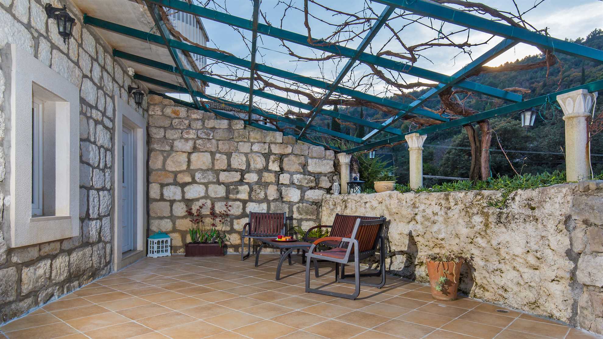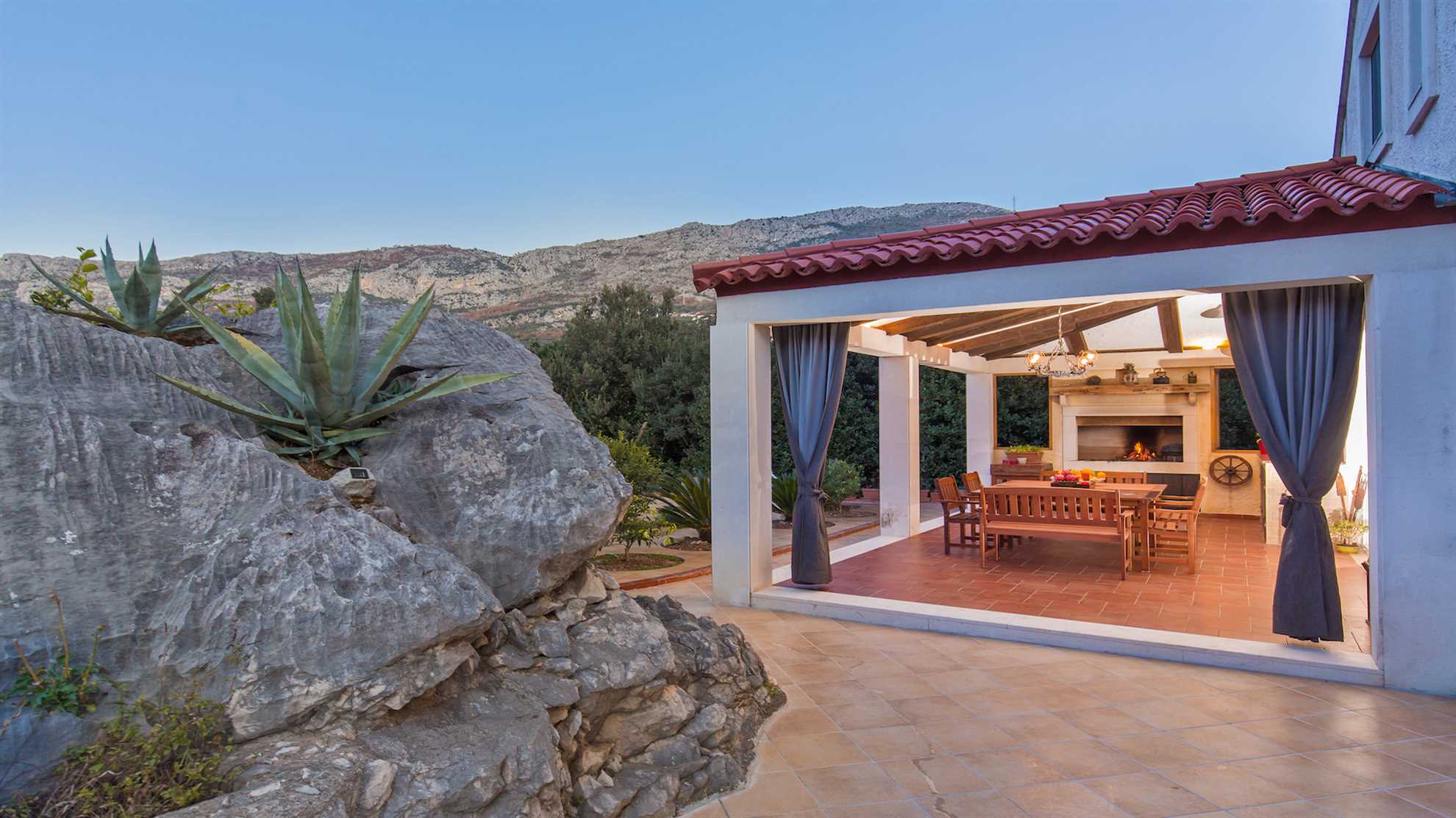 Villa Nature Escape warrants pure relaxation. With a lovely outdoor pool surrounded by nature and splendid mountain views, lavender gardens and sun loungers ideal for lazy afternoons it is difficult not to indulge in the serenity and tranquil ambience the landscape provides, all while being only 9 kilometers outside of hustle and bustle of enchanting Dubrovnik. Modern facilities and comforts are available throughout. A fully equipped modern kitchen with a breakfast bar and a separate dining area allow for the whole family to get together. And the outdoor covered kitchen with open fire barbecue and alfresco dining table make it a pleasure to enjoy lovely summer evenings in the garden while savoring a delicious Croatian delicacy. The ground level consists of a specious living room with an open kitchen and a breakfast bar, a dining room seating eight, a bathoom with a shower and one of the double bedrooms opening onto a patio. Upstairs are the remaining three stylish double bedrooms with two shared bathrooms.