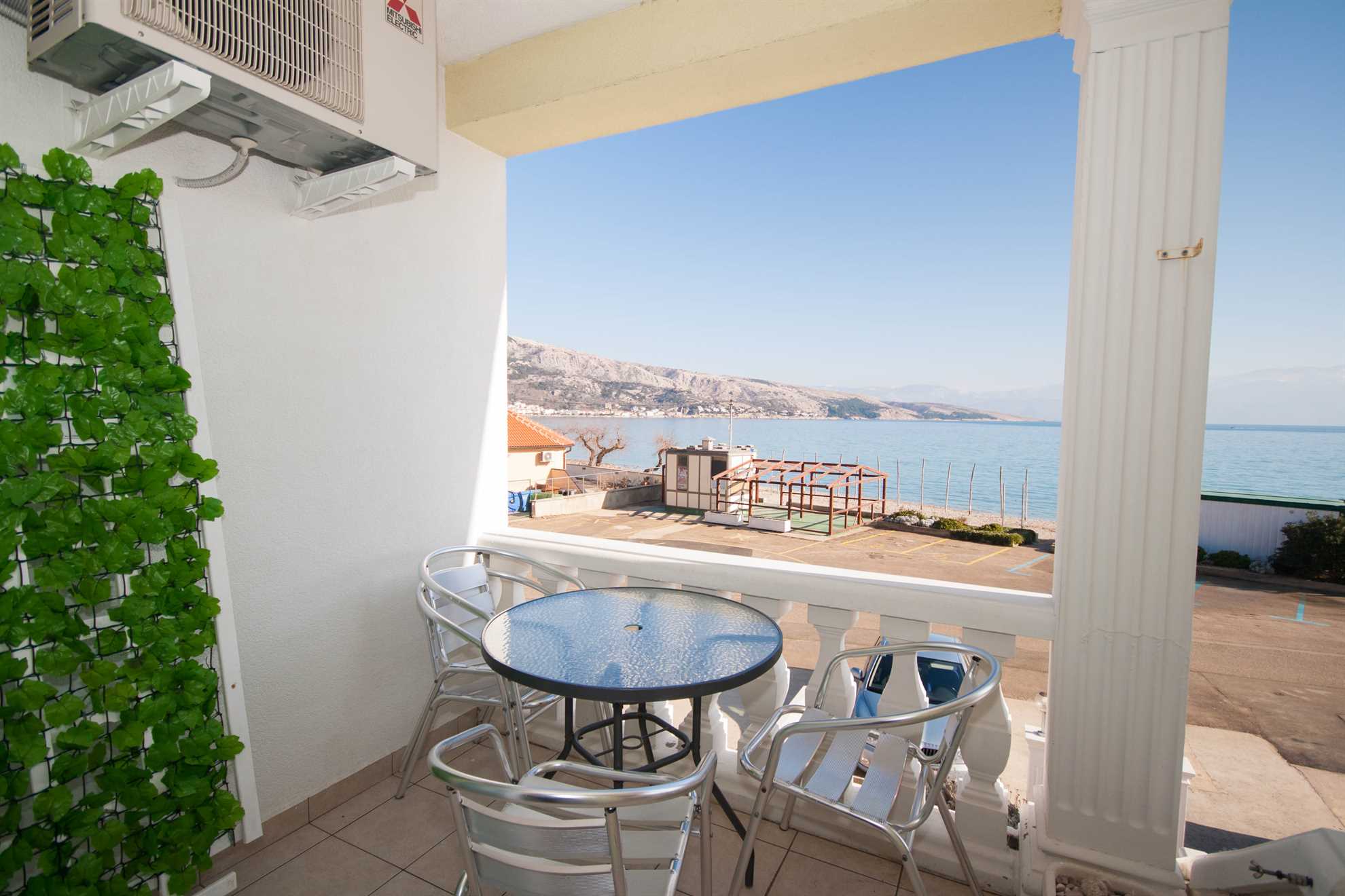 The apartment's special charm is given by the terrace/balcony with an open view of the sea – the perfect place for morning coffee with the sound of the waves, an evening glass of wine or quiet moments under the stars.