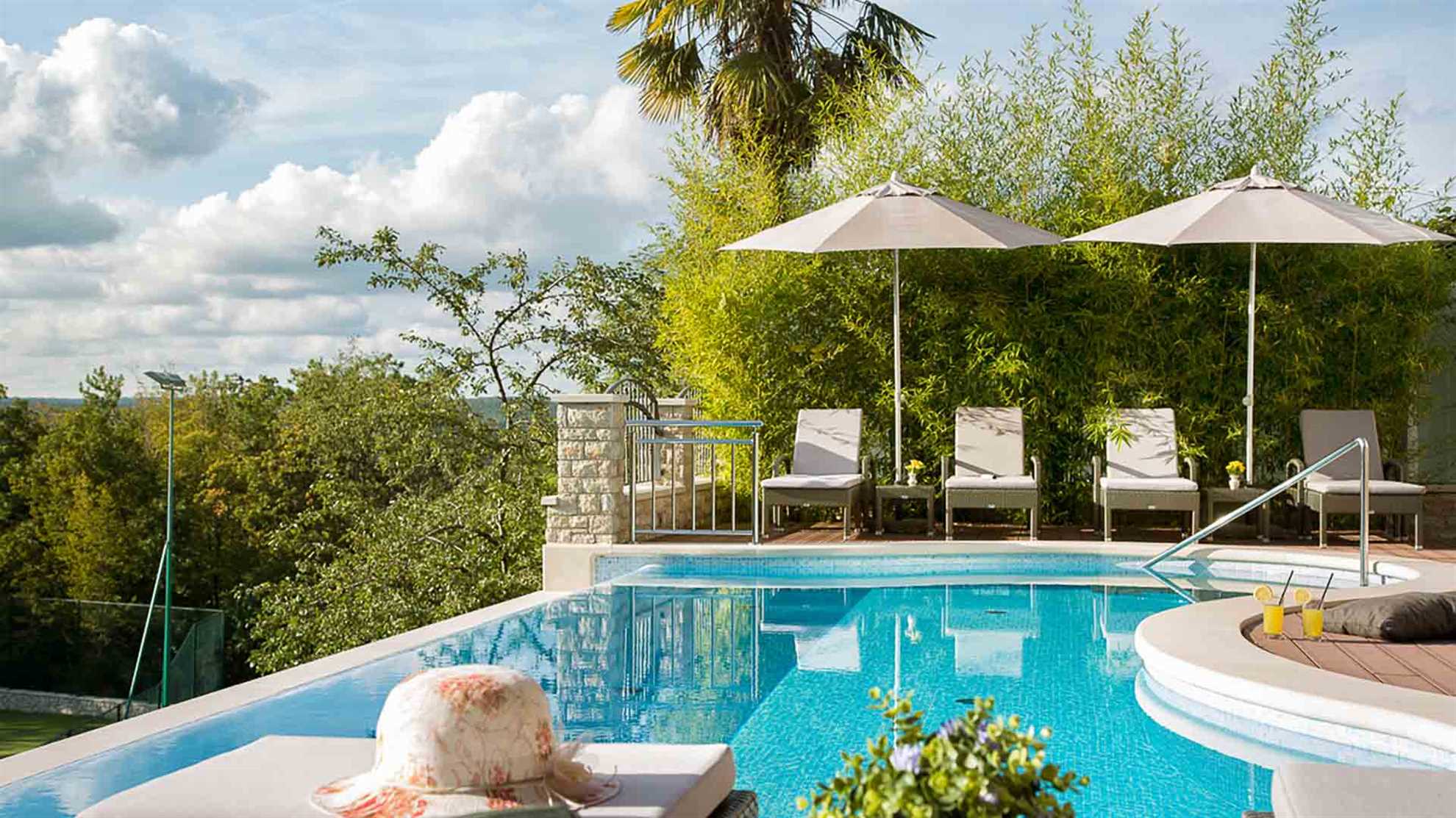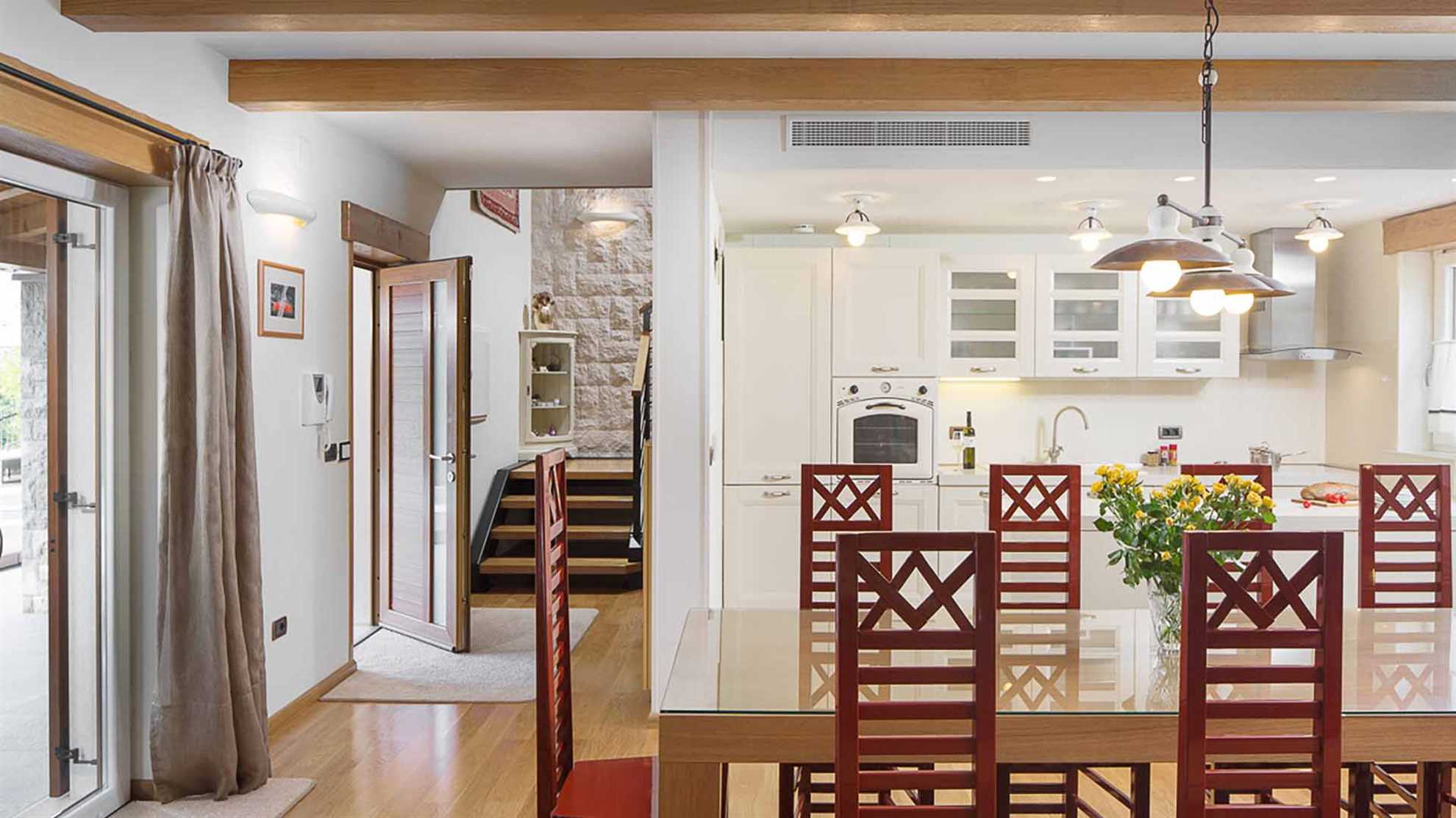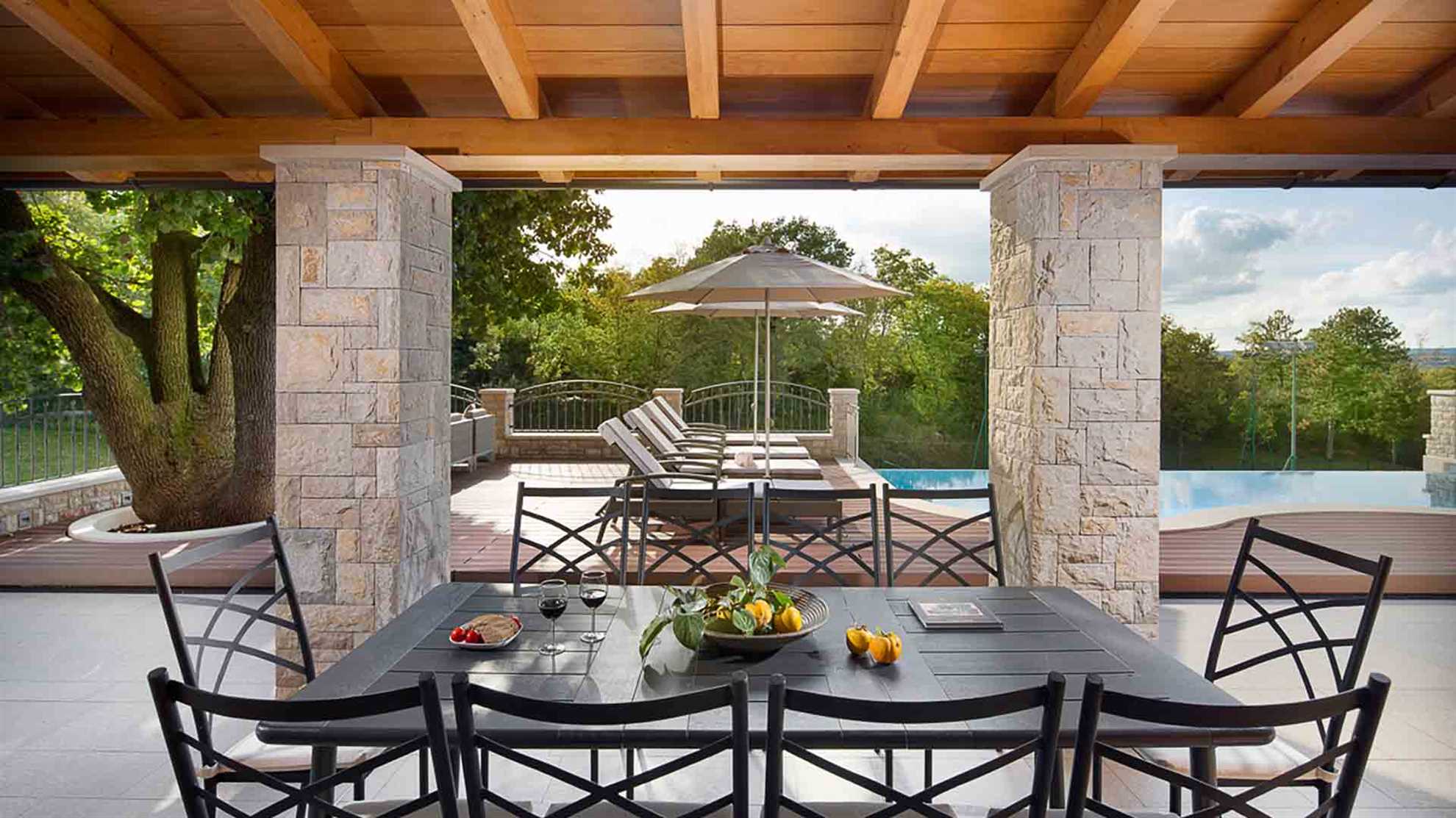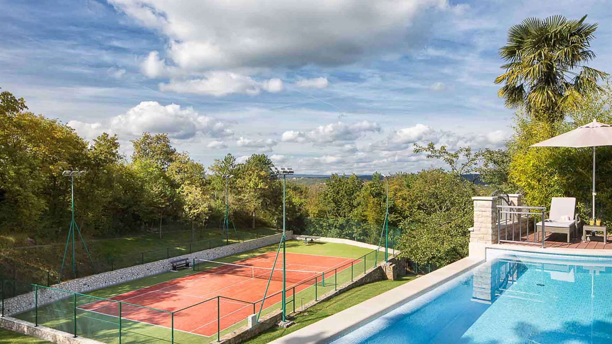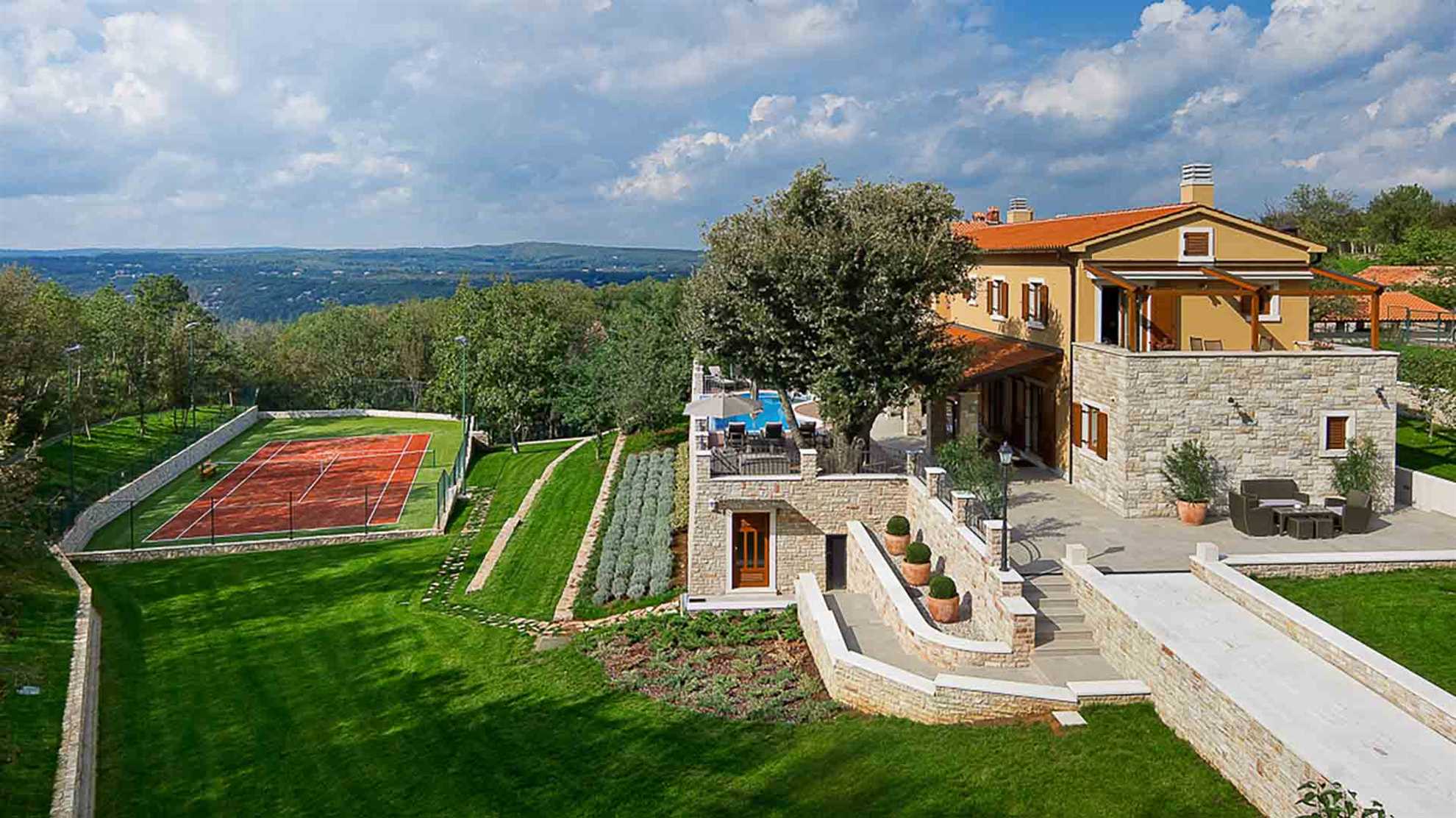 This magnificent heritage villa in Labin is literally paradise on Earth. The 265 sqm house built on a 20000 sqm estate is a world of its own. The luxurious villa is ideal for a party of 8 guests, who have 4 elegant bedrooms with en-suite bathrooms at their disposal. Built of 6 types of stone and wood, the poolside villa resembles Croatian nobility houses from the Middle Ages. And this is precisely how you will feel during your stay. If you are an outdoor type, there is a private golf course and tennis court on the property, just like a heated swimming pool. The Animal Park with domestic animals and hiking trails are yet another additional perk. For all the days you wish to spend indoors, this amazing villa features PlayStation console, Surround system, SAT TV, and many other benefits made for your dream holidays.