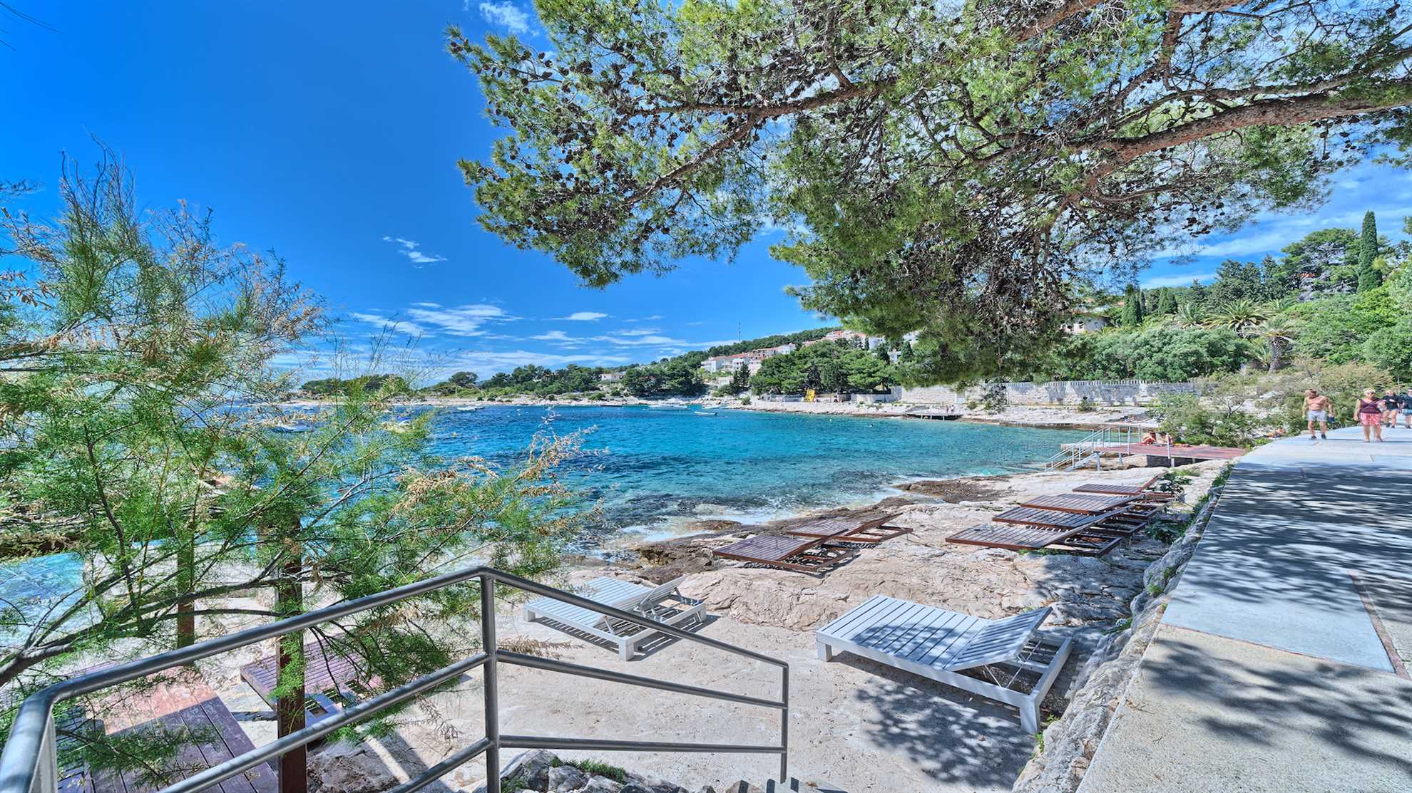 With a direct access to the beach, a private 600m² garden and smell of pine trees, next to the hottest beach clubs on the island Villa Coral Bay checks all the boxes for an incredible, one of a kind Hvar holiday. Charming yet contemporary stone cottage is tastefully decorated and furnished with your comfort in mind. Two levels occupy the 120m², with sleeping areas on the upper level, and a fully equipped kitchen, dining area and a specious bright sofa lounge with a flatscreen TV on the lower level. Comfy patio furniture is provided for your enjoyment in a lovely shaded garden yielding gorgeous sea views in all directions. Sea promenade will get you to Old town Hvar in 10 min, while the beach is a mere 5 meters away. Welcome to an ideal Adriatic holiday.