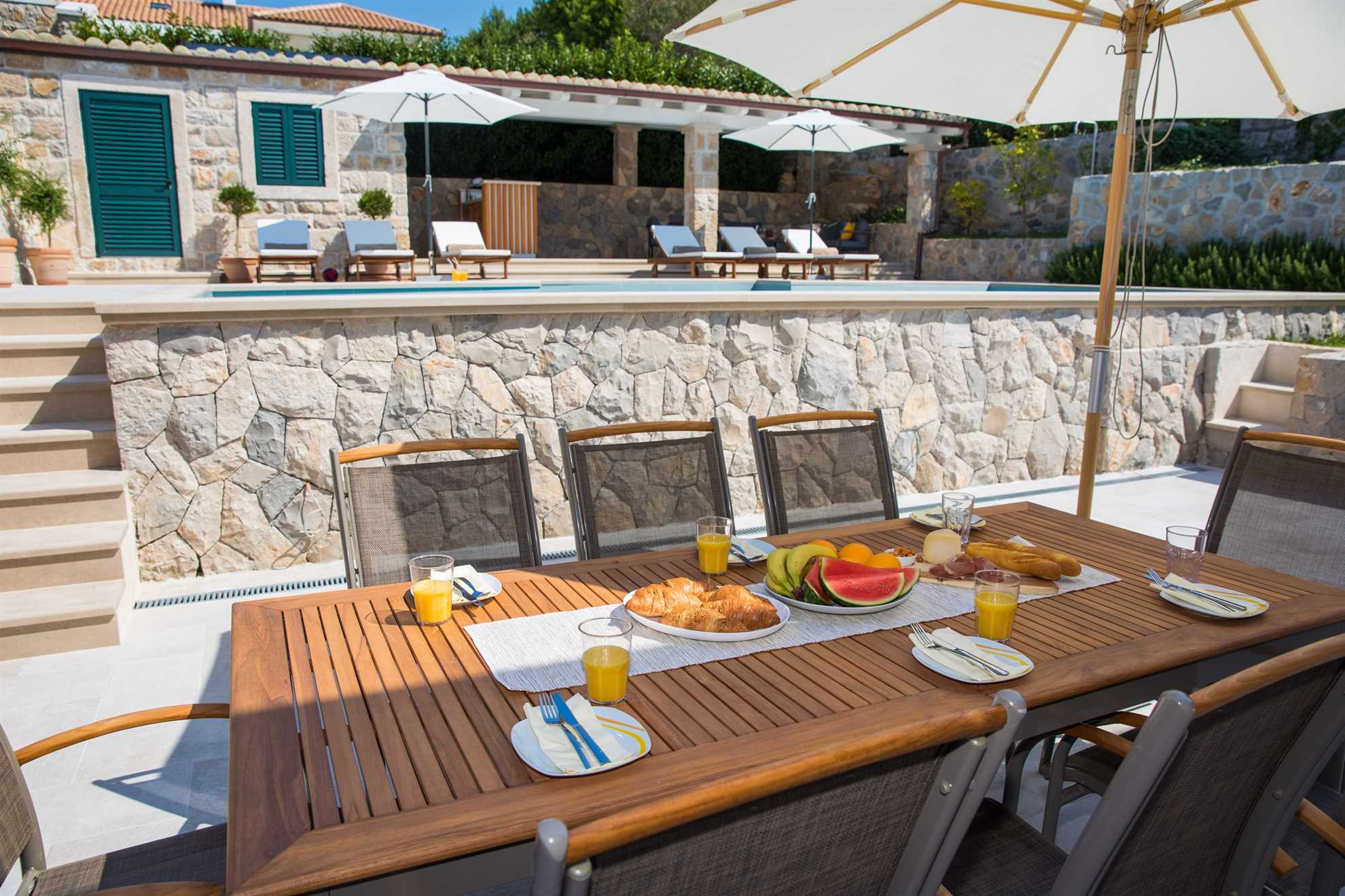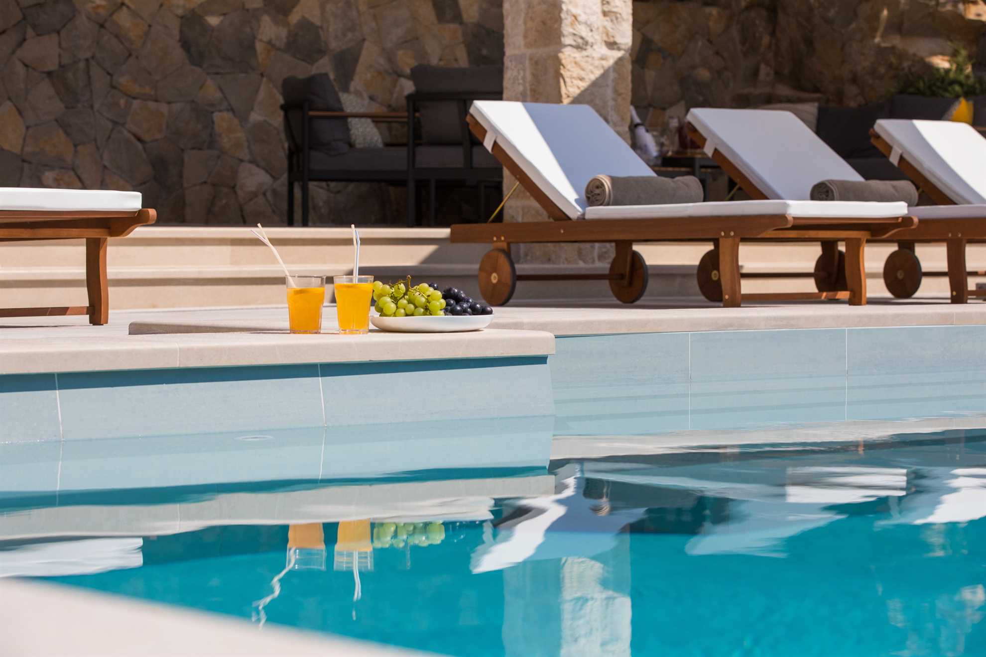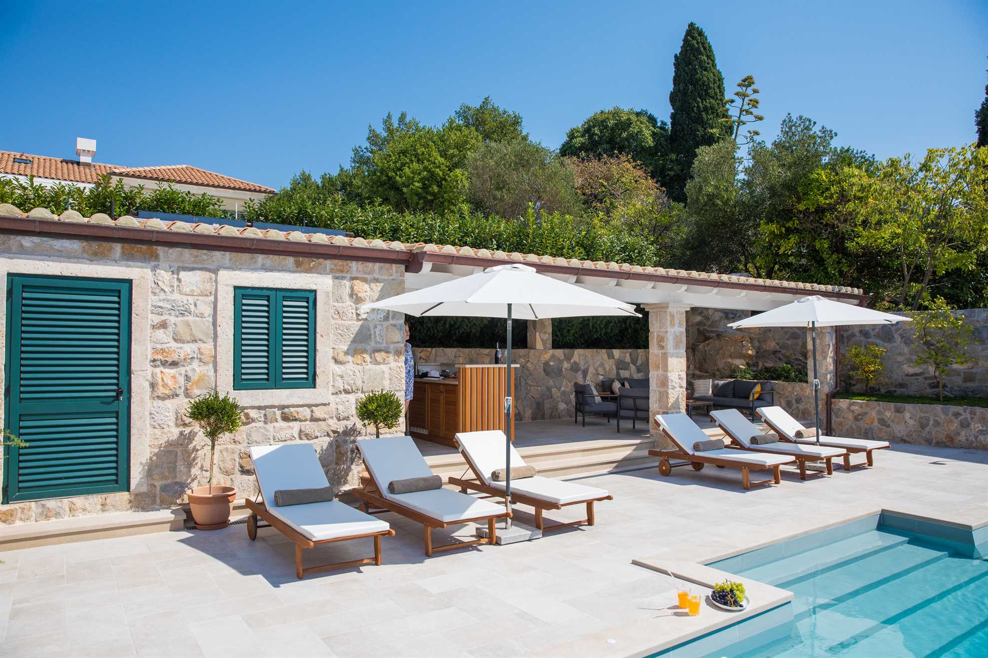 A charming Adriatic villa displaying the authentic architecture of the area. Equally beautiful inside and out it proudly shows off the use of the unique Croatian limestone in many of its features. The built in BBQ with an al-fresco dining table provides an ideal opportunity for quality time with loved ones and the large pool surrounded by umbrella-shaded loungers ensures leisurely time for all. Comfortable and covered lounge area is provided for your enjoyment as well as a bar area with bar stools and a beverage refrigerator. Villa Antiq is located on a quiet street yet only steps away from cafés, restaurants, some of the most beautiful beaches in the area and all the necessary traveler conveniences.