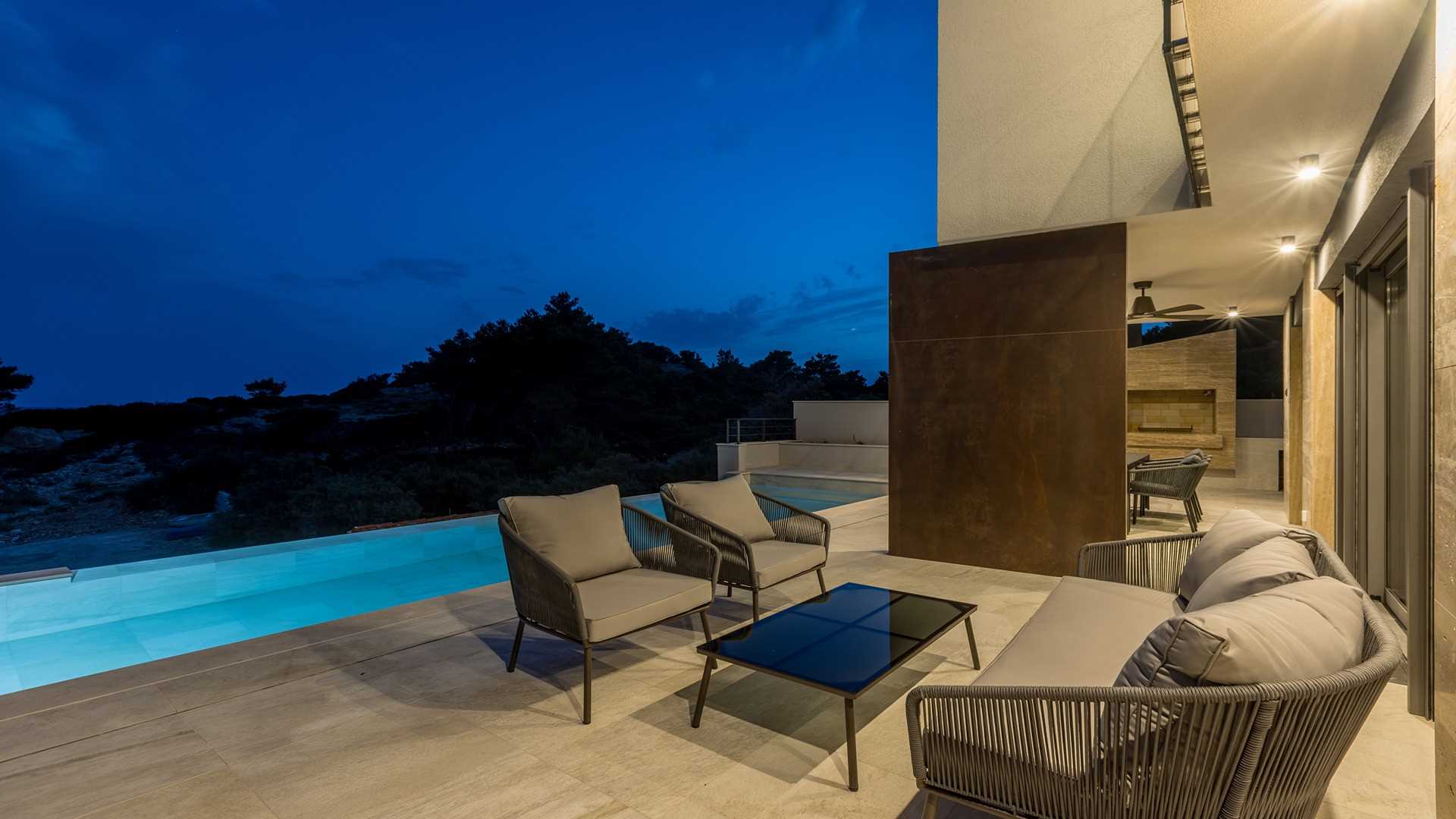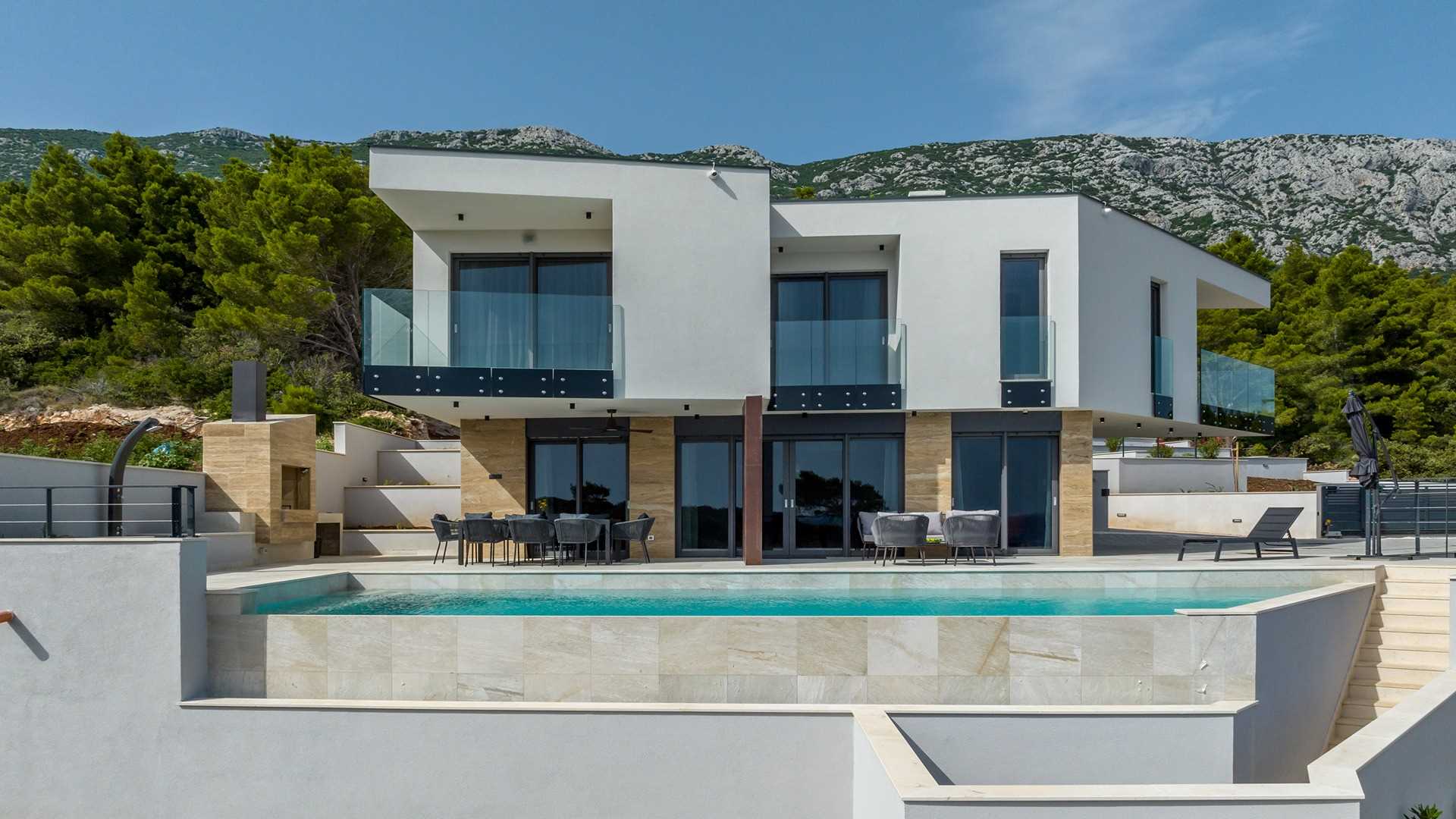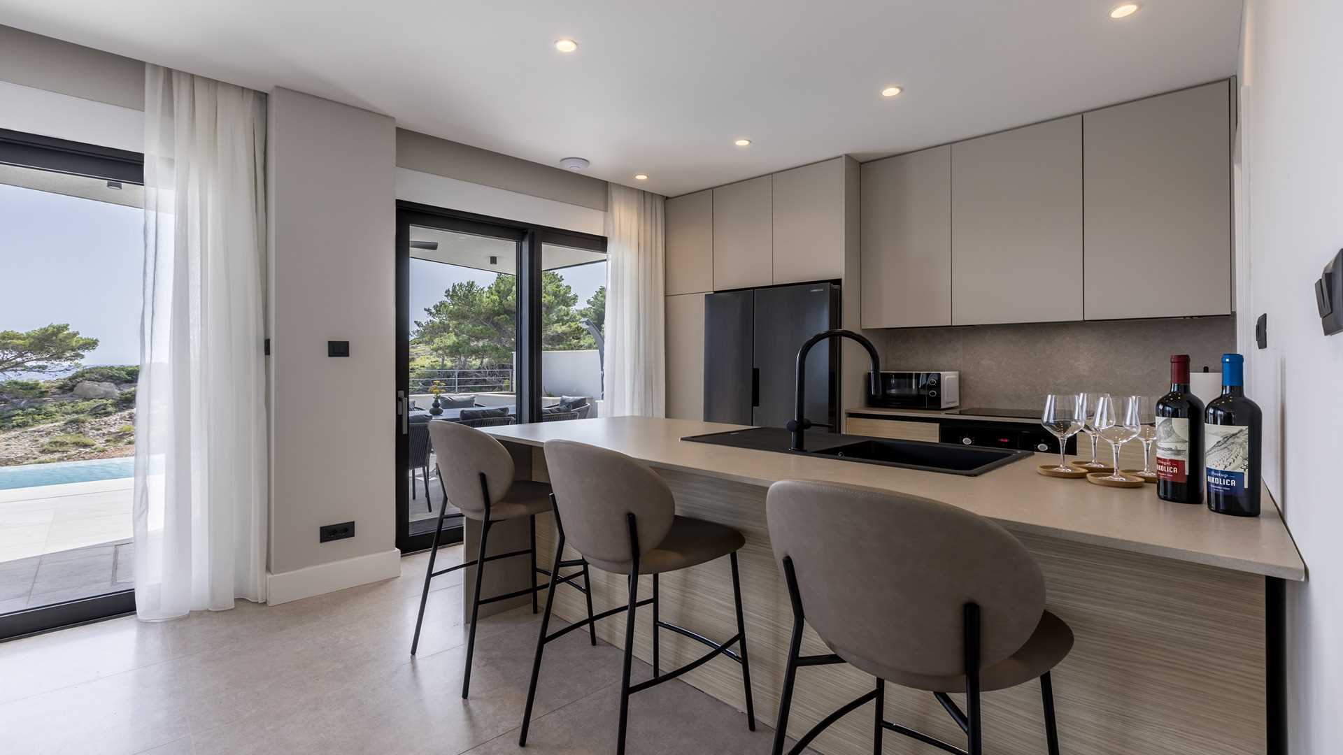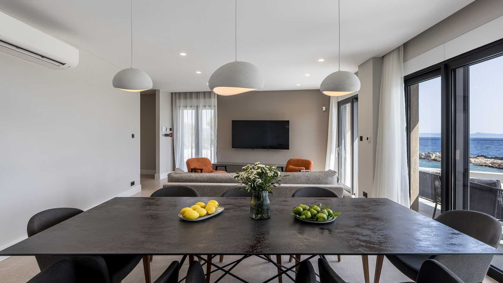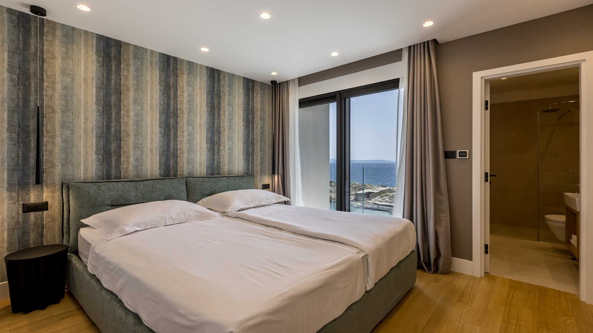 Experience the epitome of seaside luxury at this villa on the island of Peljesac, a serene sanctuary located in the heart of southern Dalmatia. This exquisite villa boasts three modern bedrooms, each meticulously furnished and equipped with its own en-suite bathroom, comfortably accommodating up to six guests. Designed for both relaxation and entertainment, the villa combines a sleek kitchen, dining room, and living room into a spacious open-concept area that invites social interaction and family gatherings. Step outside to the villa's breathtaking outdoor area featuring a heated infinity pool. Surrounded by plush lounge chairs, it's an ideal spot for soaking up the sun while enjoying panoramic views of the azure sea. The villas prime location directly on the seashore ensures that the soothing sounds of the waves enhance your stay, providing a tranquil backdrop to your holiday. Indulge in an array of luxurious amenities designed for wellness and leisure. Whether you're looking to relax your body in the wellness area, enjoy the latest entertainment technology, or maintain your fitness routine, this villa offers everything you need for a rejuvenating getaway. Please keep in mind that you will be required to pay a deposit to the host on the day of your arrival in the amount of 500,00 EUR.