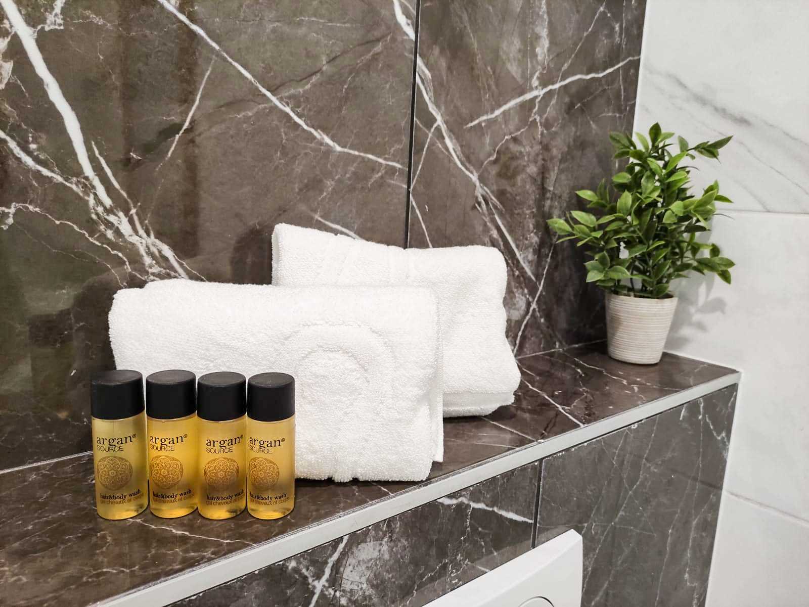 Your retreat lies in an Apartment type setup, featuring two well-appointed bedrooms that can hold a maximum of five people, though it is most optimal for four guests. Each bedroom provides a tranquil ambiance encased in a modern aesthetic, inviting a feeling of tranquility and relaxation.