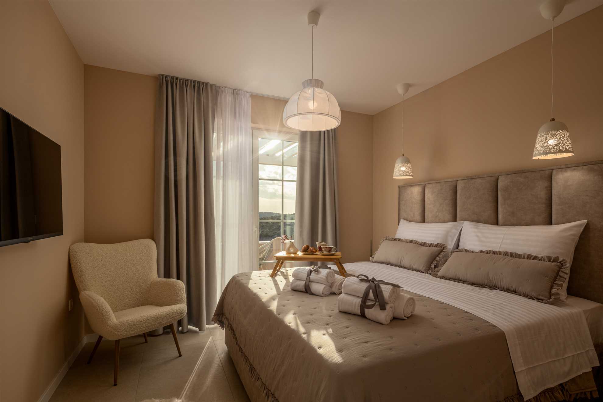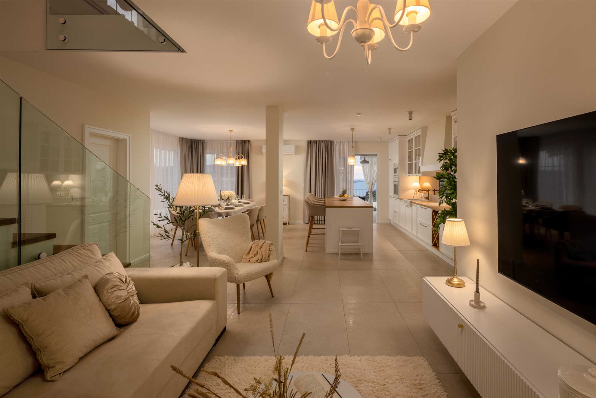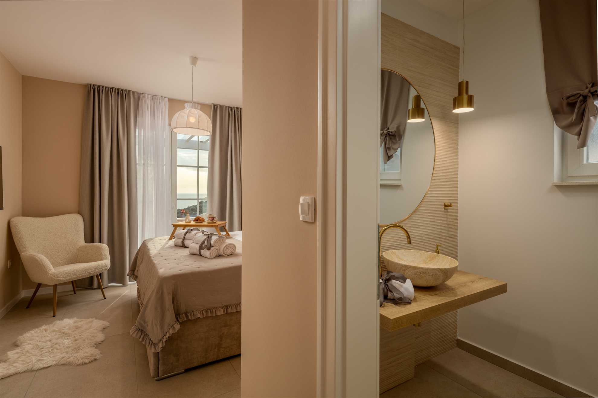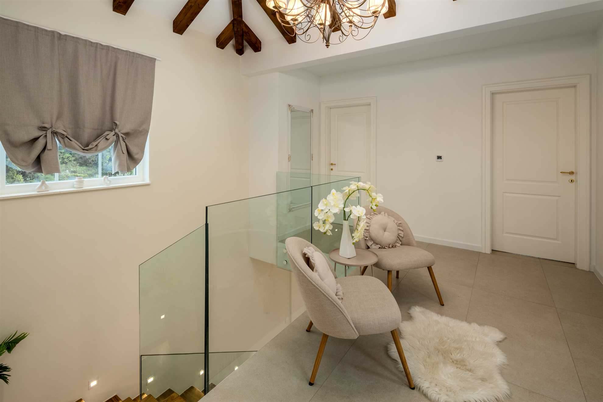 Nestled on a picturesque hill with breathtaking sea views, Villa Allegra defines refined living. This newly built addition to the luxury market boasts saltwater infinity heated pool, perfect for year-round enjoyment. For moments of relaxation, the covered seating lounge provides a tranquil spot to unwind while taking in the stunning surroundings. Lavish outdoor area is complete with sun loungers and an inviting alfresco dining area fitted with built in authentic BBQ. Inside, the villa is spread across two floors of opulent living space covering 230m2. Each of the luxury ensuite bedrooms offers a serene retreat with high-end finishes. The graceful dining room makes every dinner an elegant experience, while the large kitchen, featuring a central breakfast island, is equipped with the finest appliances. Subtle decor, soft colors, exposed wood beams and cozy yet sophisticated living area all add to a welcoming atmosphere making this a lovely choice for a holiday for family and friends.