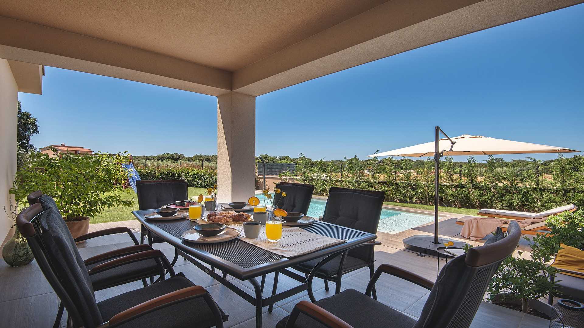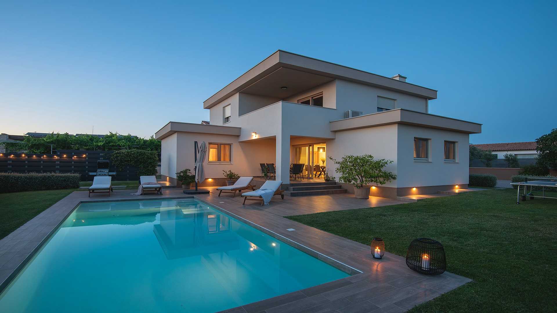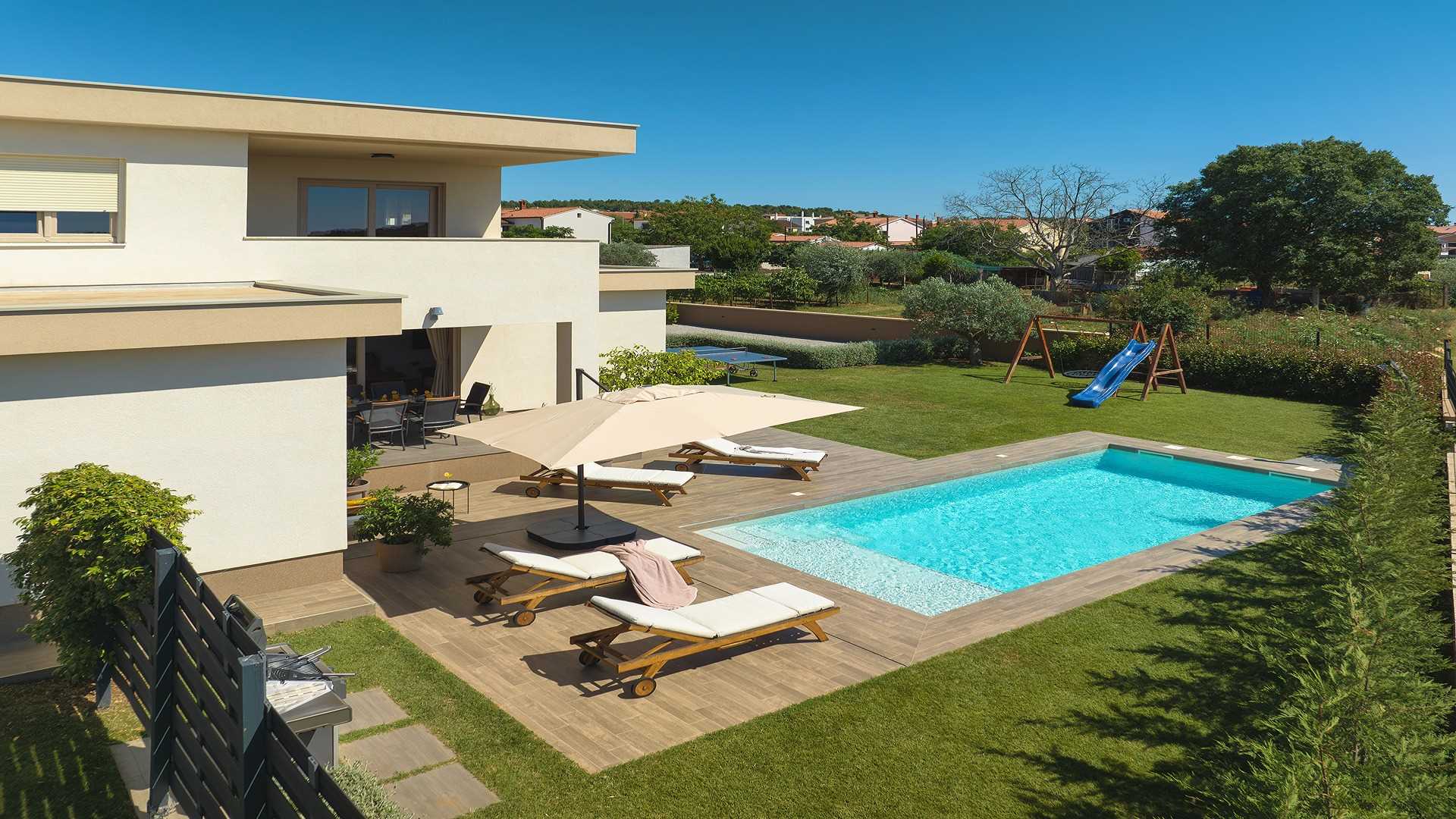 Experience the ultimate relaxation at this villa, a modern retreat in the heart of Pula, Istria. This beautifully designed villa features 2 spacious bedrooms, including an en suite bathroom, and an additional bathroom to comfortably accommodate 4 guests, with room for 2 extra guests on a folding armchair. The open-concept kitchen, dining, and living area offer a perfect setting for family gatherings. Step outside to enjoy the private outdoor pool, surrounded by comfortable lounge chairs and a sun umbrella, ideal for soaking up the Istrian sun. For entertainment, villa offers a table tennis setup and a children's playground, ensuring fun for all ages. The expansive outdoor space includes a terrace, a lush garden with breathtaking views, and a dining area with outdoor furniture. A gas BBQ is available for delightful al fresco dinners under the stars. . Please keep in mind that you will be required to pay a deposit to the host on the day of your arrival in the amount of 200,00 EUR.