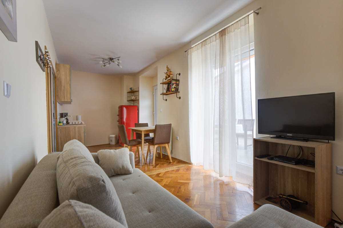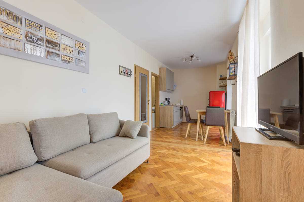 Spend your well-deserved holiday in our charming holiday home, which is idyllically located in the midst of untouched nature and only about 4 km from the refreshing sea. This oasis of peace offers the perfect setting for a relaxing stay, while still allowing you to enjoy the proximity to the sound of the sea. Our holiday home has a wonderful pool that invites you to relax and cool off on hot days. It is the ideal accommodation for small families or couples who want to spend an unforgettable time in harmonious surroundings. The sofa bed in the spacious living room offers space for two children and provides additional comfort. The three residential units are connected by a spacious terrace, ensuring a shared experience while still providing sufficient privacy. The property is a paradise for those seeking relaxation and also offers our animal friends a warm welcome. The owners live in the other half of the semi-detached house, but with a separate entrance to guarantee you peace and independence during your stay. We cordially invite you to spend an unforgettable holiday in our charming holiday home, surrounded by the beauty of nature and the calming atmosphere that our accommodation has to offer.