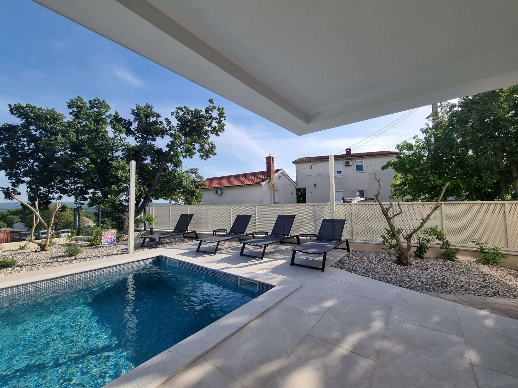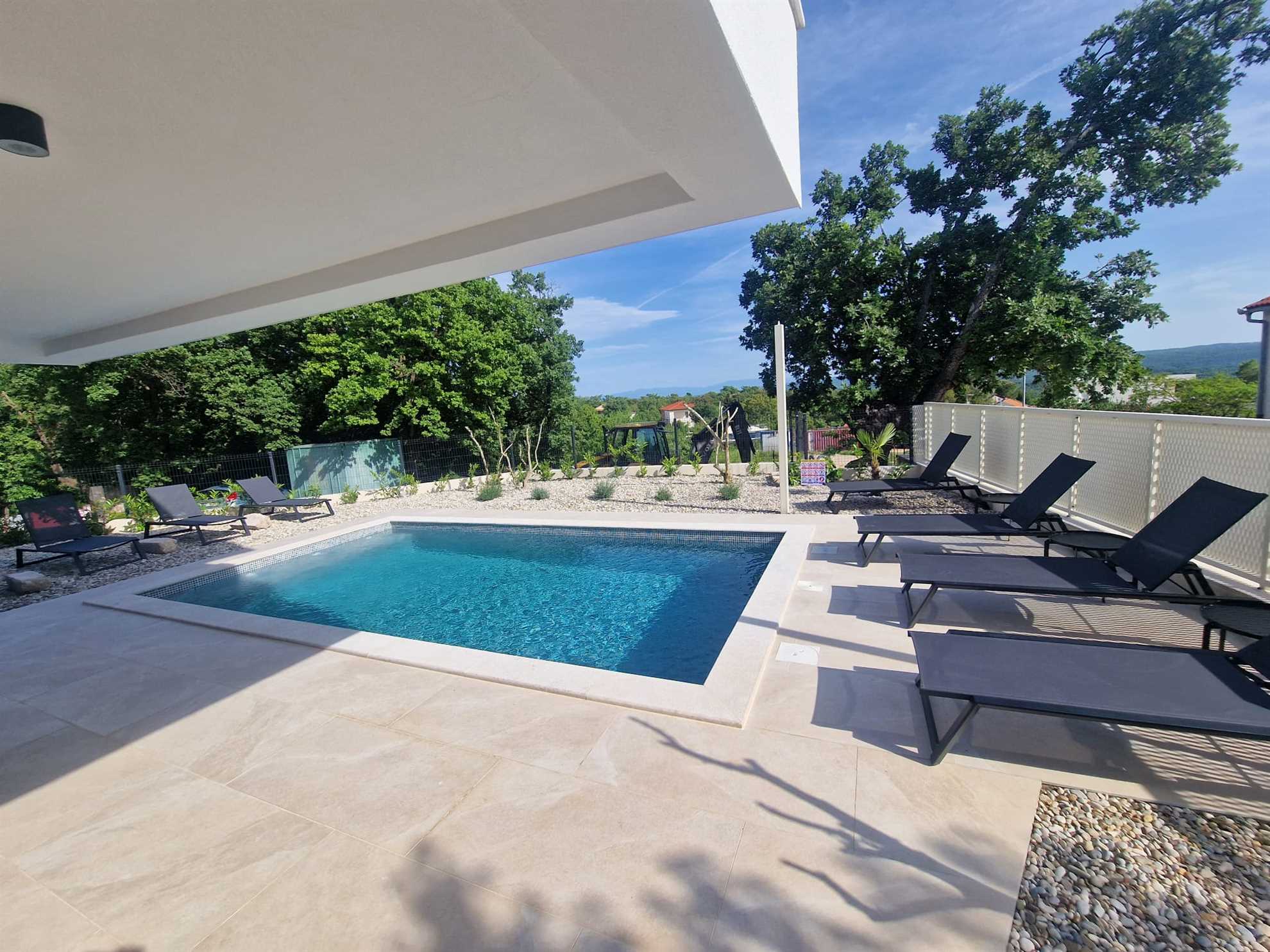 In a romantic small town on the island of Krk, in a quiet area, hidden from the hustle and bustle of the city, is this brand new luxury villa that can accommodate a total of 10 guests.