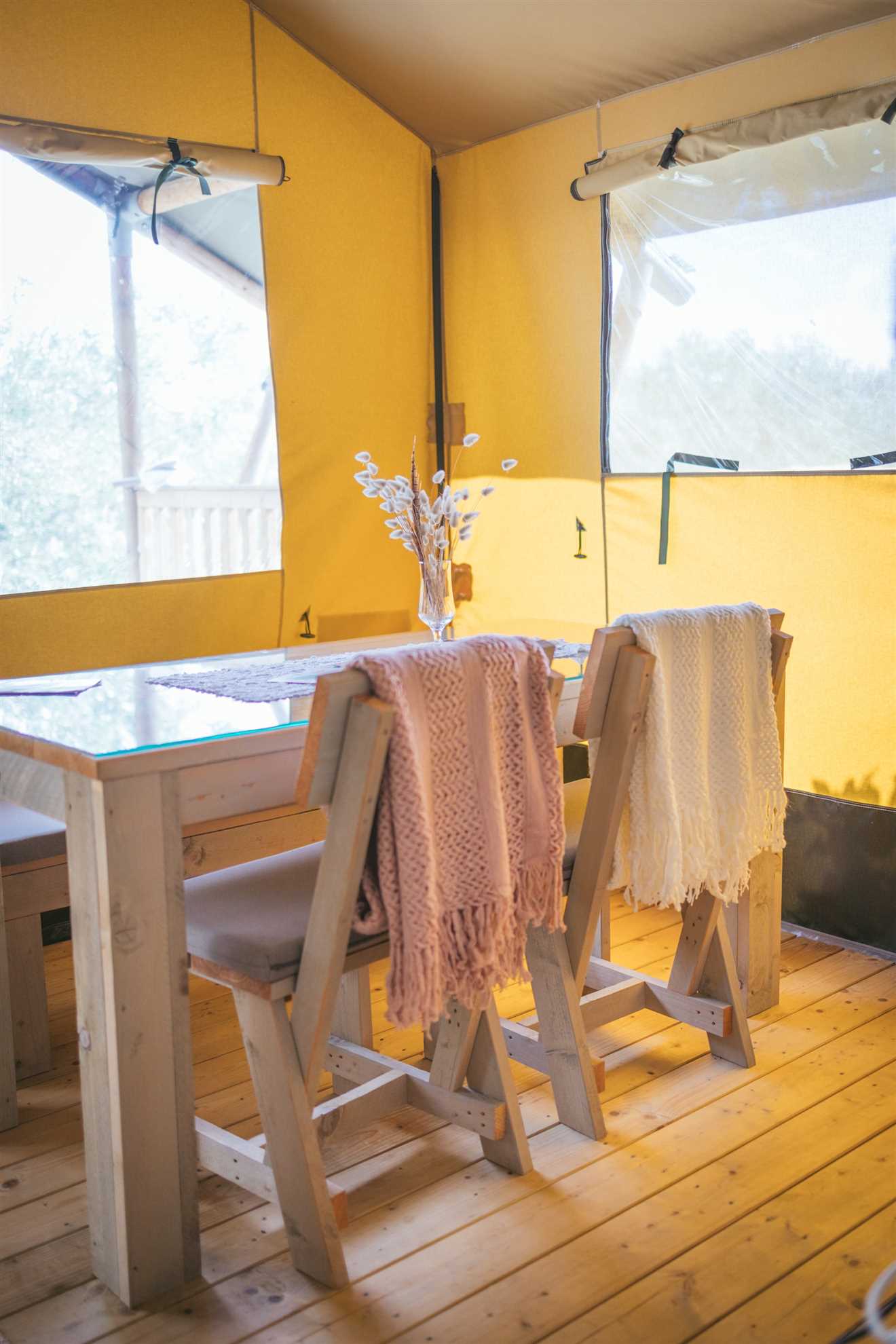 For larger groups, both glamping tents can be rented together to accommodate up to 8 guests, offering shared experiences while maintaining separate private spaces.
