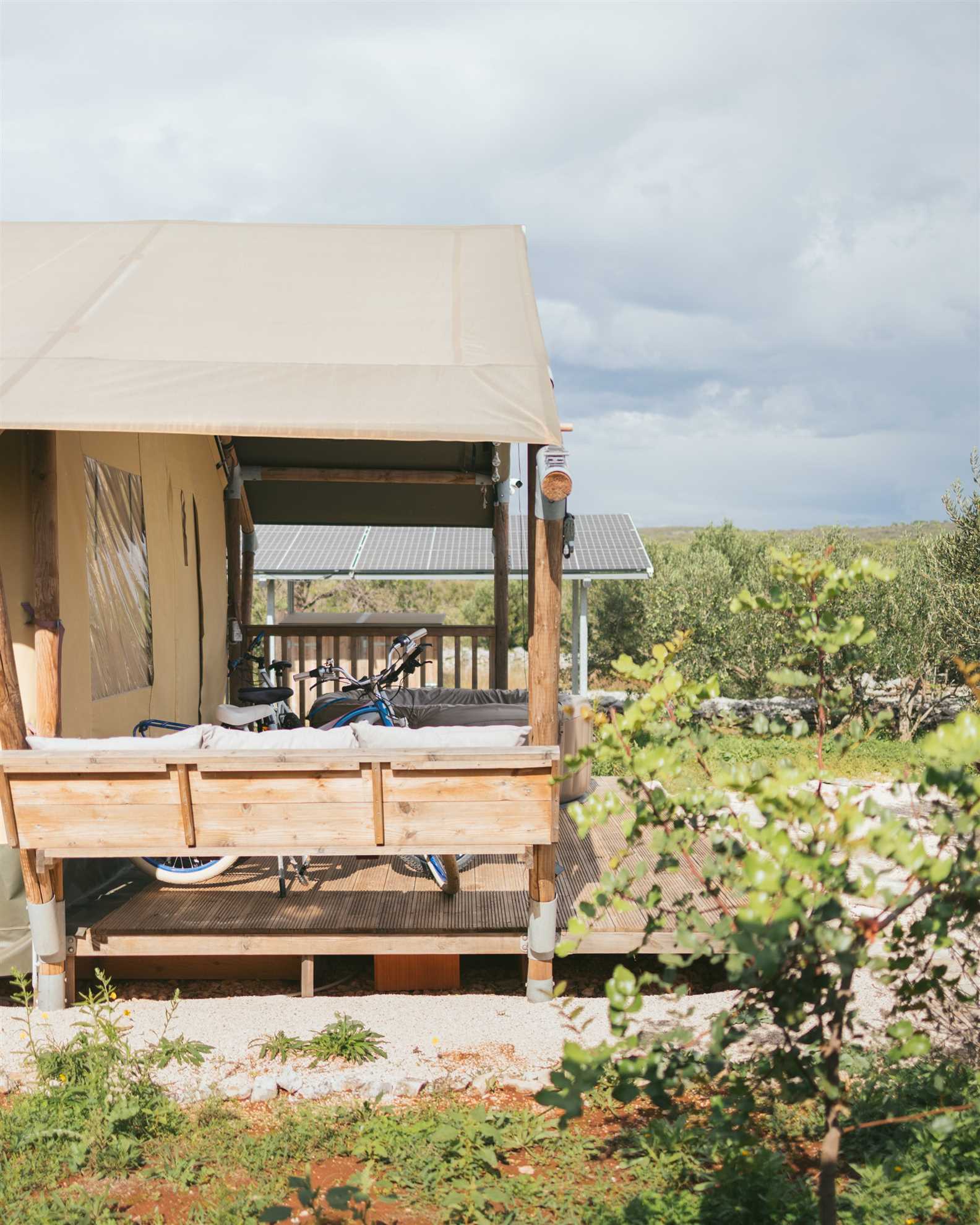 Each tent is positioned to ensure privacy and tranquillity, allowing guests to enjoy nature while maintaining modern comfort. Two bicycles are available for exploring the island’s scenic paths, hidden bays and charming stone villages.