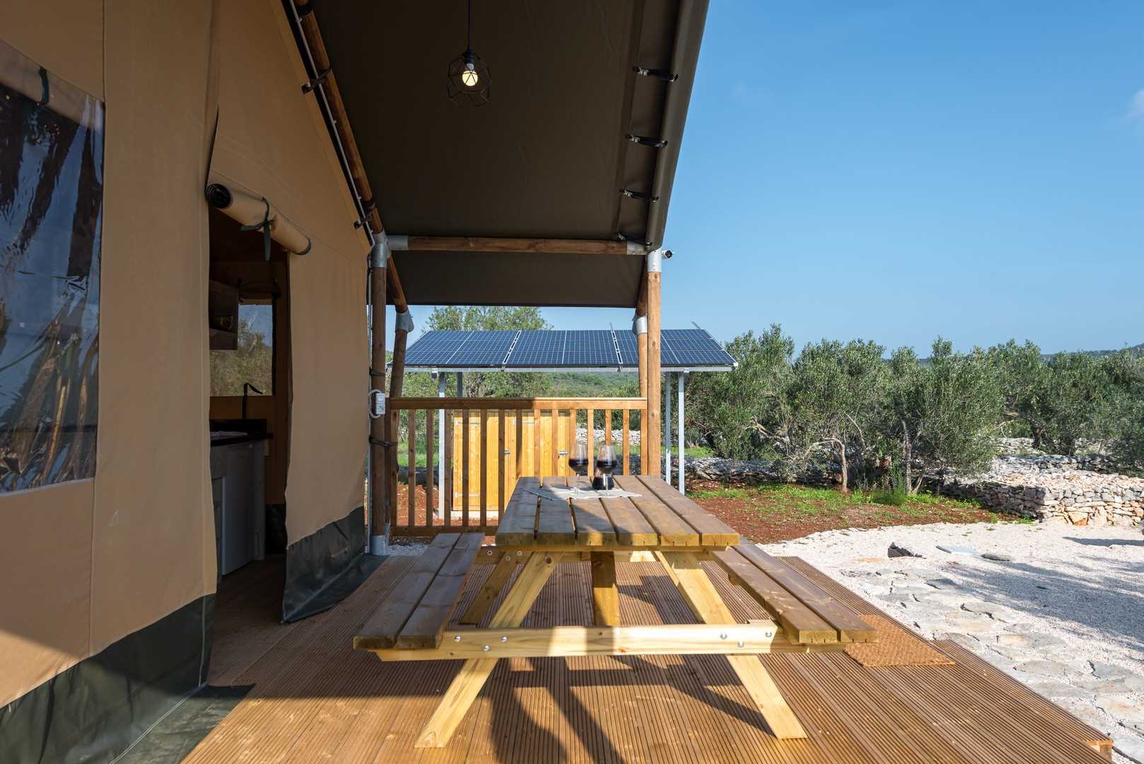 Adriatic Heritage Glamping No.2 offers a luxury glamping experience on the island of Šolta, located in the peaceful village of Donje Selo, just a short ferry ride from Split. Designed for up to 4 guests, this fully equipped glamping tent combines modern comfort with the charm of Mediterranean nature.